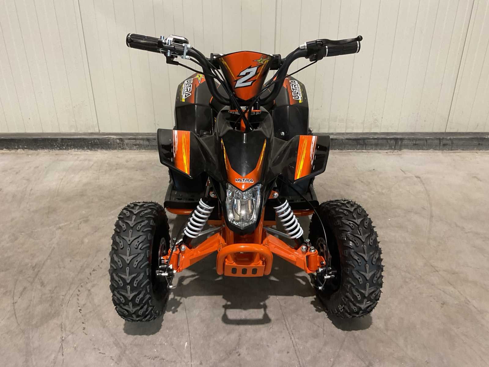 Voorzien van Krachtige 1000W motor; 36V accu; Snelheidsregelaar met 2 standen (10, 25 km/h); Achteruitschakelaar; Verlichting; Schijfremmen voor & achter; Ongebruikt Merk: Ultra Motocross Model: MA05E OR Product type: 1000W