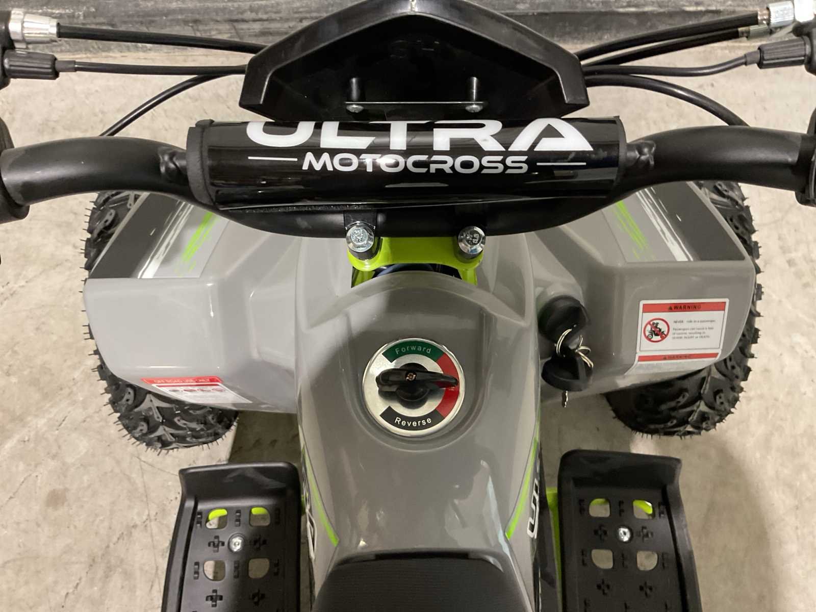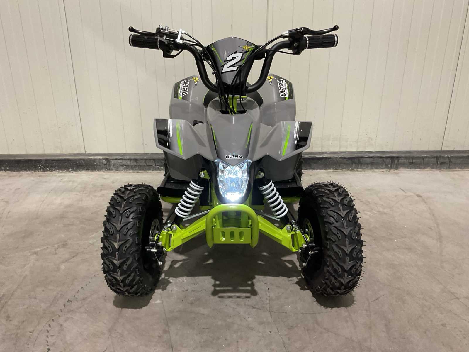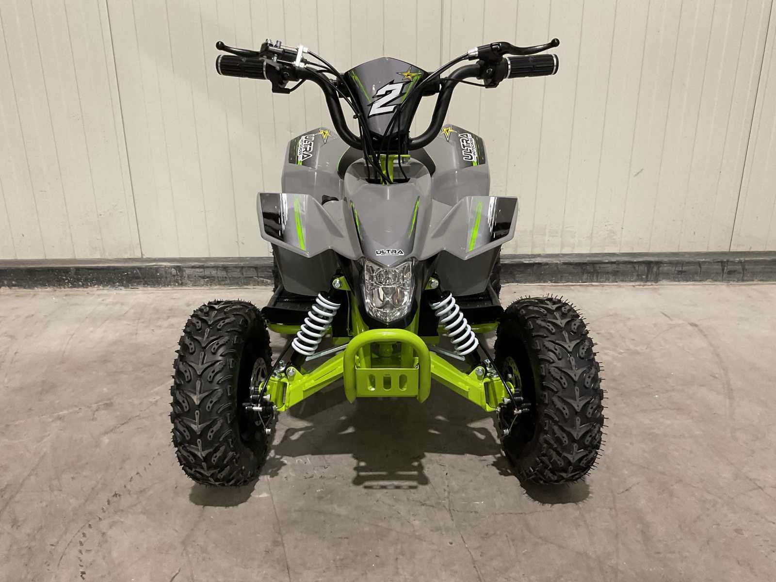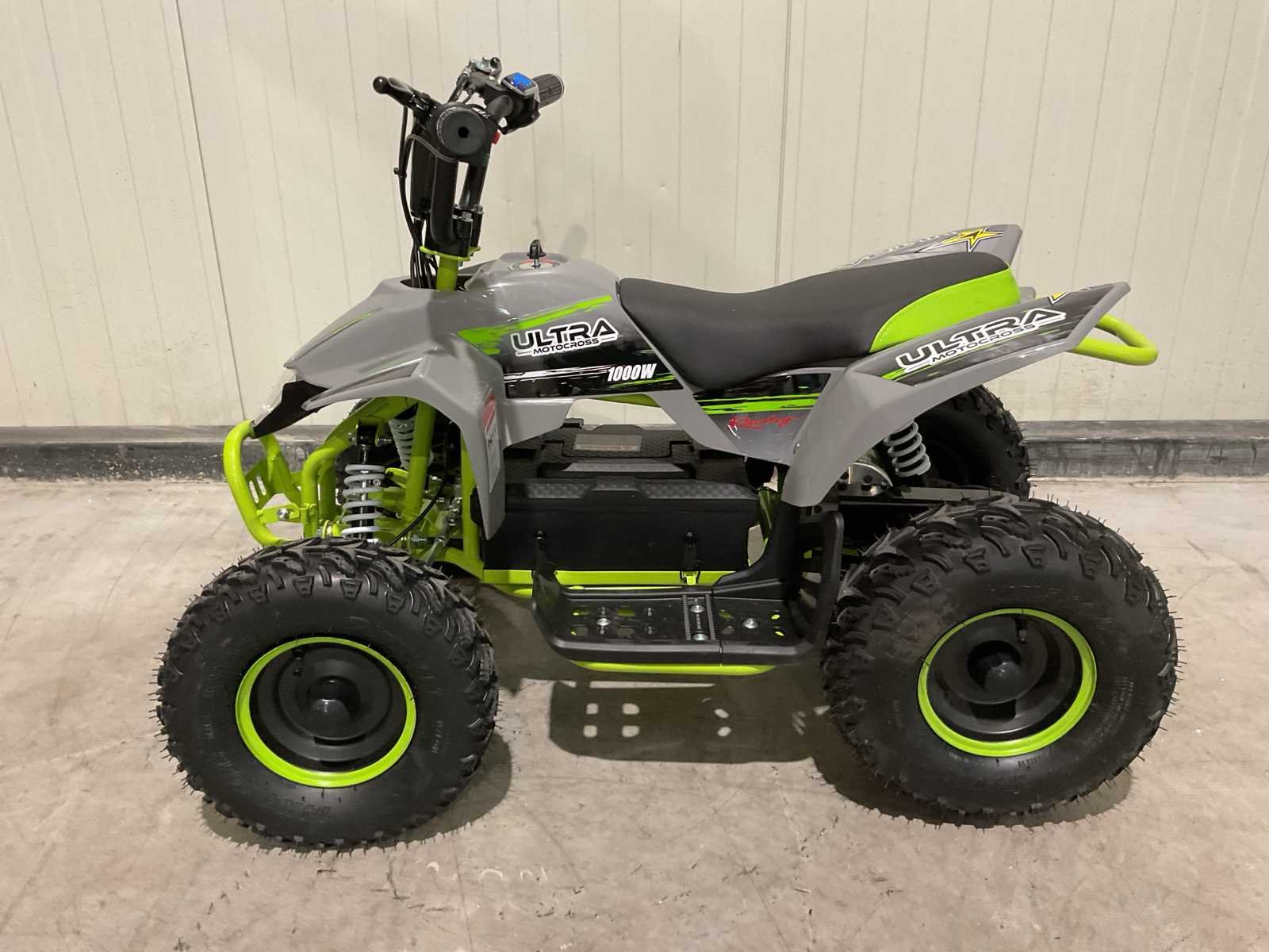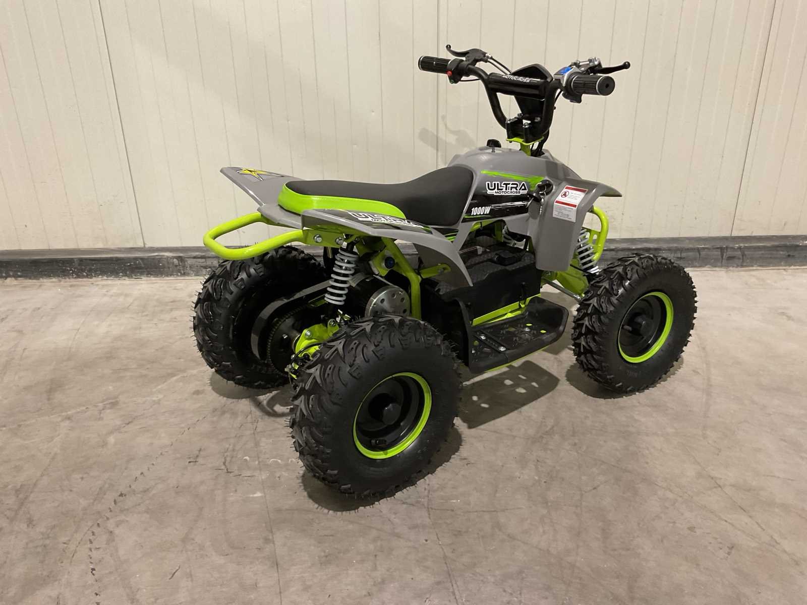 Voorzien van Krachtige 1000W motor; 36V accu; Snelheidsregelaar met 2 standen (10, 25 km/h); Achteruitschakelaar; Verlichting; Schijfremmen voor & achter; Ongebruikt Merk: Ultra Motocross Model: MA05E GR Product type: 1000W Kleur: Grijs/Groen