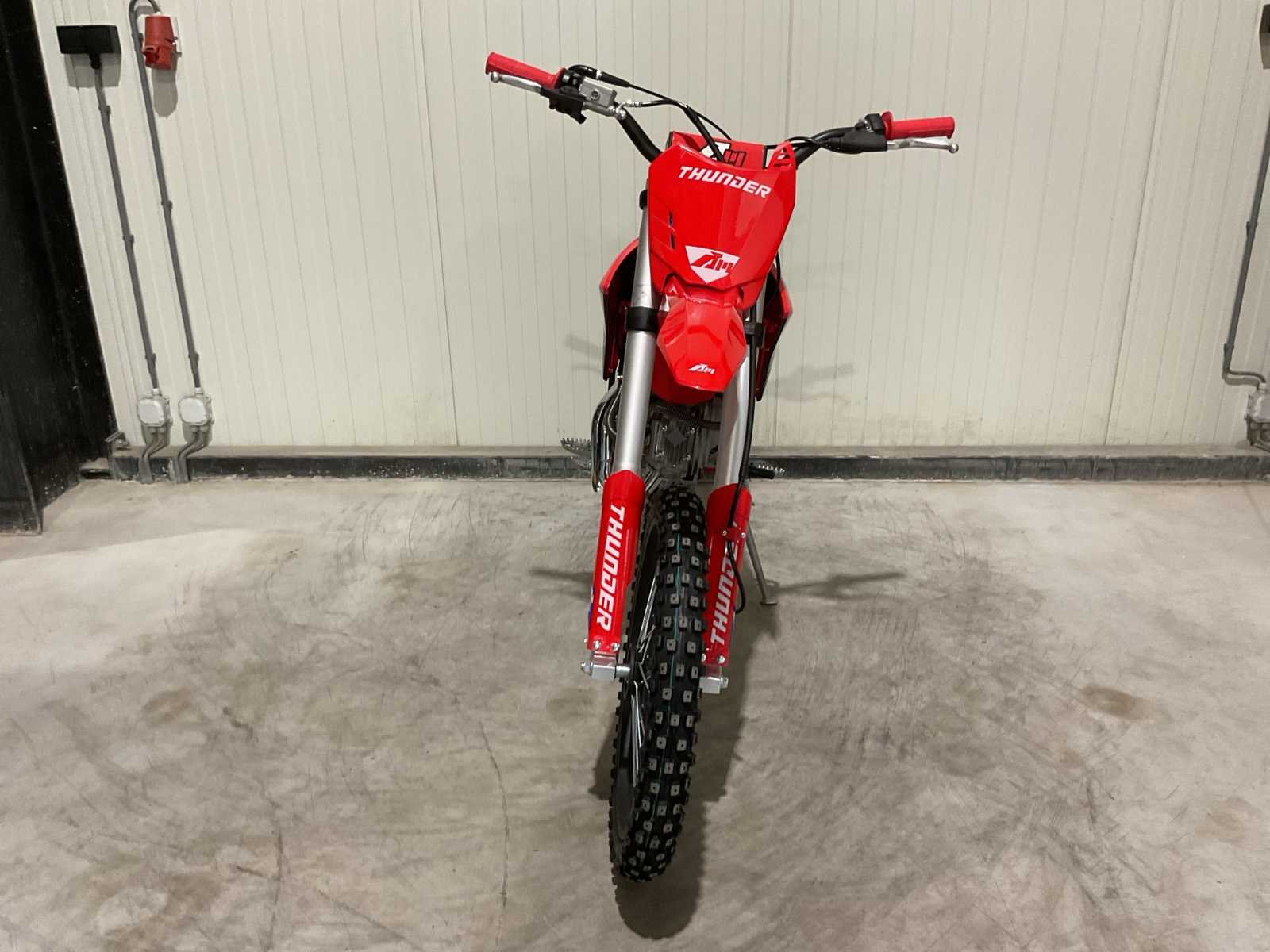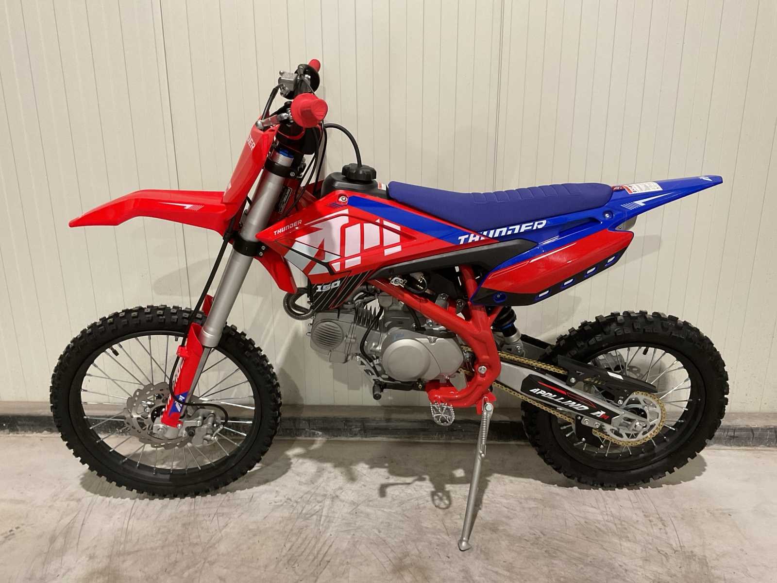 Voorzien van 150 cc motor; 4 takt; kick start; olie gekoeld; bandenmaat voor 19” inch achter 16” inch; hydraulische vering voor en achter; schijfremmen; ongebruikt in doos (transport afmetingen 150x40x75 cm) Merk: Ultra Motocross Type: Thunder 150 Brandstof: Benzine Cilinderinhoud: 150cc Gewicht: 91kg Transmissie: Schakel Aantal sleutels: 2