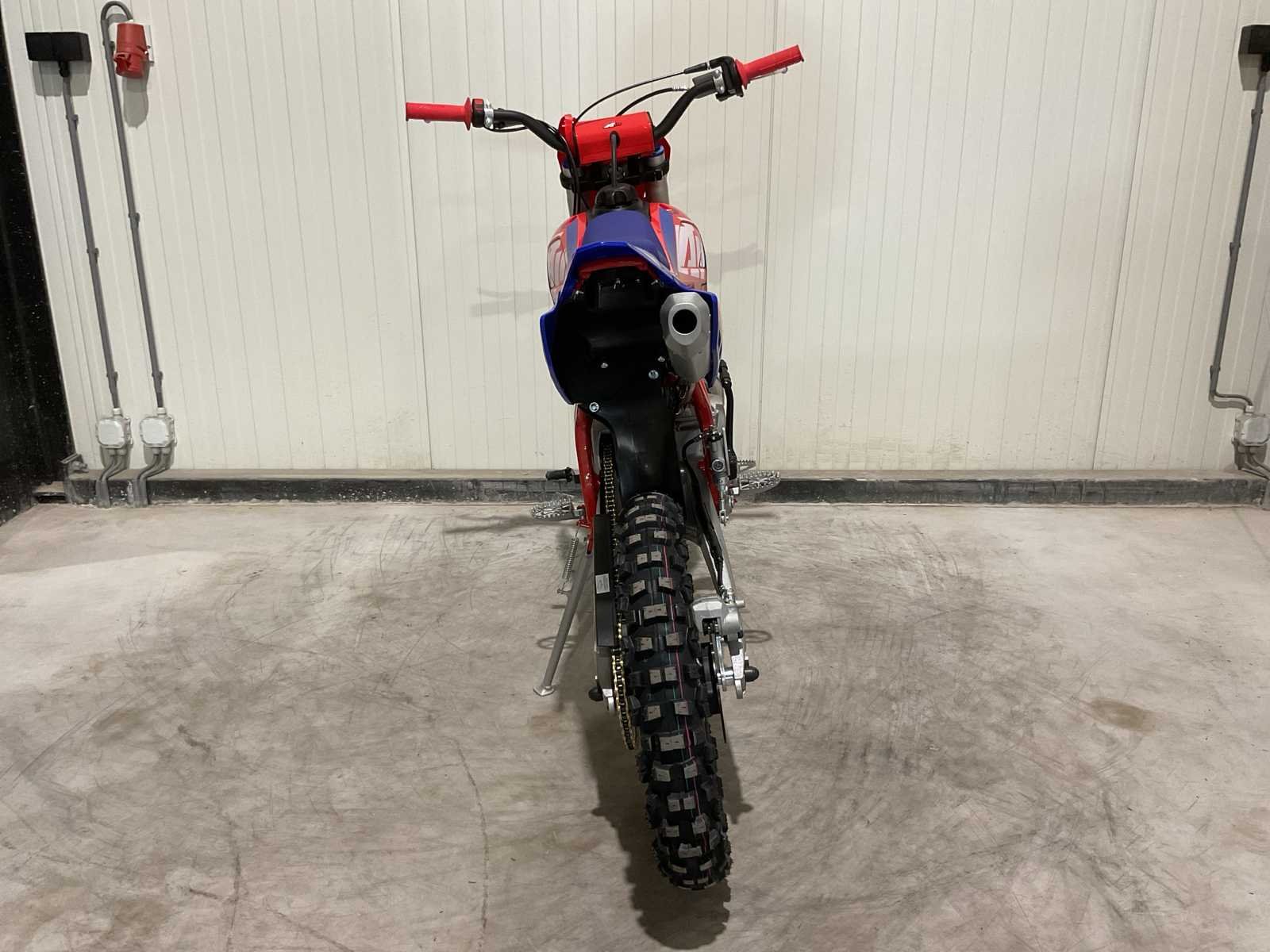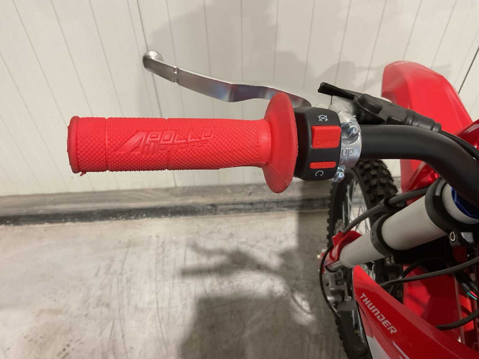 Voorzien van 125 cc motor; 4 takt; kick start; bandenmaat voor 19” inch achter 16” inch; hydraulische vering voor en achter; schijfremmen; ongebruikt in doos (transport afmetingen 150x40x75 cm) Merk: Ultra Motocross Type: Thunder 125 Brandstof: Benzine Cilinderinhoud: 125cc Gewicht: 91kg Transmissie: Schakel Aantal sleutels: 2