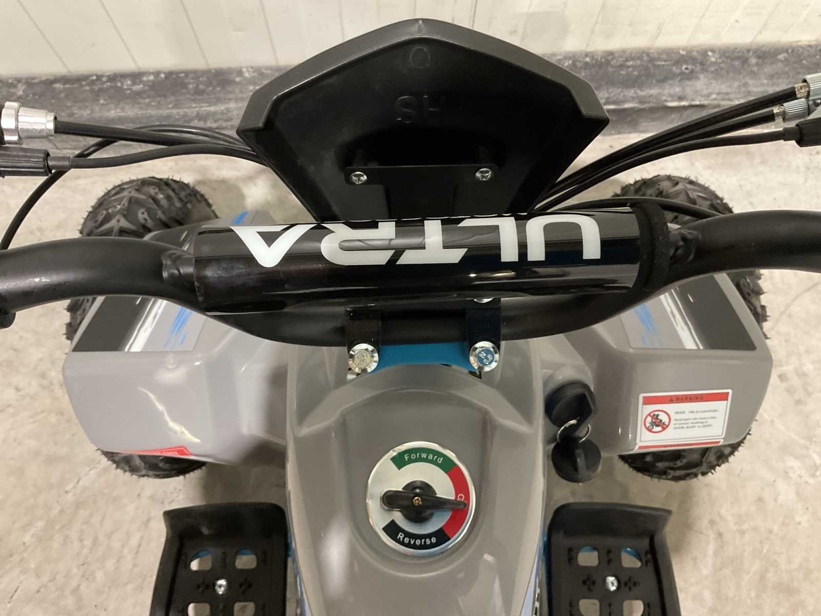 Voorzien van Krachtige 1000W motor; 36V accu; Snelheidsregelaar met 2 standen (10, 25 km/h); Achteruitschakelaar; Verlichting; Schijfremmen voor & achter; Ongebruikt Merk: Ultra Motocross Model: MA05E BL Product type: 1000W Bouwjaar: 2025 Kleur: Grijs/Blauw