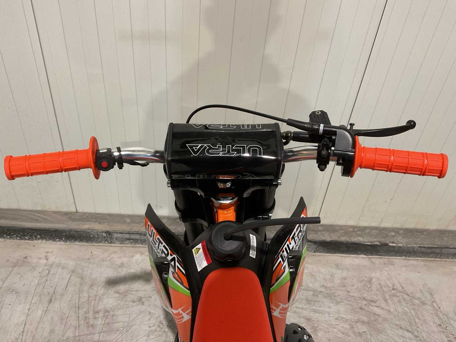 Voorzien van 50cc motor; 2 takt; 9 HP; hydraulische schijfremmen; bandenmaat voor 14” inch achter 12” inch; KTM look a like; ongebruikt in doos (transport afmetingen 135x40x75 cm) Merk: Ultra Motocross Type: Koshine 50 14/12” Cilinderinhoud: 50cc Gewicht: 49kg Transmissie: Automaat Aantal sleutels: 2 Bouwjaar: 2025
