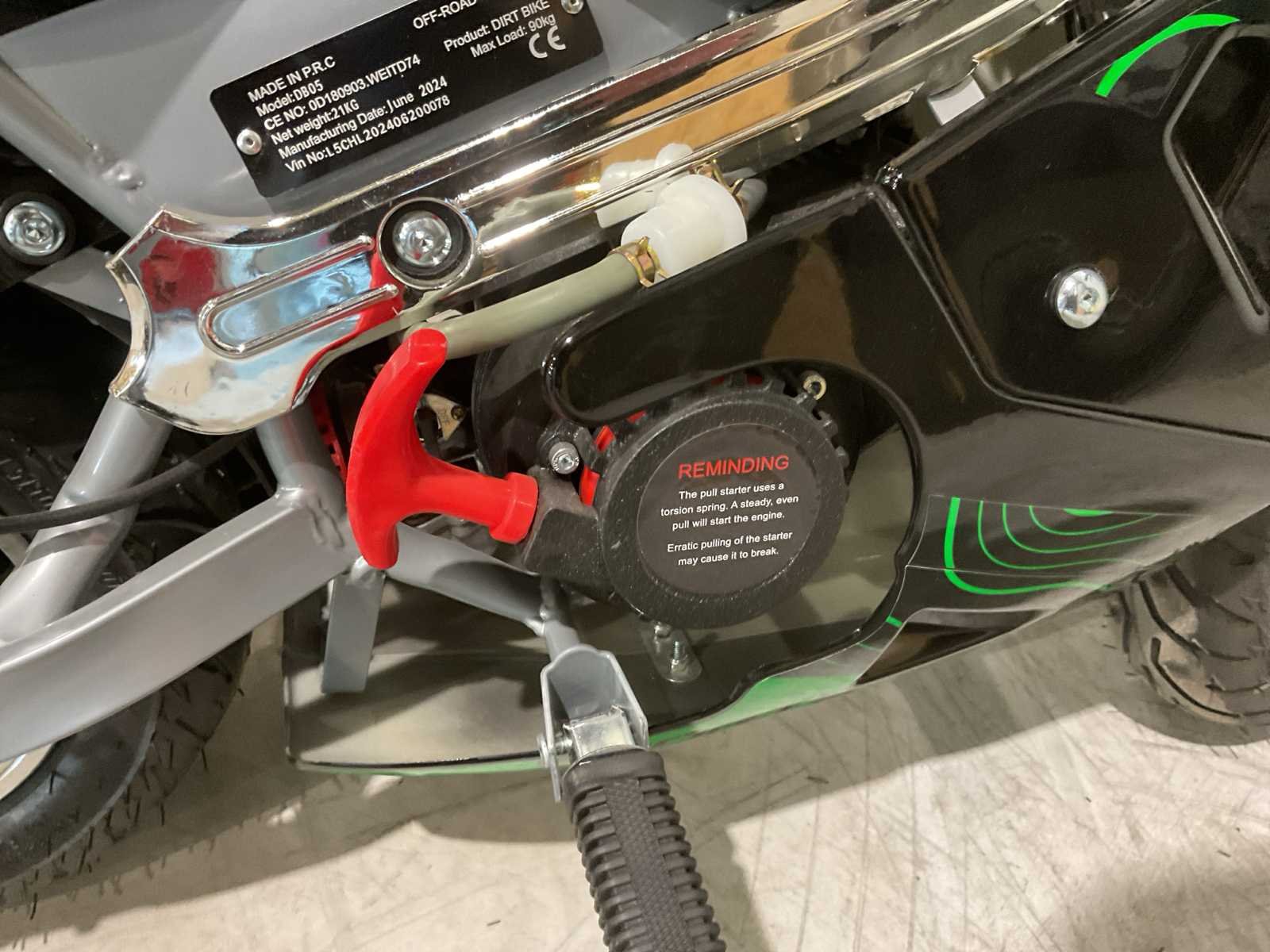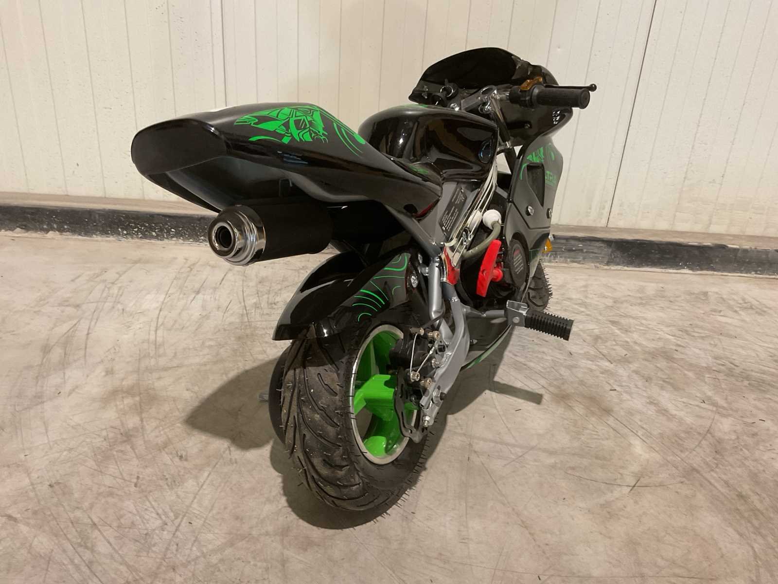 Voorzien van 49cc motor; 2 takt; 3,5 HP; schijfremmen; bandenmaat 6,5” inch; ongebruikt in doos (transport afmetingen 105x35x55 cm) Merk: Ultra Motocross Type: Pocket bike mini Cilinderinhoud: 49cc Gewicht: 24kg Transmissie: Automaat Aantal sleutels: 2 Bouwjaar: 2025