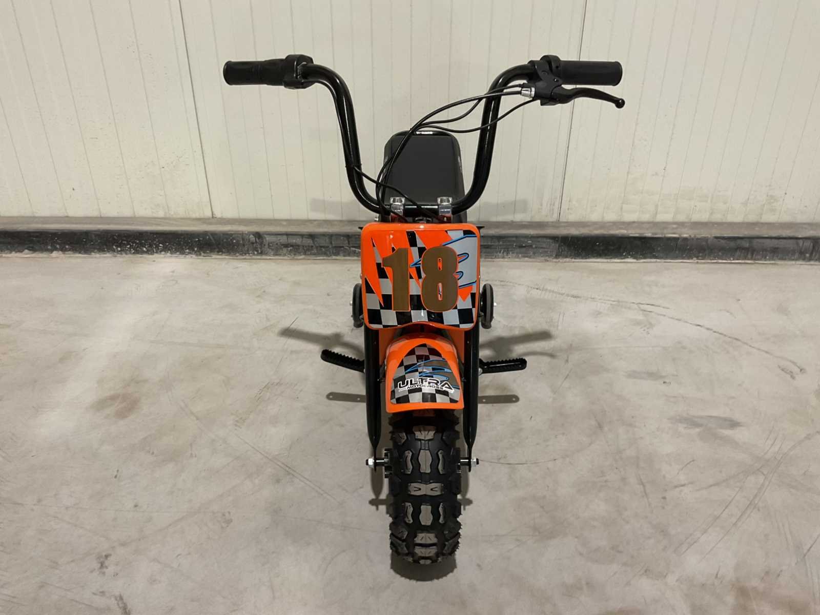 Voorzien van 250W elektrische motor; bandenmaat 7,5” inch; ongebruikt in doos (transport afmetingen 95x25x50 cm) Merk: Ultra Motocross Type: Monkey bike Gewicht: 23kg Transmissie: Automaat Aantal sleutels: 2 Bouwjaar: 2025