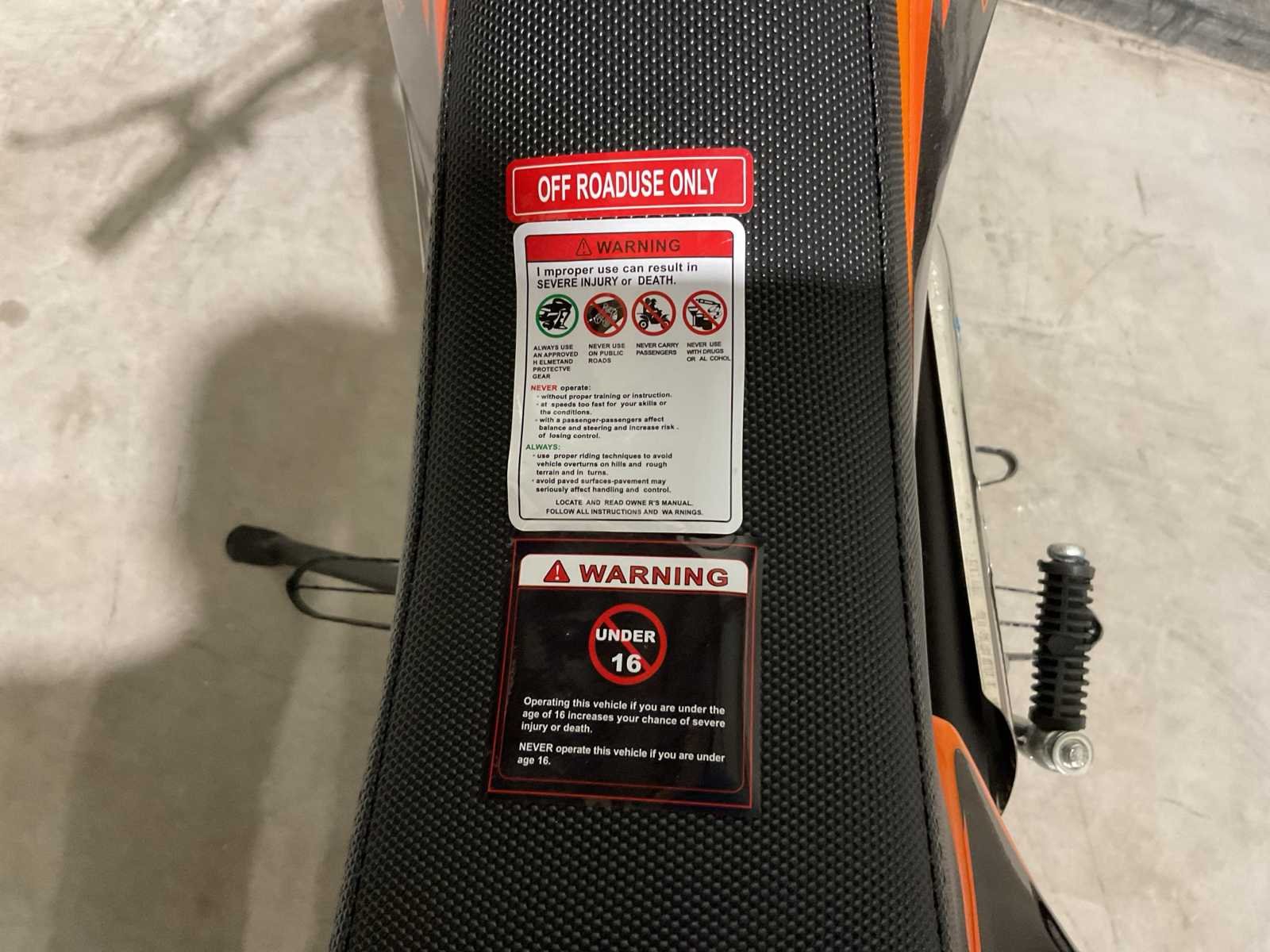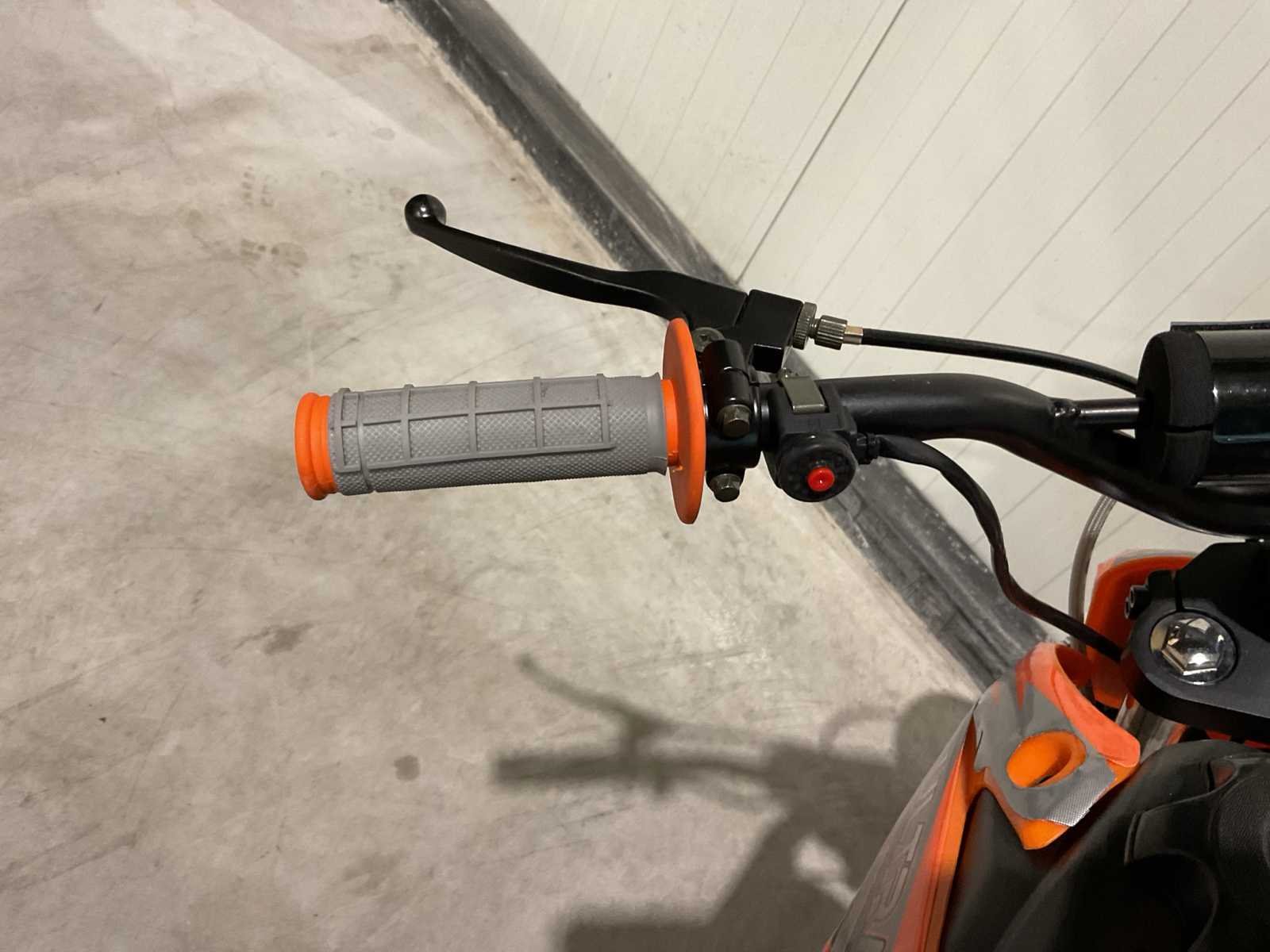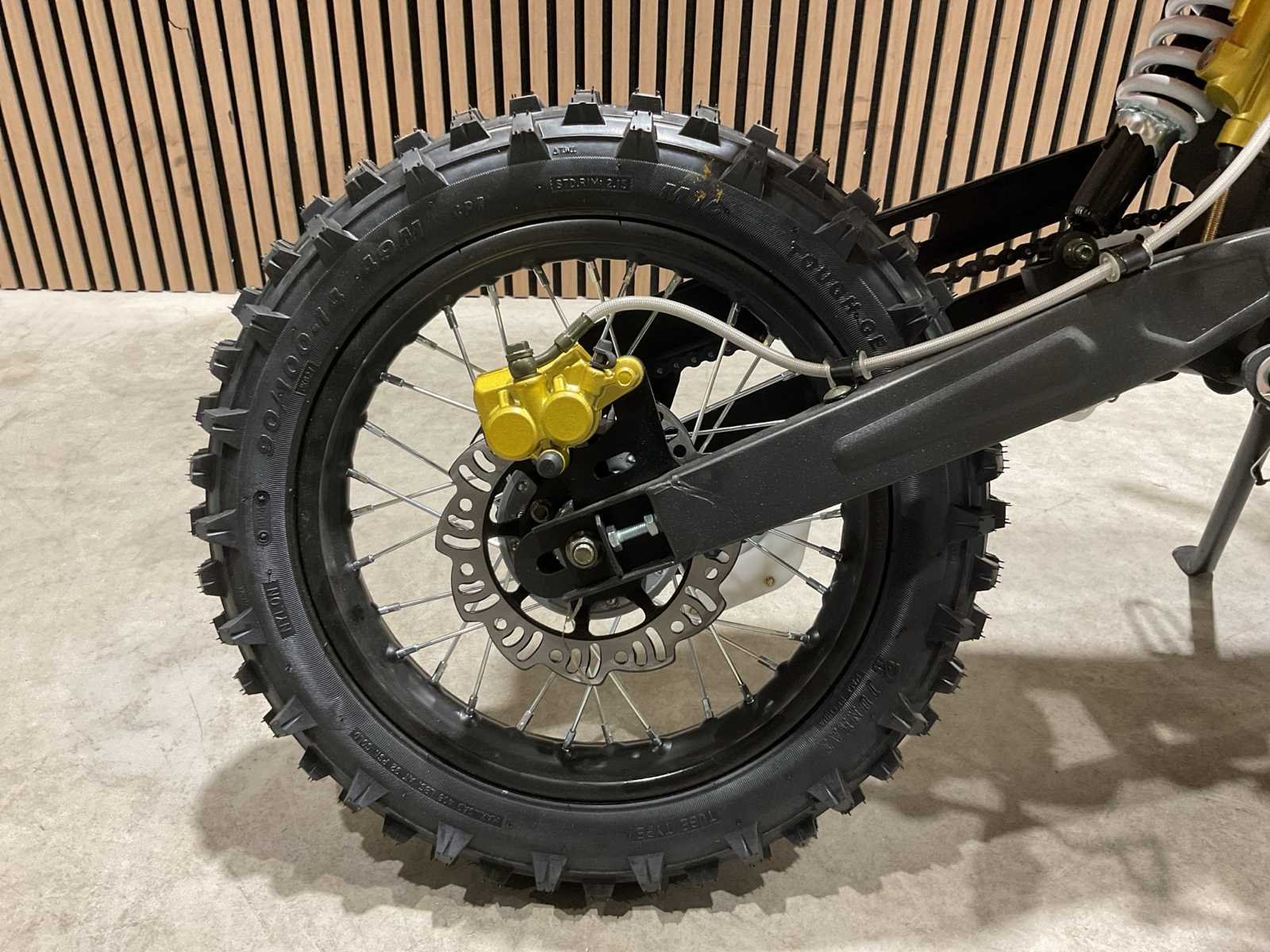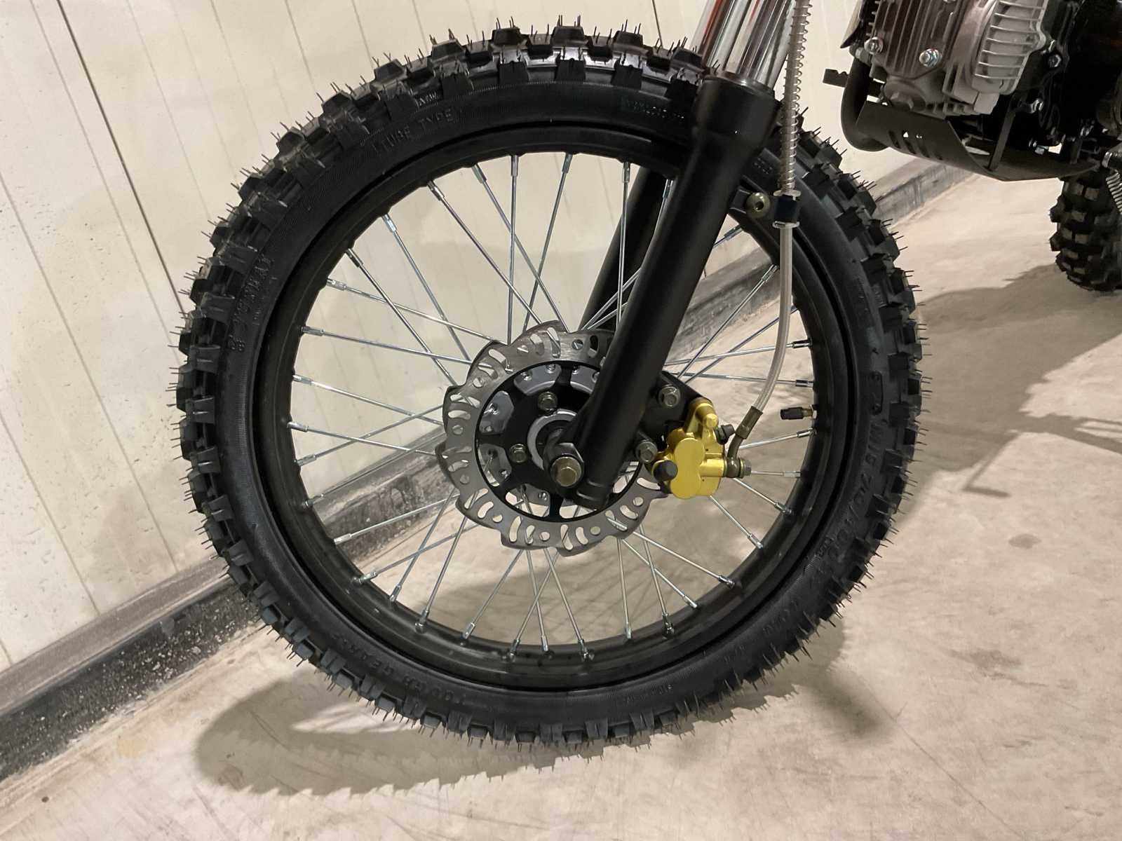 Voorzien van 110cc motor; Manuele koppeling; kickstart; Wiel/velg: V: 90/100-14 (14") A: 70/100-17 (17"); Hydraulische schijfrem; olieschokdemper; Enkele stalen uitlaatpijp; Maximale snelheid: 70 km/u; Ongebruikt in doos (Transport verpakking: 1295 x 375 x 620 mm) Merk: Ultra Motocross Model: DB001 OR Type: 110CC Cilinderinhoud: 110cc Kleur: Oranje zwarte zadel Transmissie: Manuele Bouwjaar: 2025
