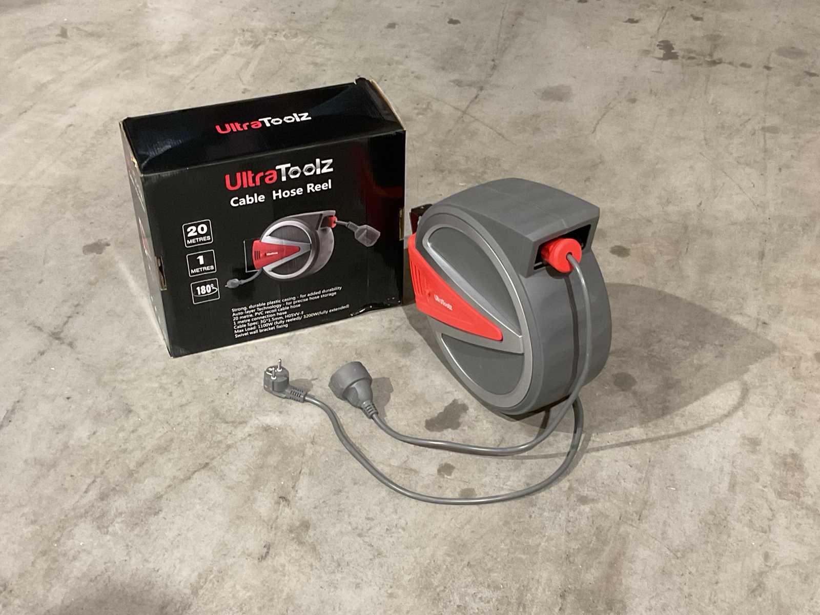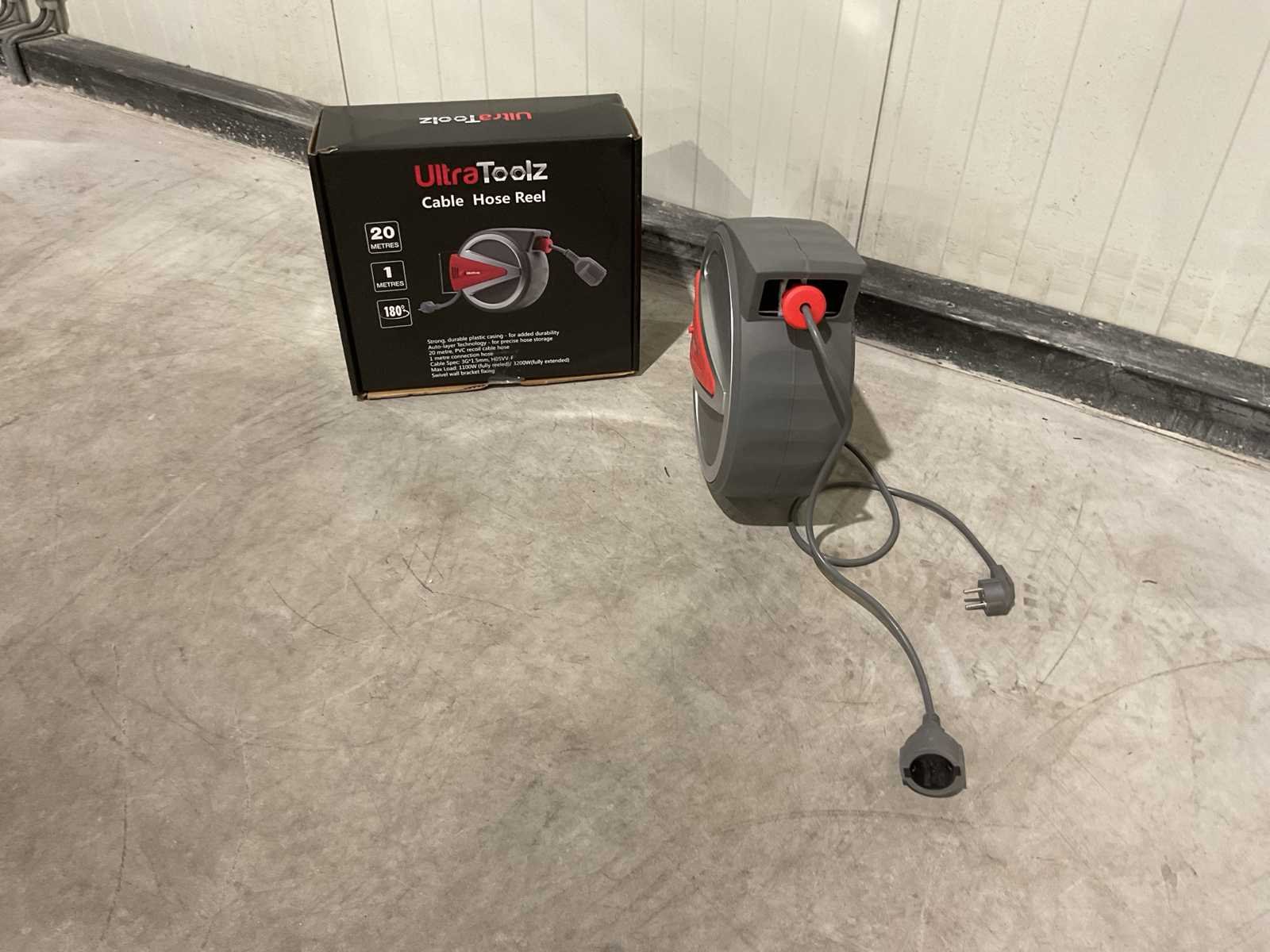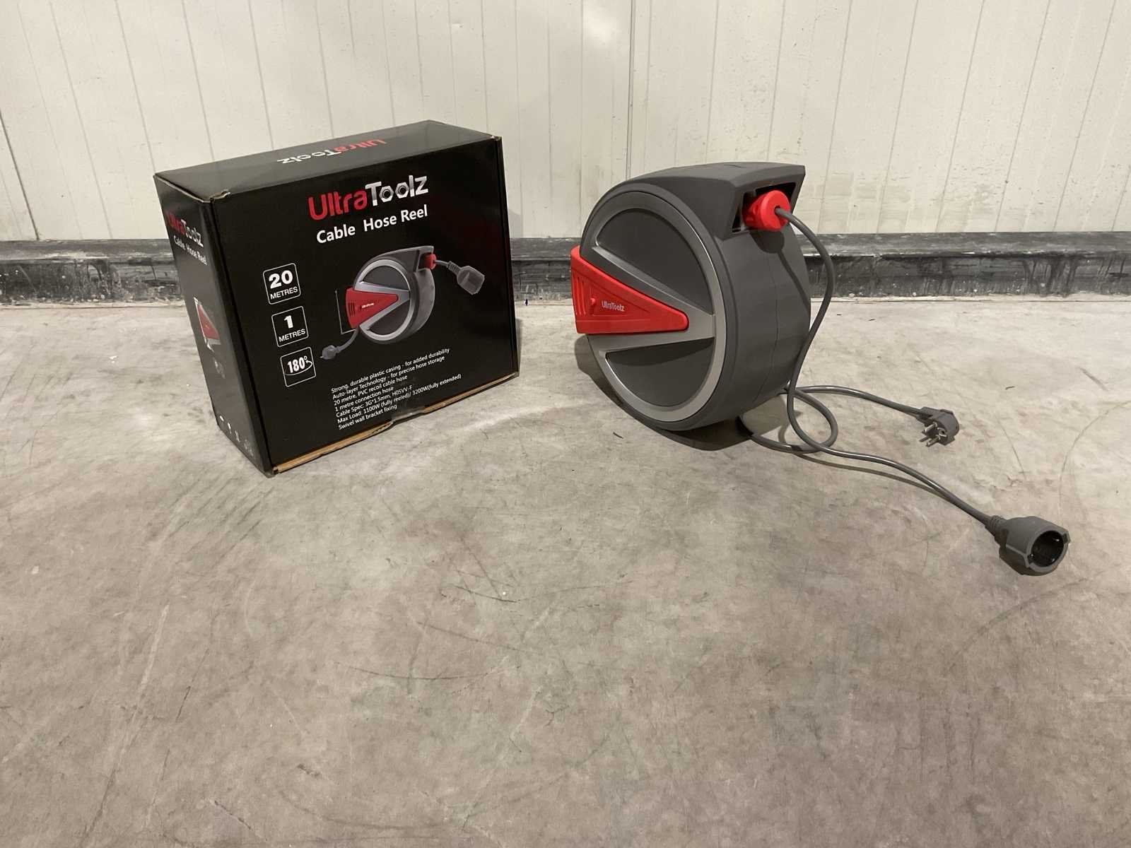 Voorzien van Voltage 230 V 12A; Kabellengte op haspel 20m; Muurbevestiging; 180° draaibaar; Lengte aansluitkabel 1 meter; Maximale stroombelasting van de kabel 1100W (opgerold), 3200W (uitgerold); Dikte kabel 3G 2.5 mm2; IP klasse IP44; Bruto gewicht 9km; verpakkingsafmeting: 14kg 395x345x335mm; Ongebruikt in doos Merk: Ultratoolz Type: 20m Bouwjaar: 2025 Aansluiting: 220V Male-male: true Male-female: true Op haspel: true Lengte: 20m