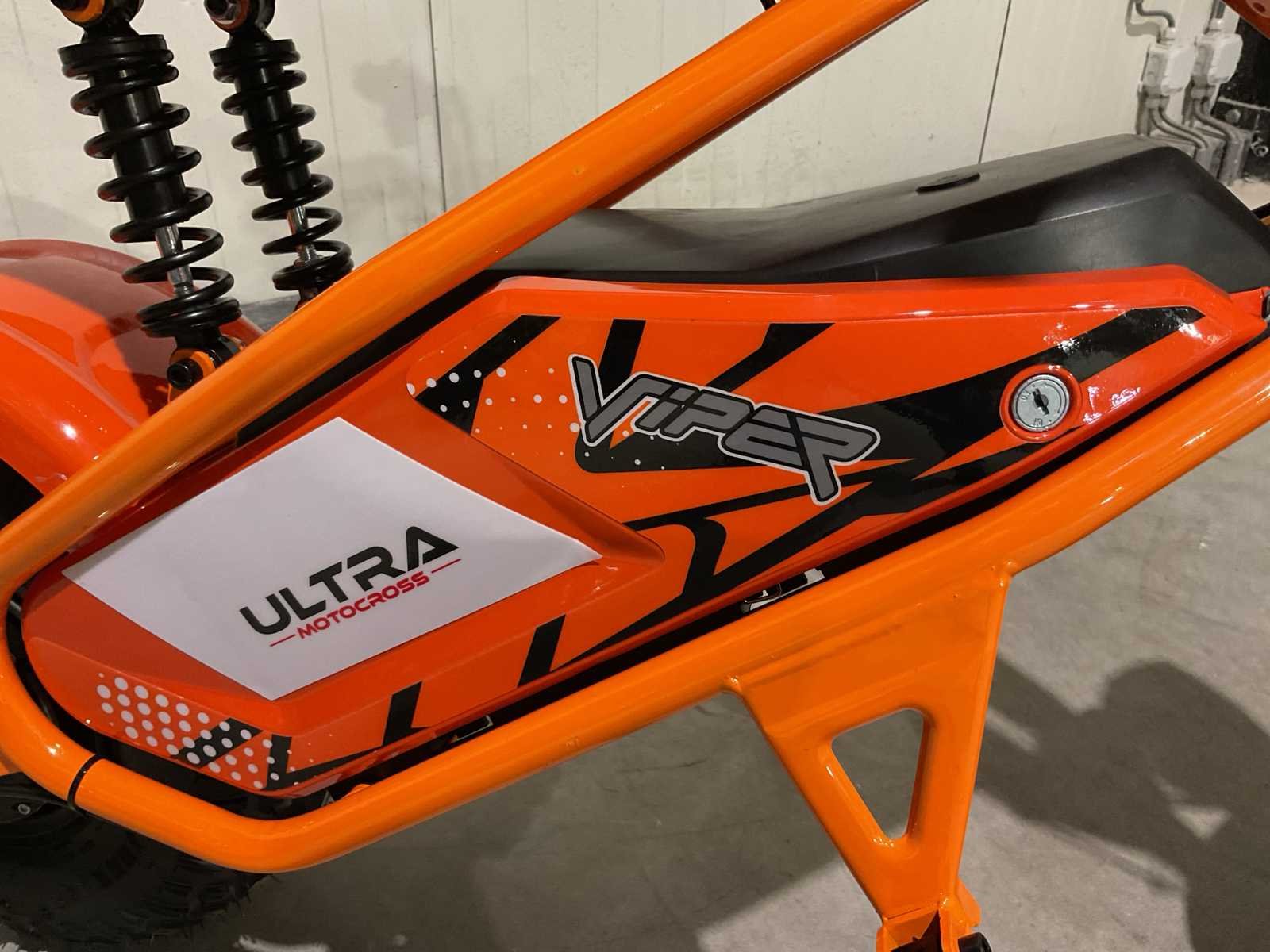 Voorzien van 48V 1000W motor; Led verlichting voor en achter; Led dashboard met kilometerteller; 3 snelheid standen; Topsnelheid circa 45kmh; Actieradius +-20km; Zadelhoogte: 62cm; Electromotor direct op het achterwiel!; Afmeting gemonteerd: 130x70x90cm (LxBxH); Maximaal toelaatbaar gewicht: 100KG; Ongebruikt in doos (Verzend afmetingen: 1200x320x640, gewicht 41kg) Merk: Ultra Motocross Model: Viper MUL TX 50 Type: OR Brandstof: Elektrisch Kleur: Oranje Bouwjaar: 2025