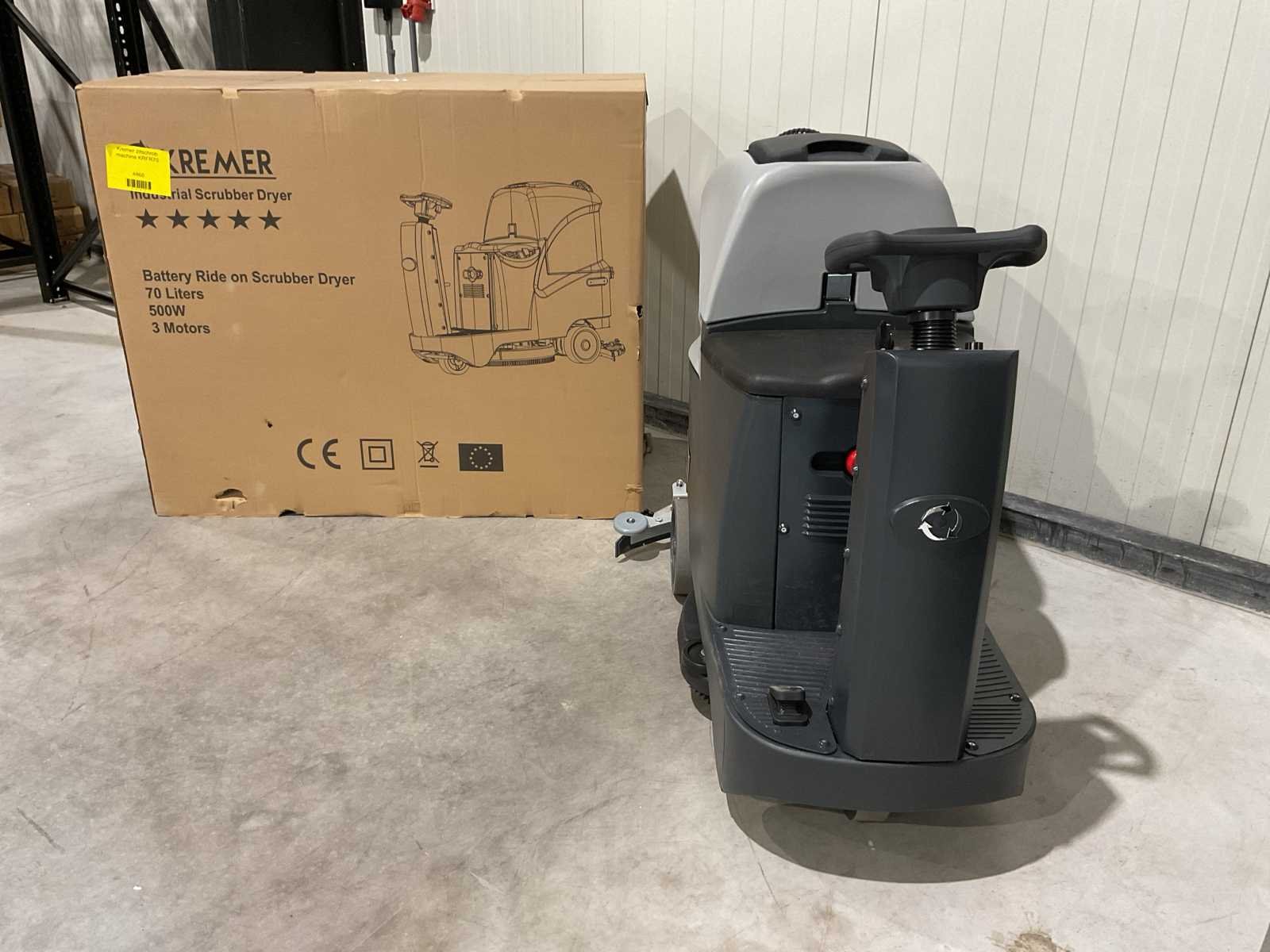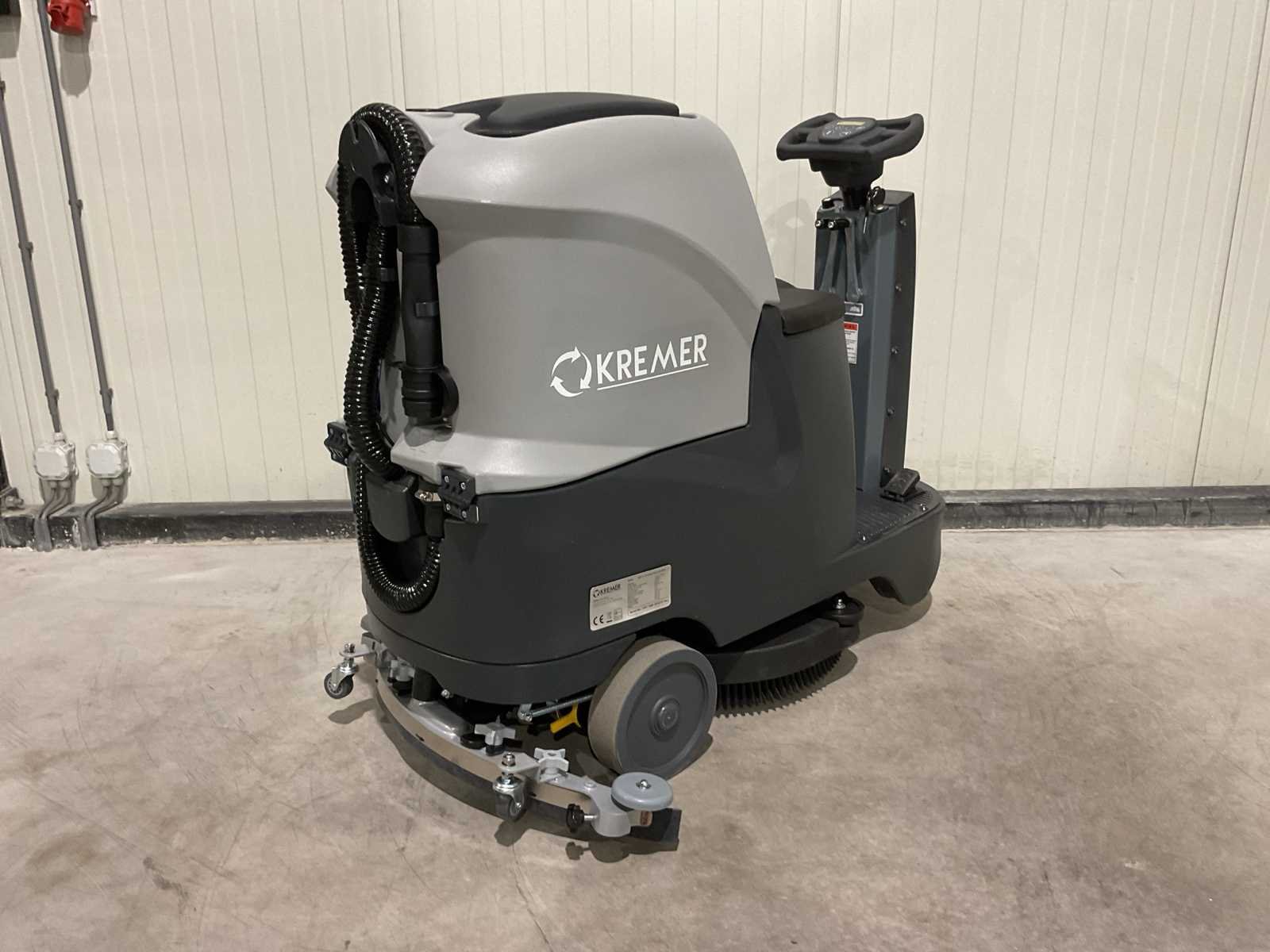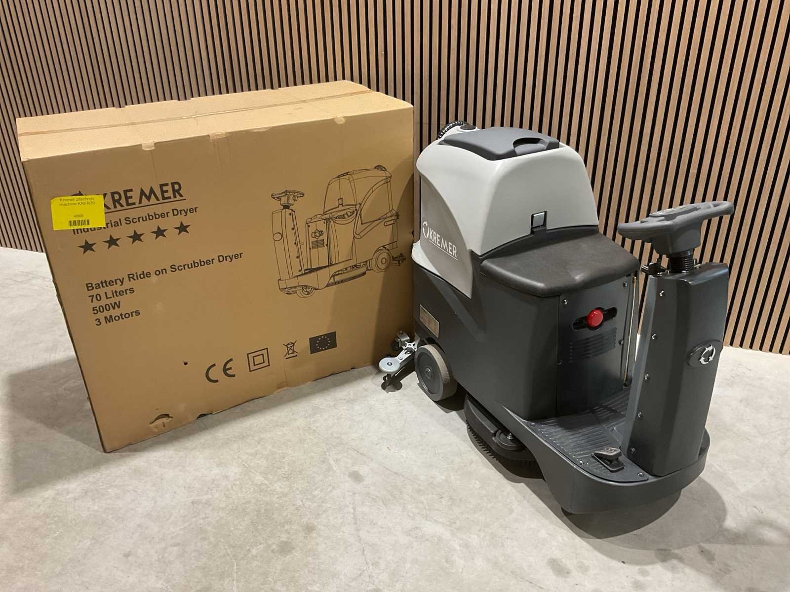 Voorzien van 70 ltr schoon water tank; 70 ltr riool water tank; Zuigbreedte 80cm; reinigingsvermogen 3500 m2/u; Batterij duur 240 minuut; Oplaadbare accu; Accu stroom indicator; accu lader; Oplaadtijd: 8 uur; Handrem; Ongebruikt in doos (Verpakkings afmetingen 620x1110x1310 mm bxhxl, gewicht 220kg) Merk: Kremer Type: KR-FR70 Bouwjaar: 2025 Werkbreedte: 800mm Elektrisch: true Aansluiting: 24V Accu lader: true Oplaadbaar: true Eigen gewicht: 220kg Totale afmeting L: 1310mm Totale afmeting Breedte: 620mm Totale afmeting Hoogte: 1080mm