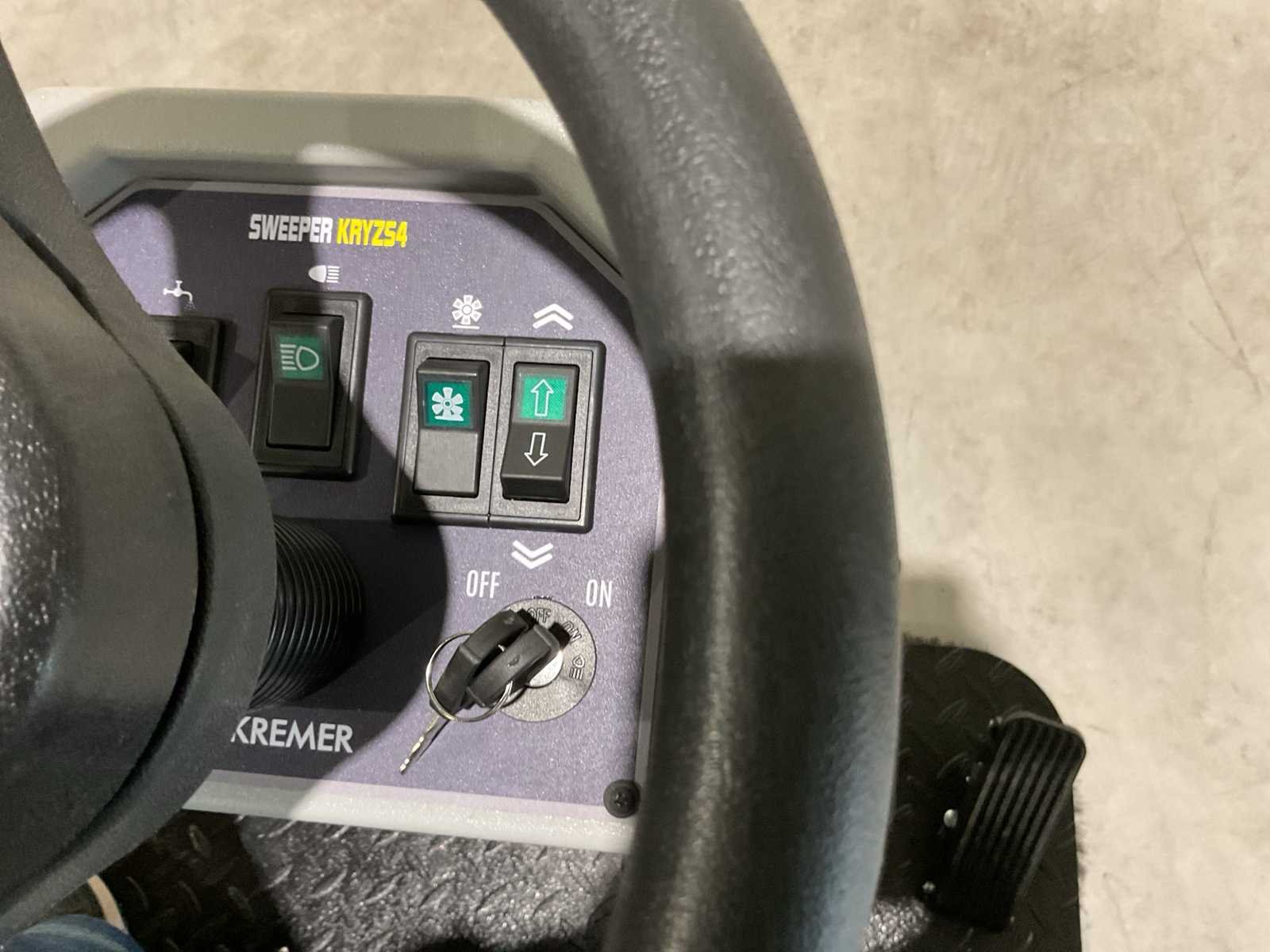 Voorzien van 2 reserve borstels; Afmetingen (LxBxH) 160 x 116 x 130 cm; Accu 48 V; Veegbreedte 1250 mm; Breedte zijborstels 2*400 mm; Loopmotor 700 W; Accucapaciteit 48 v/ 65 ah * 4 stuks; Totaalgewicht 396 kg; Breedte hoofdborstel 500 mm; Werkefficiëntie 6380 m2/h; Vuilcontainerinhoud 80L; Rolborstelmotor 700W; Loopsnelheid 0-10 Km/h; Ongebruikt Merk: Kremer Type: Sweeper KRYZ54 Bouwjaar: 2025 Werkbreedte: 1250mm Elektrisch: true Aansluiting: 48V Eigen gewicht: 396kg Totale afmeting L: 160mm Totale afmeting Breedte: 116mm Totale afmeting Hoogte: 130mm