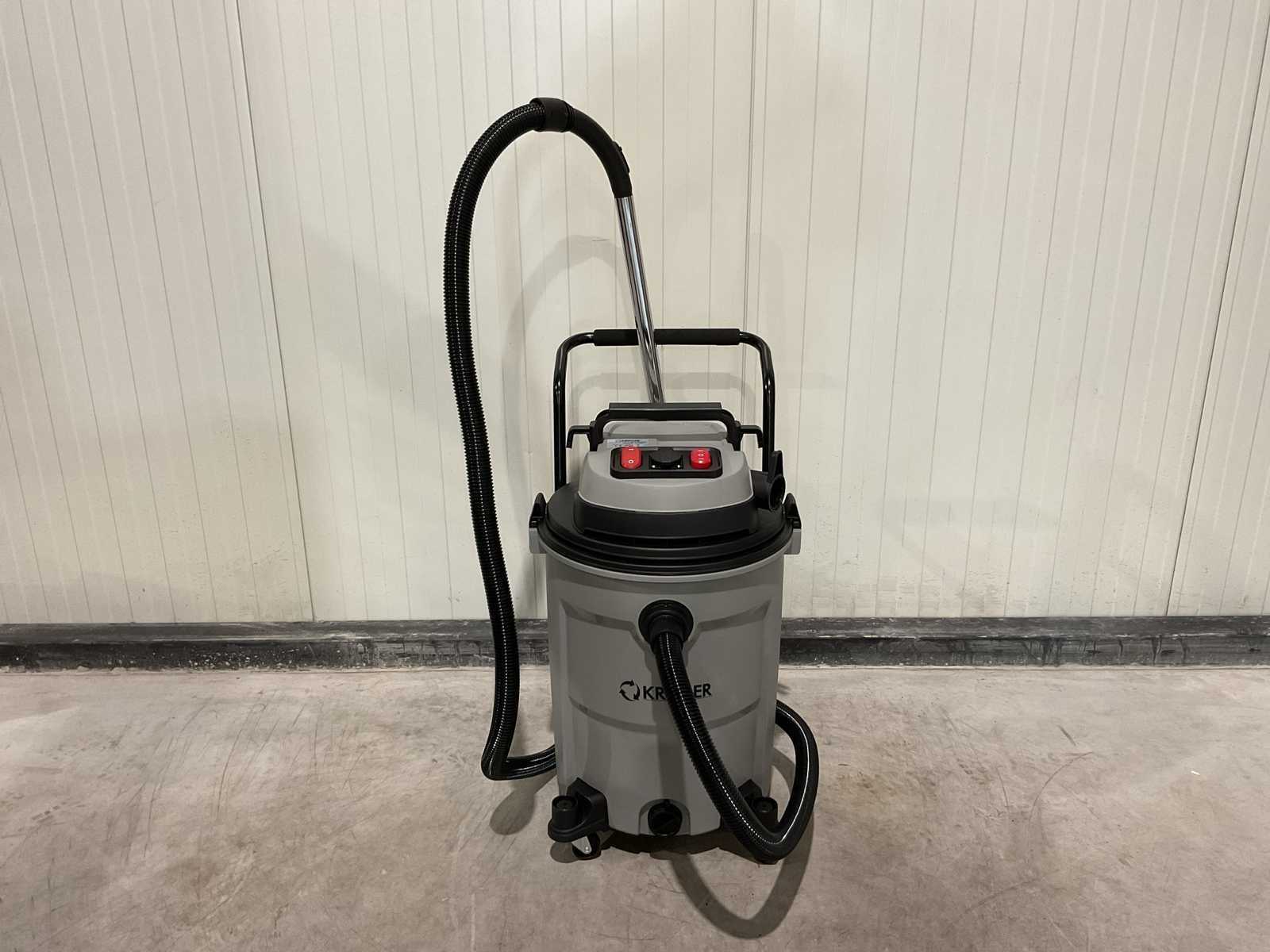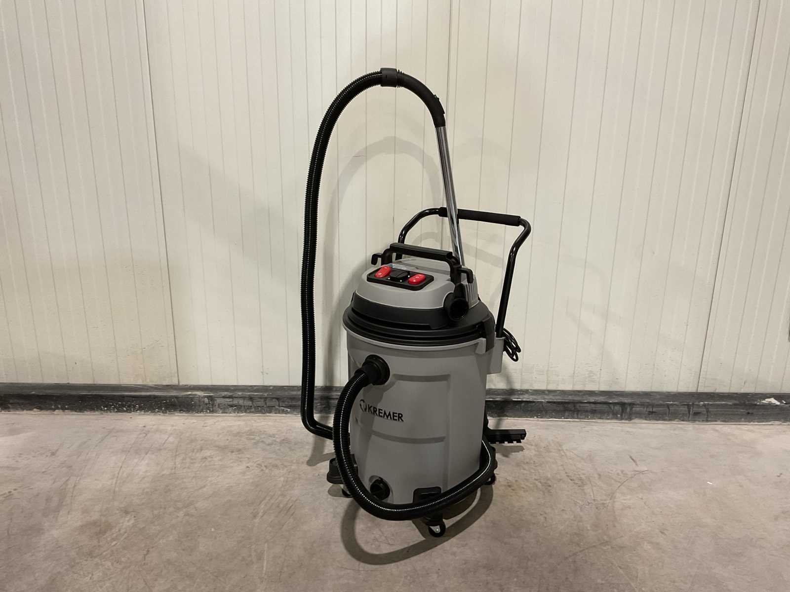 Voorzien van; 4 zwenkwielen; Nat- en droog stofzuiger; Inhoud 60 Liter; Kunststof ketel; 2 Motoren onafhankelijk; 3400W; Blaasfunctie; Stekkerdoos; Stofzuiger slang; Externe machine start; Aflaat dop; 12,5 kg; Ongebruikt in doos (Afmeting transport verpakking 485 x 460 x 745 mm 14,3 kg) Merk: Kremer Type: KR60LE Bouwjaar: 2025 Vermogen: 2600W Zakloos: true Nat/droog zuiger: true Stopcontact: true Aansluiting: 220V