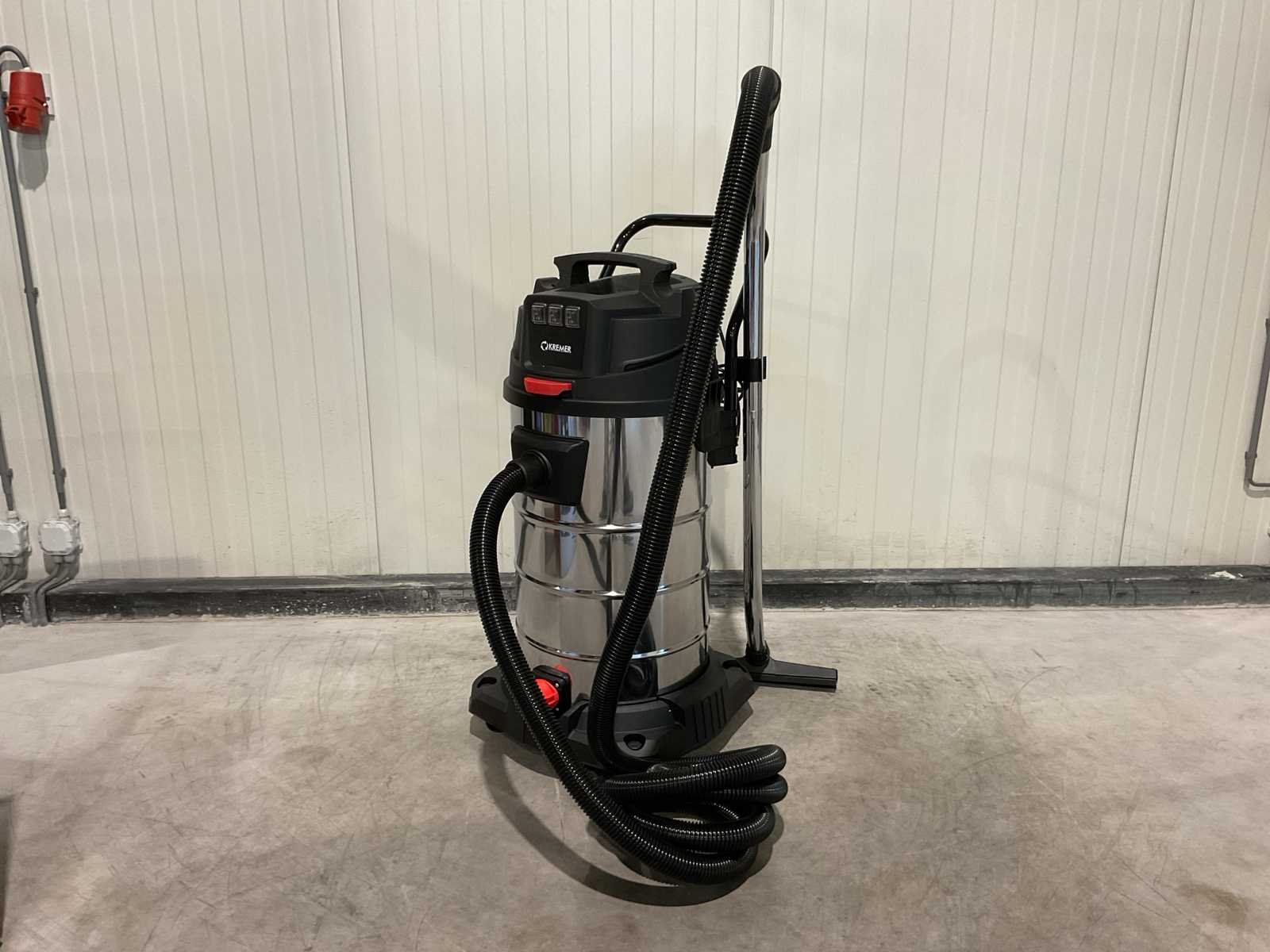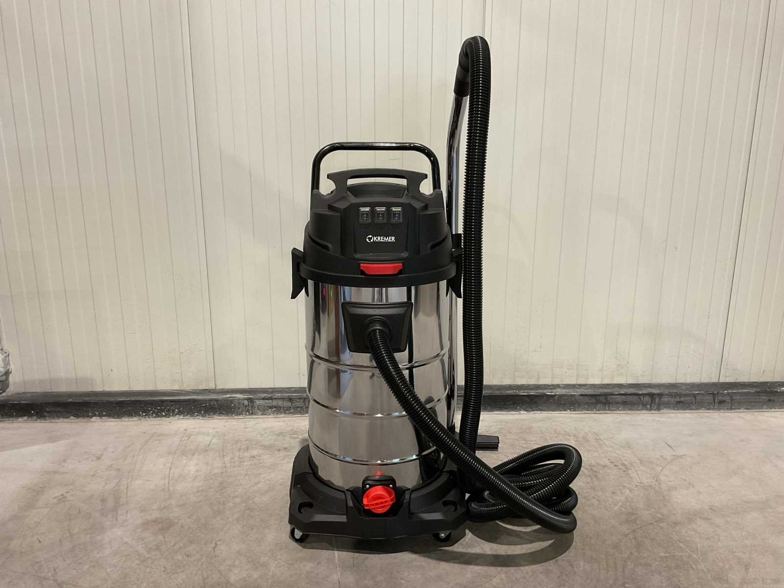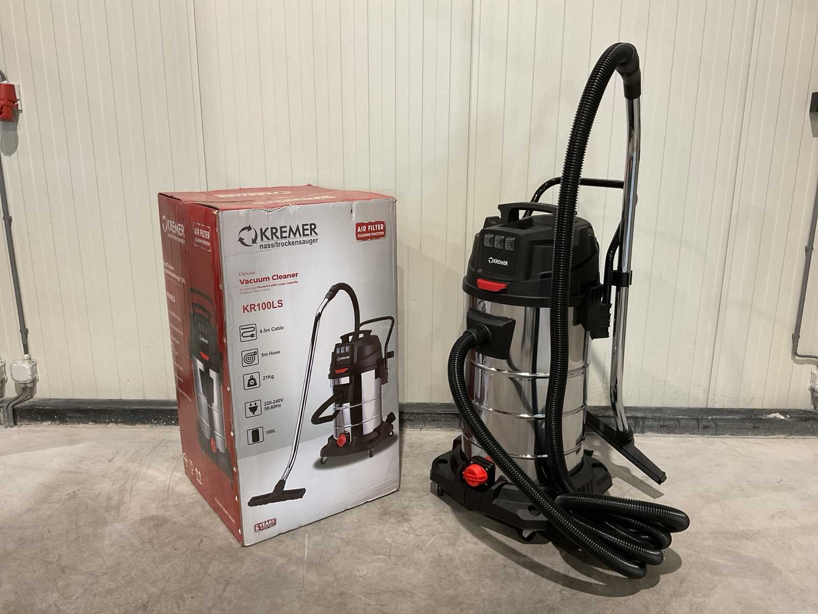 Voorzien van 4,5 meter kabel; 5 mtr zuigslang; Nat- en droog stofzuiger; Inhoud 100 Liter; 3 Motoren onafhankelijk; 3000W; Klopfunctie; Blaasfunctie; RVS Ketel; Aflaat dop; 4 Zwenkwielen; Ongebruikt in doos (Afmeting transport verpakking 550x550x1000 mm lxbxh, gewicht 21 kg) Merk: Kremer Type: KR100LS Bouwjaar: 2025 Vermogen: 3000W Zakloos: true Nat/droog zuiger: true Stopcontact: true Aansluiting: 220V