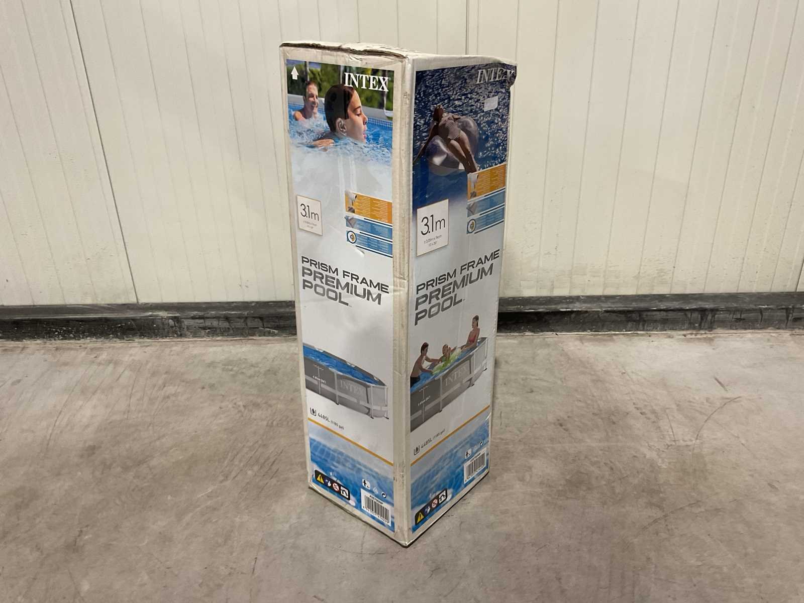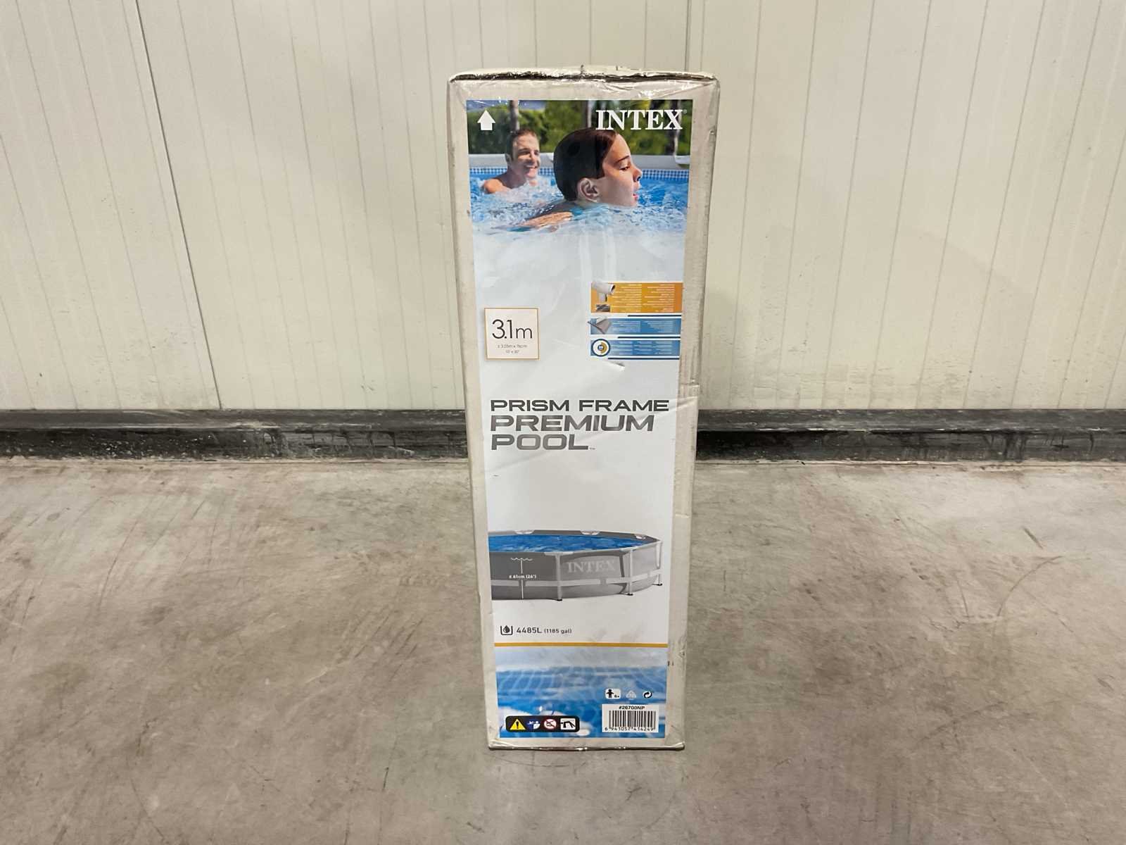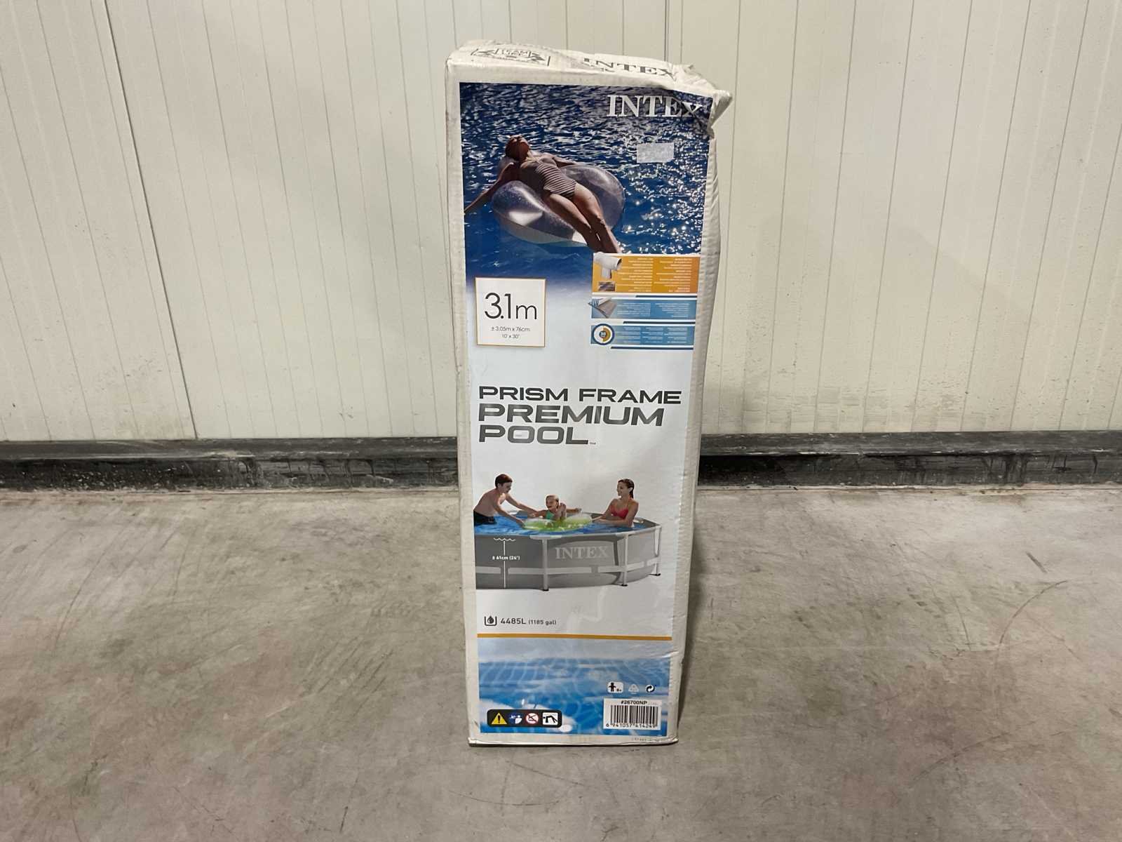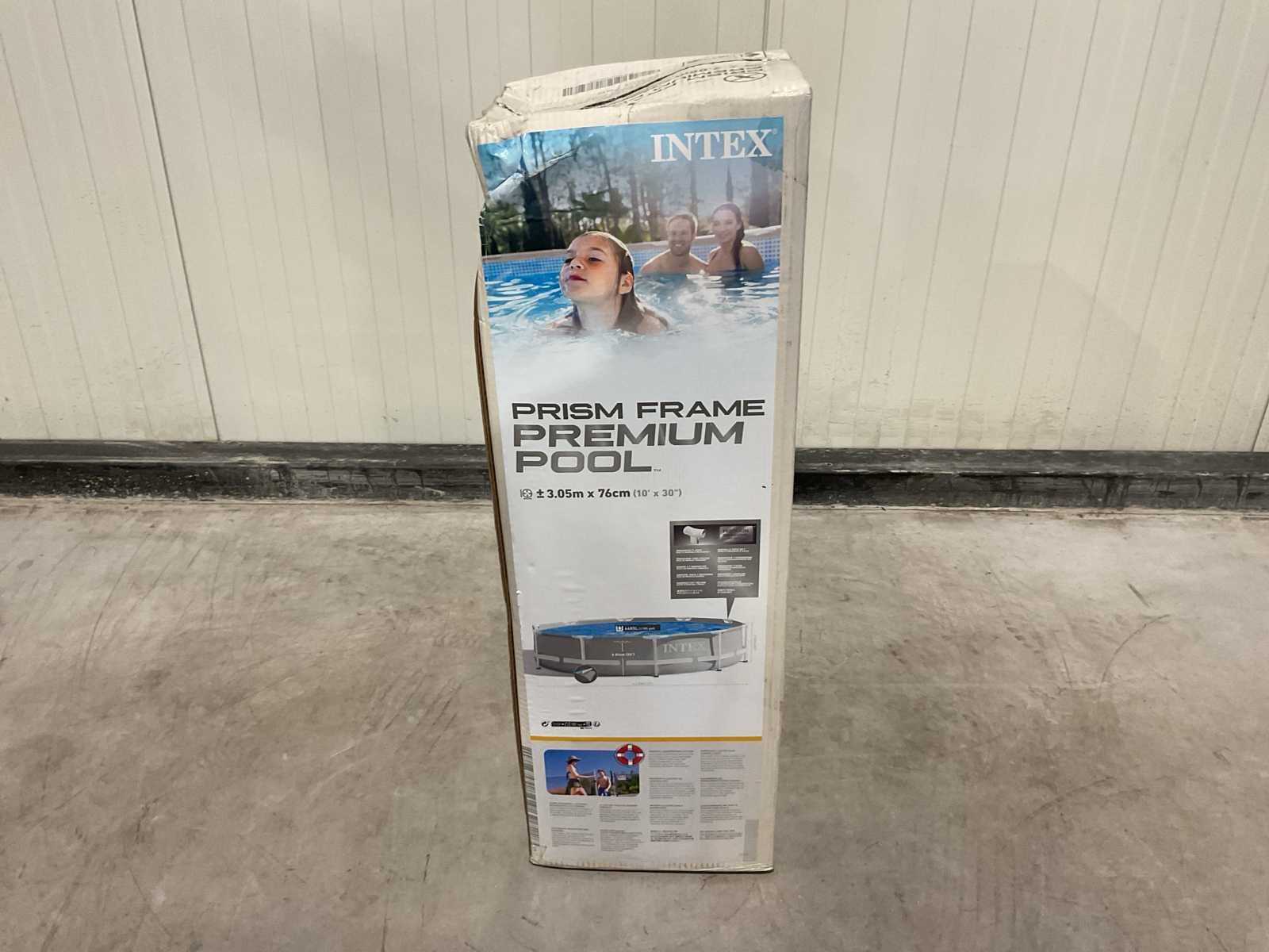 Voorzien van Opzetzwembad; 3-laags PVC met gerasterde polyester tussenlaag; Frame gepoedercoat staal; Vorm: Prism; Inhoud 4485 liter; Aanbevolen waterhoogte 61 cm; Pompaansluiting (mm) 32; Diameter (cm) 305; Hoogte (cm) 76; Dikte liner wand (mm) 0,50; Dikte liner bodem (mm) 0,32; Reparatieset; Ongebruikt in doos Merk: INTEX Model: 26700NP Prism Frame Premium Product type: 3,1m Kleur: Blauw Gewicht: 25.5kg Lengte: 35.6cm Breedte: 34cm Hoogte: 87.6cm Materiaal: Dubbelwandig PVC folie met gerasterde binnenlaag