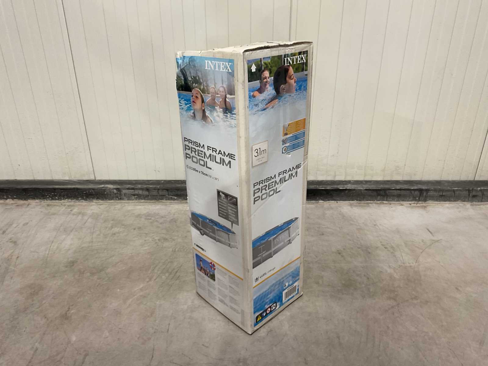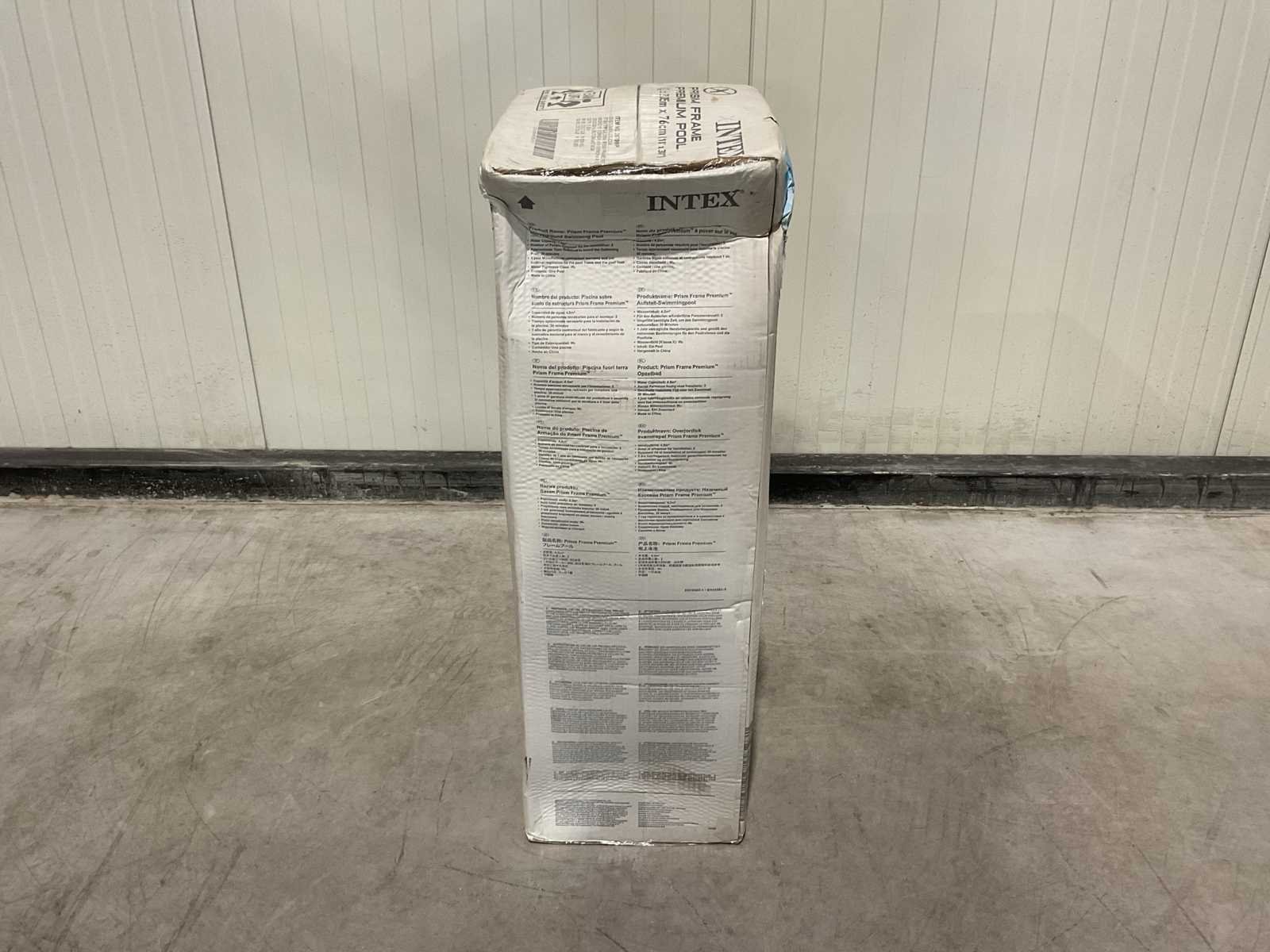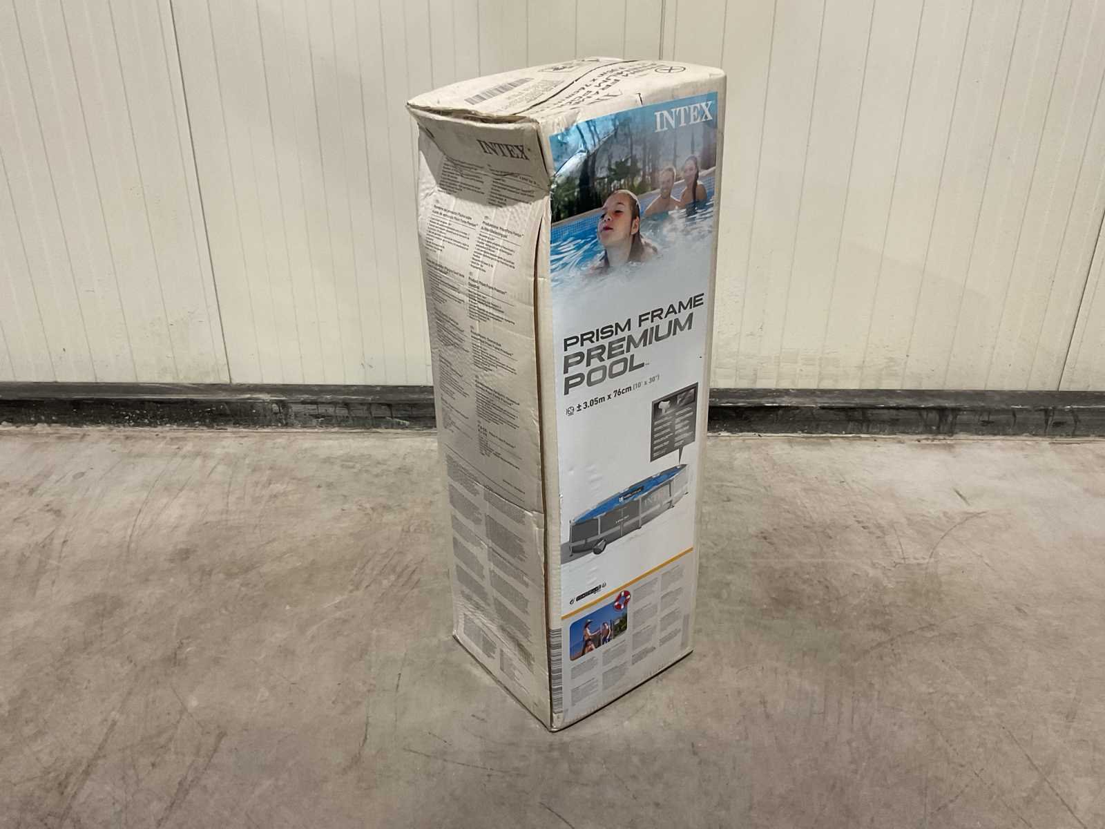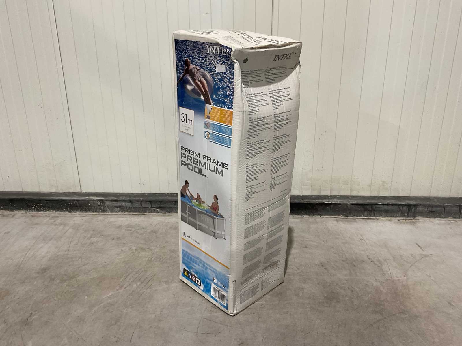 Voorzien van Opzetzwembad; 3-laags PVC met gerasterde polyester tussenlaag; Frame gepoedercoat staal; Vorm: Prism; Inhoud 4485 liter; Aanbevolen waterhoogte 61 cm; Pompaansluiting (mm) 32; Diameter (cm) 305; Hoogte (cm) 76; Dikte liner wand (mm) 0,50; Dikte liner bodem (mm) 0,32; Reparatieset; Ongebruikt in doos Merk: INTEX Model: 26700NP Prism Frame Premium Product type: 3,1m Kleur: Blauw Gewicht: 25.5kg Lengte: 35.6cm Breedte: 34cm Hoogte: 87.6cm Materiaal: Dubbelwandig PVC folie met gerasterde binnenlaag