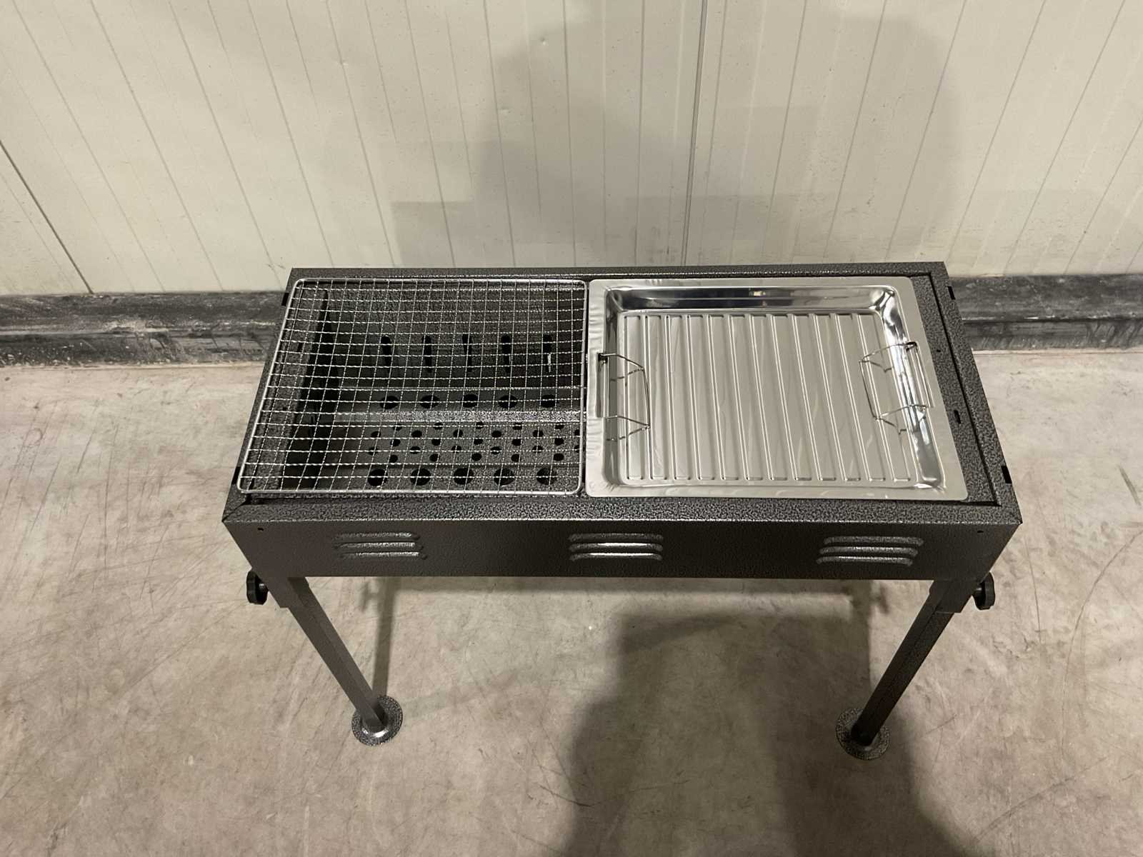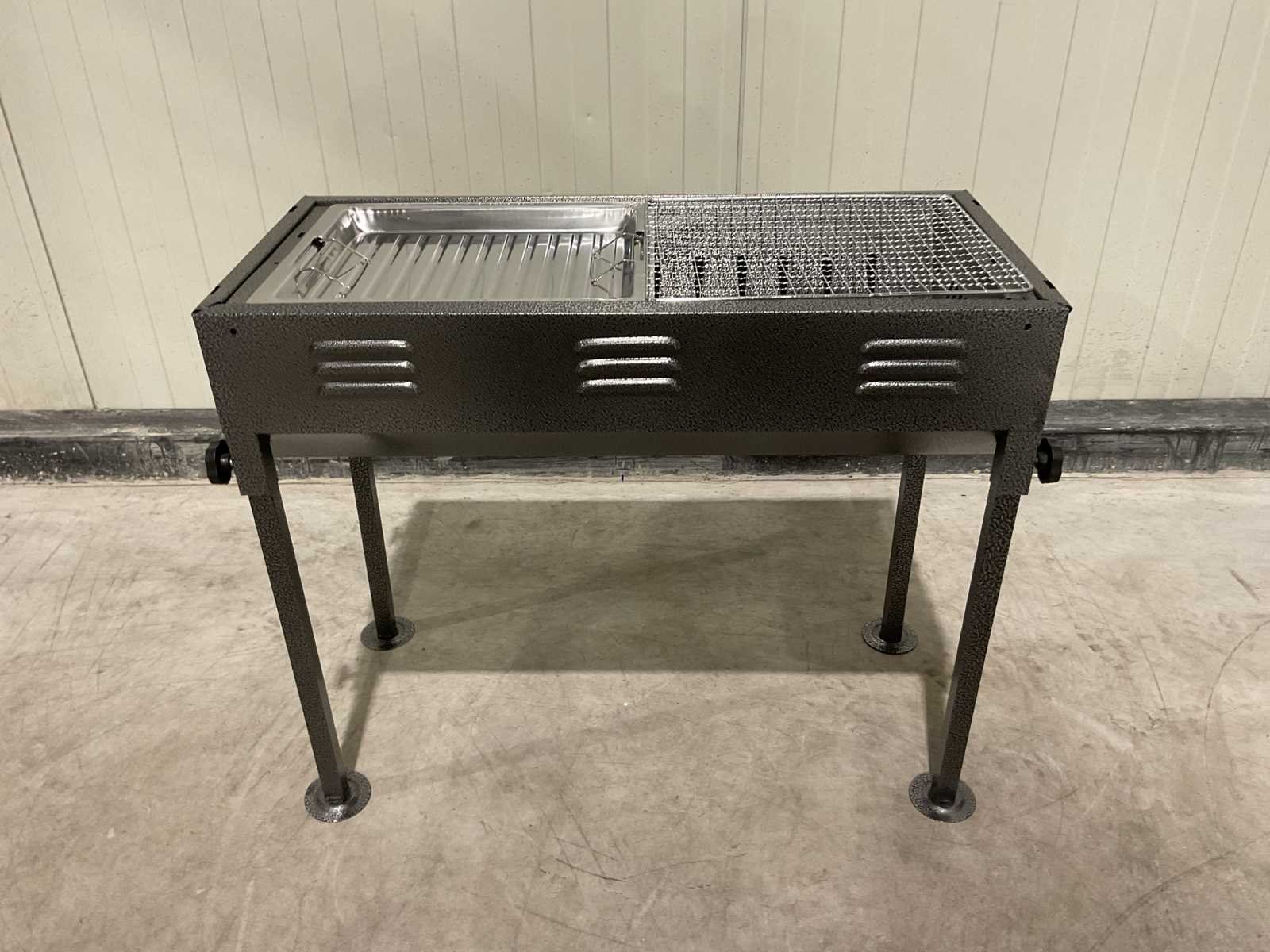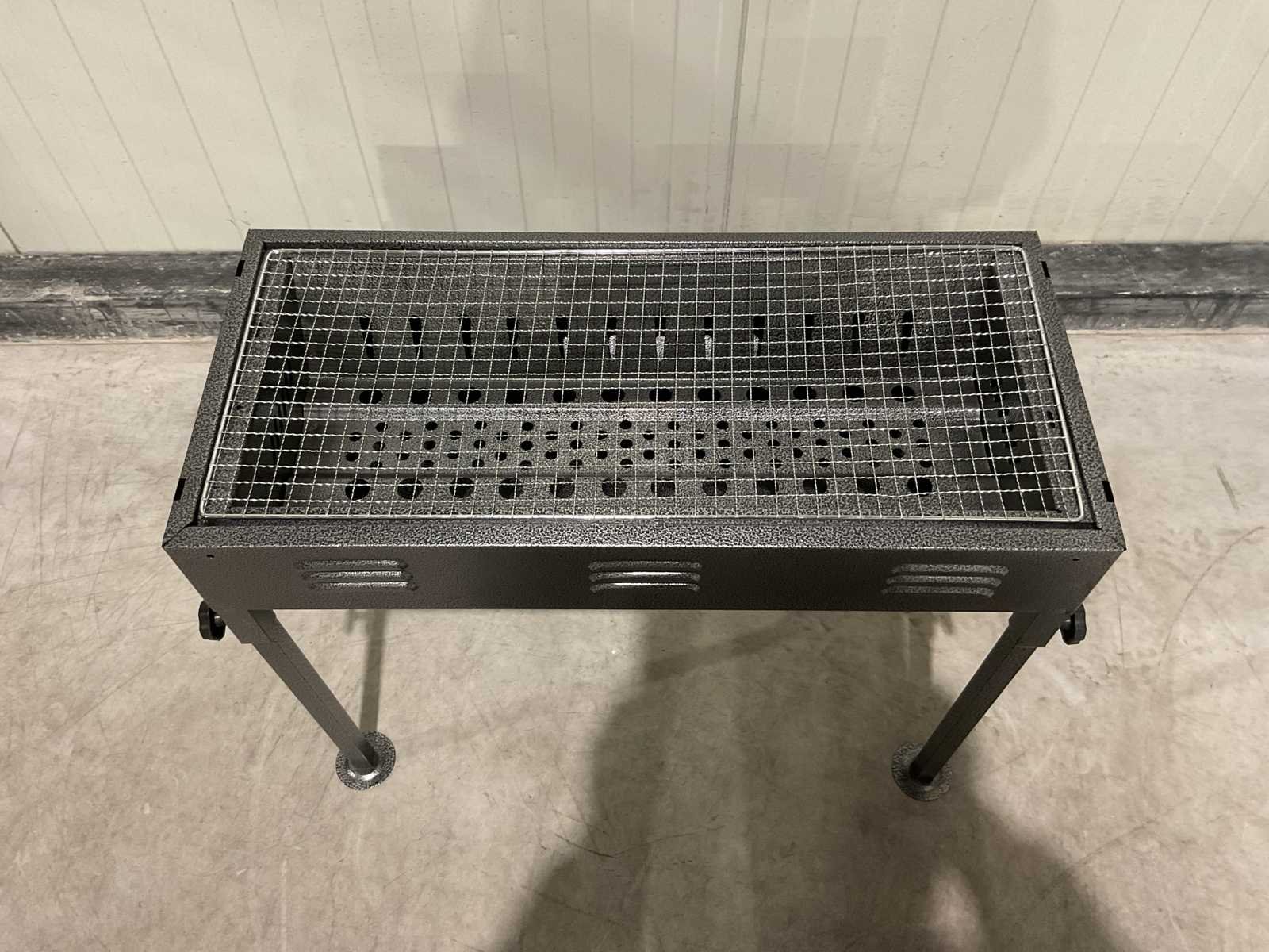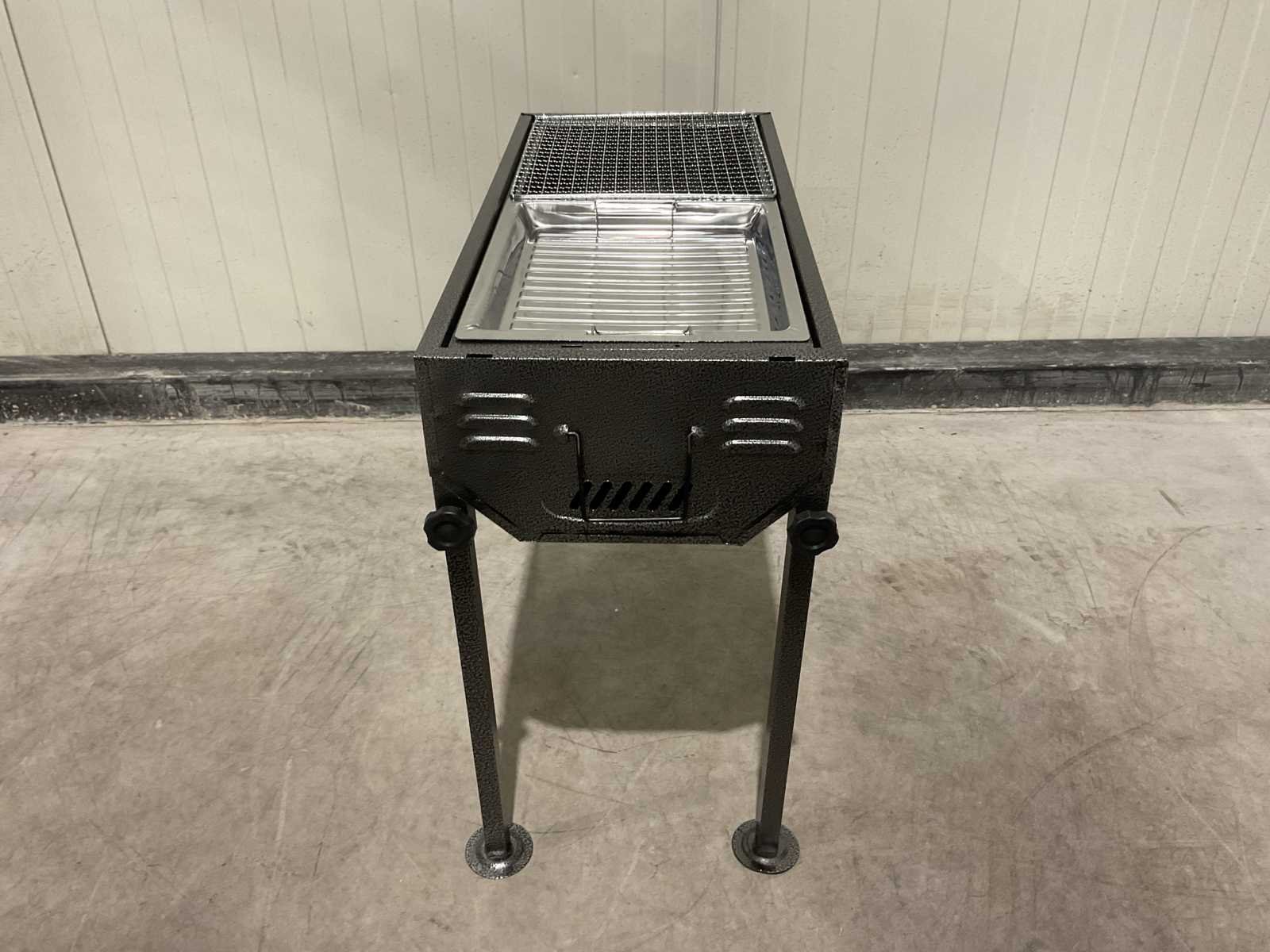 Voorzien van rvs behuizing; in hoogte verstelbaar; BBQ voor 5-10 personen; Verwijderbare grill rekken Afneembare poten; grill oppervlak 62 x 26 cm; Kleur: zwart; Ongebruikt in doos Merk: Portable Japanse Model: TL-670 Kleur: Zwart Gewicht: 5.8kg Lengte: 66cm Breedte: 18cm Hoogte: 31.5cm Materiaal: Metaal