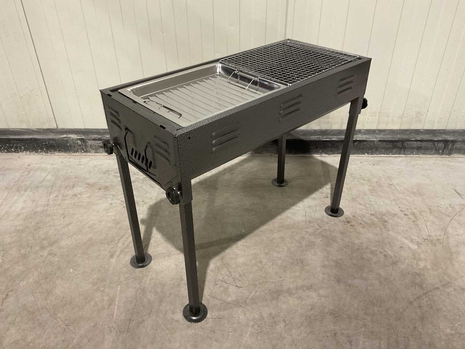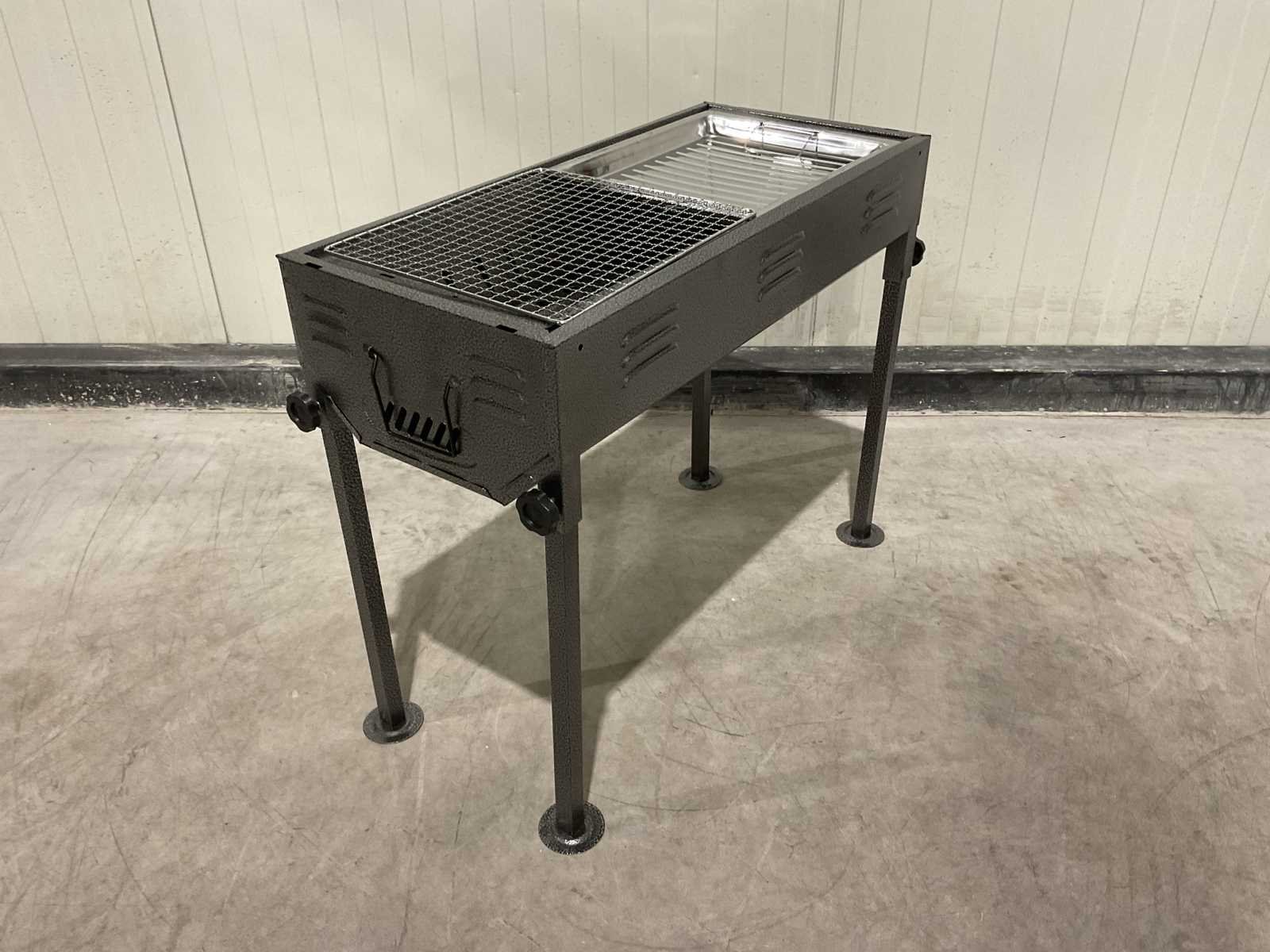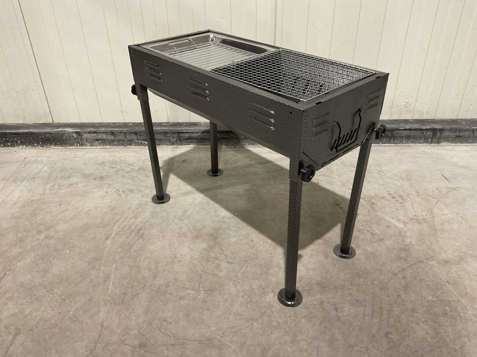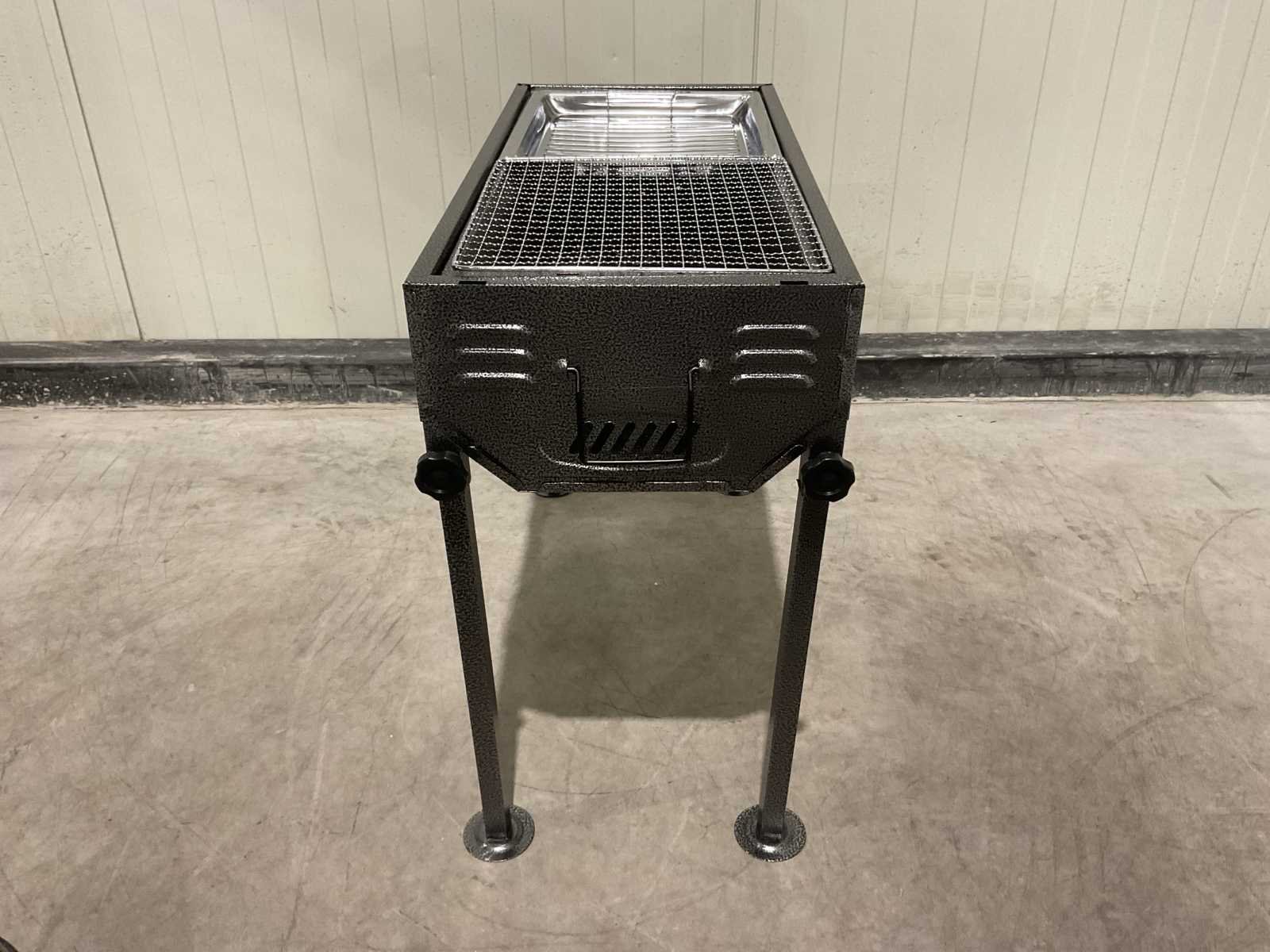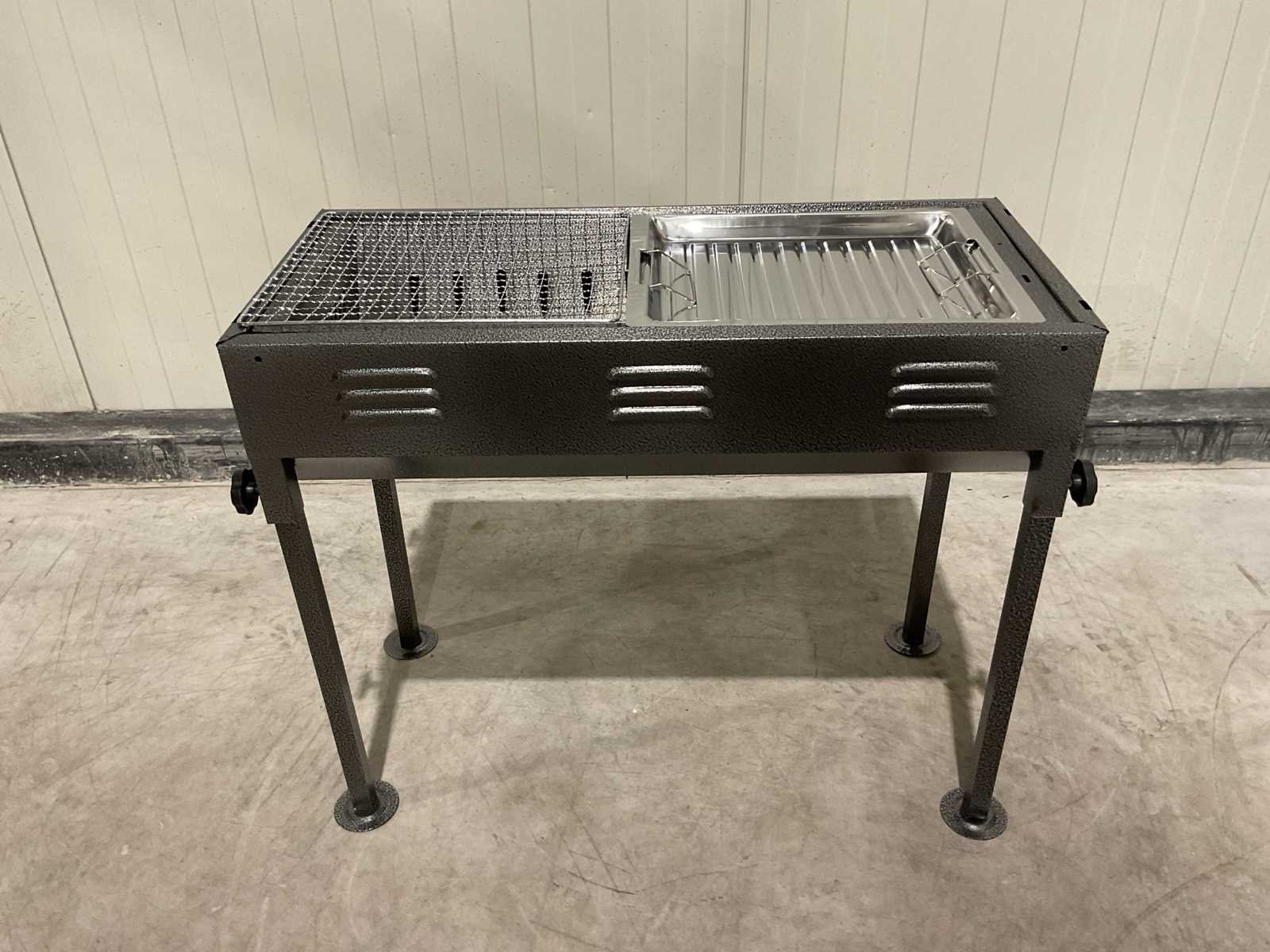 Voorzien van rvs behuizing; in hoogte verstelbaar; BBQ voor 5-10 personen; Verwijderbare grill rekken Afneembare poten; grill oppervlak 62 x 26 cm; Kleur: zwart; Ongebruikt in doos Merk: Portable Japanse Model: TL-670 Kleur: Zwart Gewicht: 5.8kg Lengte: 66cm Breedte: 18cm Hoogte: 31.5cm Materiaal: Metaal