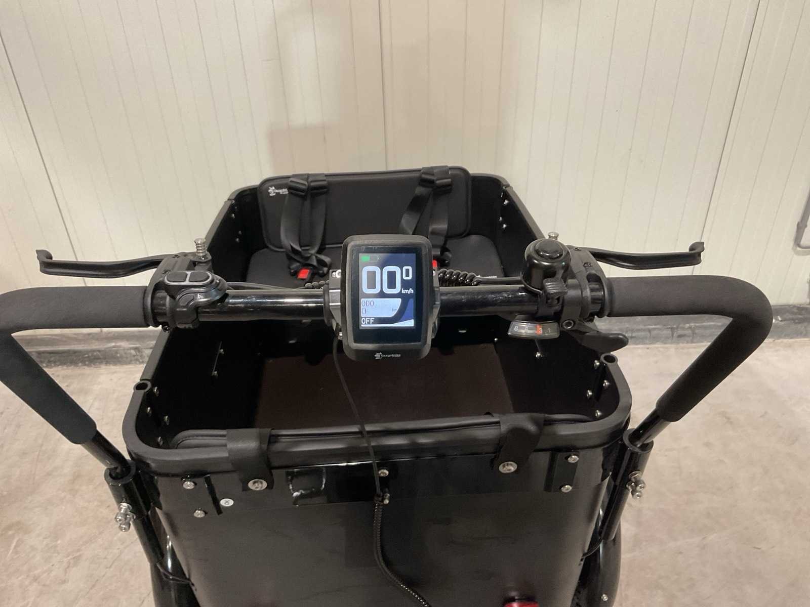 Voorzien van; sleutels voor deurtje en accu; bereik 50km; 110Nm koppel; Gears 8-speed Shimano Altus; Automatische verlichting Gaat aan bij schemering; 19,6 Ah Batterijcapaciteit; TÜV-gekeurd Kwaliteit getest in Duitsland; Kleur Poedercoating, Zwart; Elektromotor 250 Watt, Ananda middenmotor 110 Nm; Accu 19,6 Ah, 36 Volt, Samsung/LG; Band 24" x 2.15 voorband, 26" x 2.15 achterband, lekbestendig, reflecterende strip langs de zijkant; Zadelzacht universeel, snelspanner voor zithoogteverstelling; Stuur verstelbaar 115-130 cm, gevoerd stuur; ongebruikt in plastic Merk: Cargobike Model: Delight Product type: elecElectrische Bakfiets Remsysteem: Hydraulische Bengal, schijfrem Versnellingen: 8 Framemaat: 24 en 26 inch Gewicht: 60kg