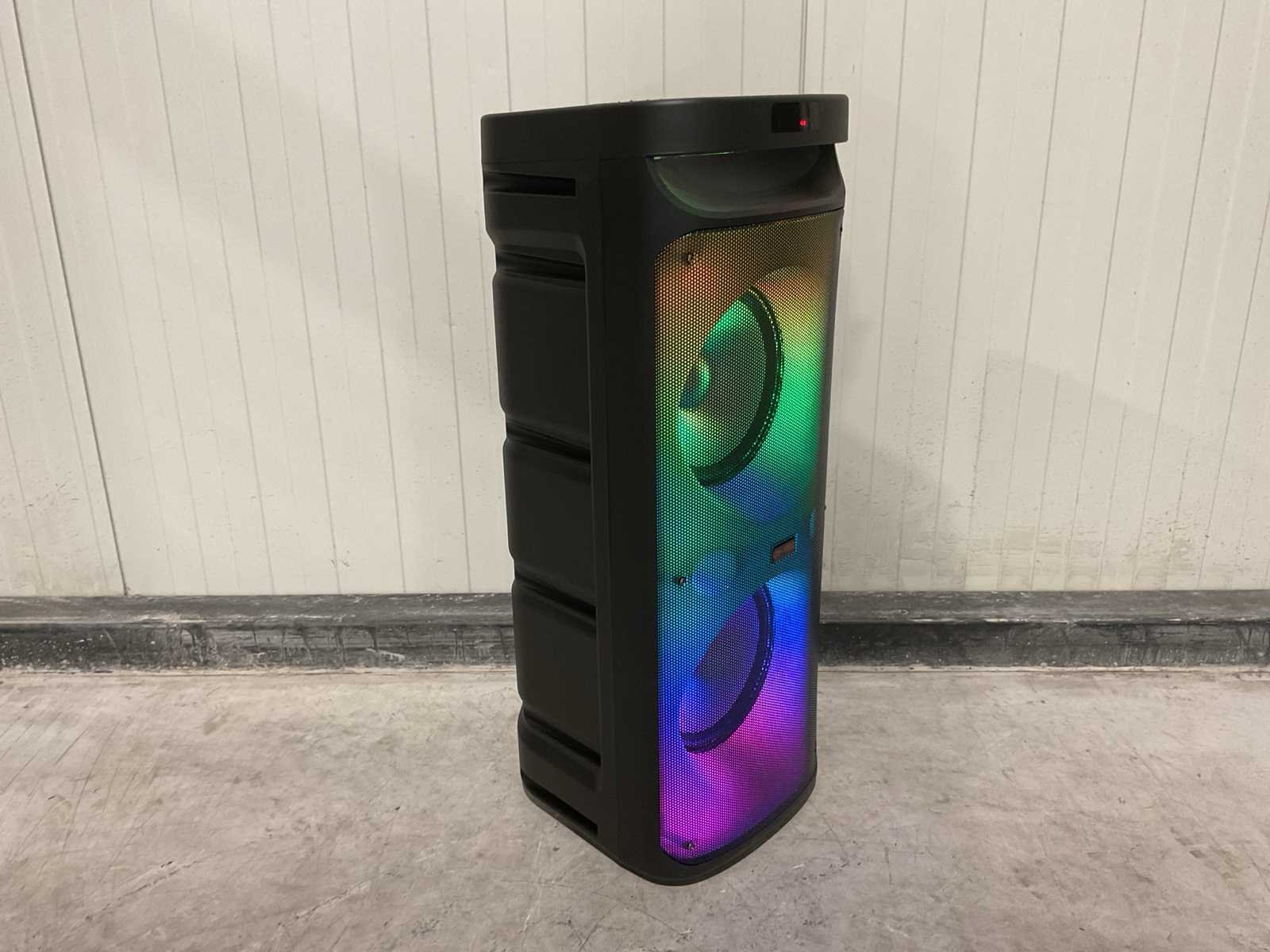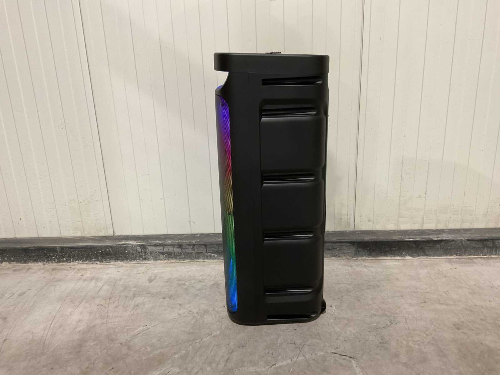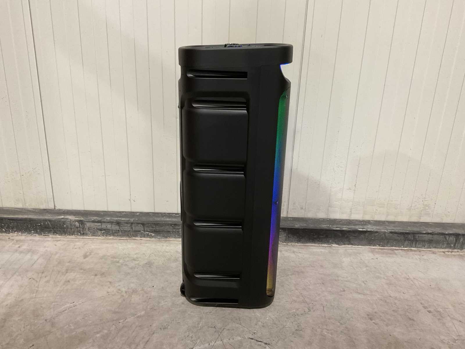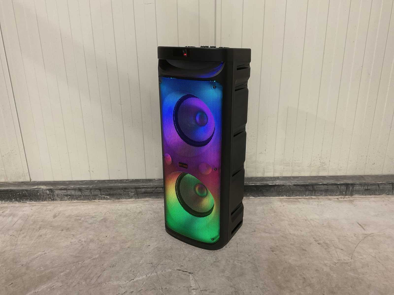 Voorzien van 2x50w speakers; 10,5”speaker Horns; Aansluitingen: USB, TF card, BT, AUX; Draadloze microfoon; afstandsbediening; Party verlichting; meerdere microfoon aansluitingen; Ongebruikt in doos. Merk: Portable wireless speaker Type: GY-1022 Bouwjaar: 2025 Vermogen: 50W Aansluiting: 13.5V Totale afmeting L: 345mm Totale afmeting Breedte: 320mm Totale afmeting Hoogte: 730mm Eigen gewicht: 10kg