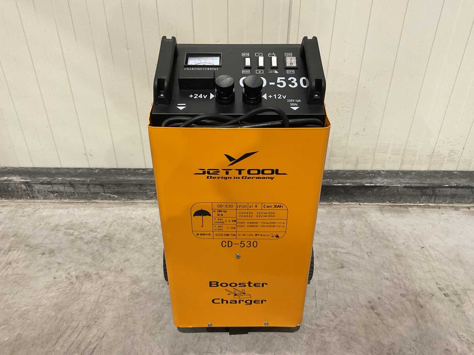 Voorzien van Ingangsspanning 1 fase 230V; Frequentie (Hz) 50; Ingangsvermogen 12V 700W-24V 1100W; Nominaal vermogen 12V 35A-24V 35A; Startstroom (A) - 300 eff; Batterijcapaciteiten (Ah) - 30-450; Aanpassingsposities - 5; Uitgangszekering (A) - 1*50; Beschermingsgraad - IP20; Ongebruikt in doos Merk: Jettool Type: CD 530 Bouwjaar: 2025 Spanning: 230V Aansluiting: 220V Eigen gewicht: 20.6kg Totale afmeting L: 3100mm Totale afmeting Breedte: 270mm Totale afmeting Hoogte: 625mm