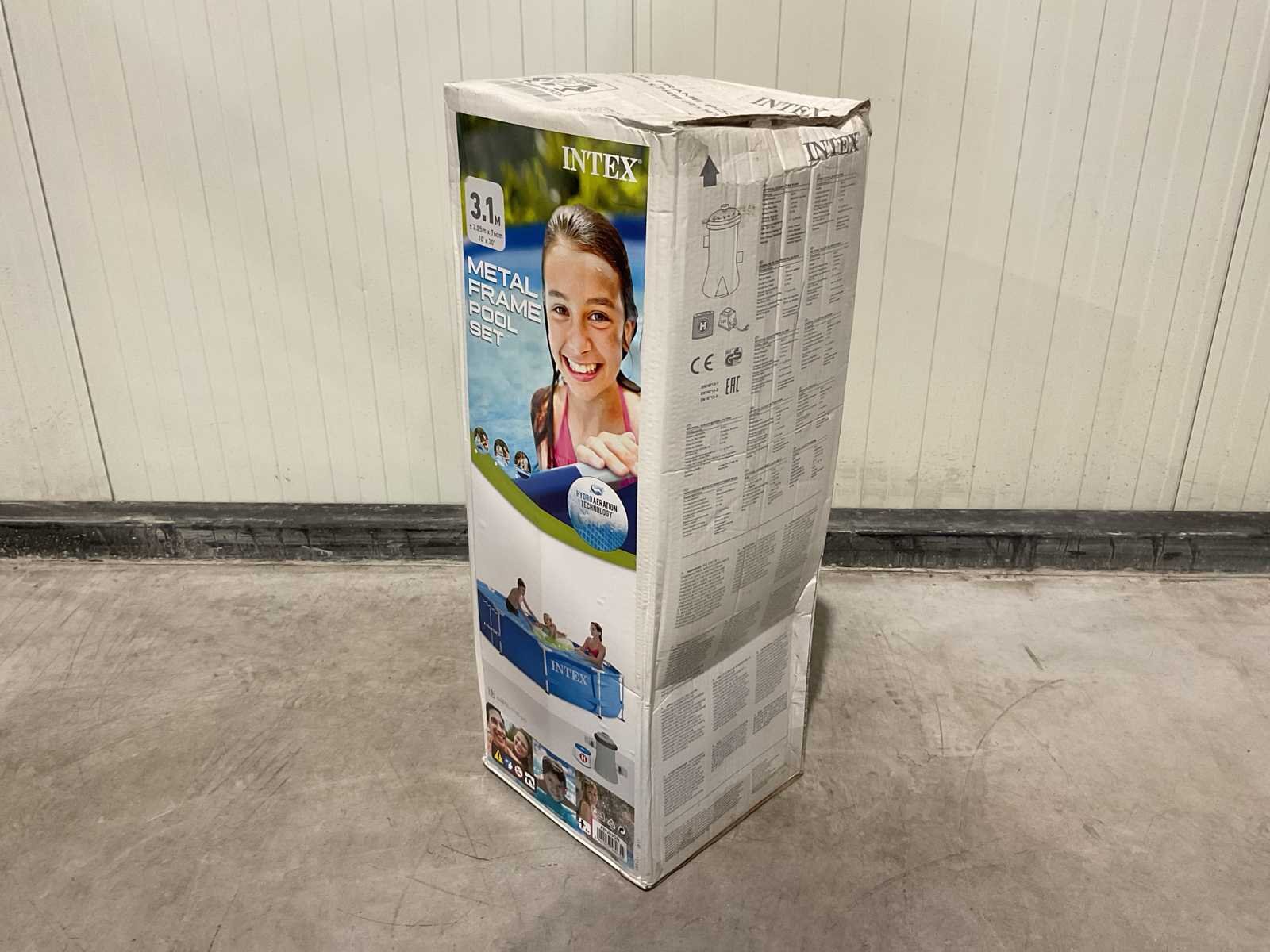 Voorzien van Opzetzwembad; 3-laags PVC met gerasterde polyester tussenlaag; Frame gepoedercoat staal; Vorm: Rond; Inhoud 4485 liter; Aanbevolen waterdiepte (cm) 76; 5 persoons; Pompaansluiting (mm) 32; Diameter (cm) 305; Hoogte (cm) 76; Dikte liner wand (mm) 0,50; Dikte liner bodem (mm) 0,265; Reparatieset; Ongebruikt in doos Merk: INTEX Model: 28202GN Product type: 3,1m Kleur: Blauw Gewicht: 20kg Lengte: 32.7cm Breedte: 29.8cm Hoogte: 87.6cm Materiaal: Dubbelwandig PVC folie met gerasterde binnenlaag