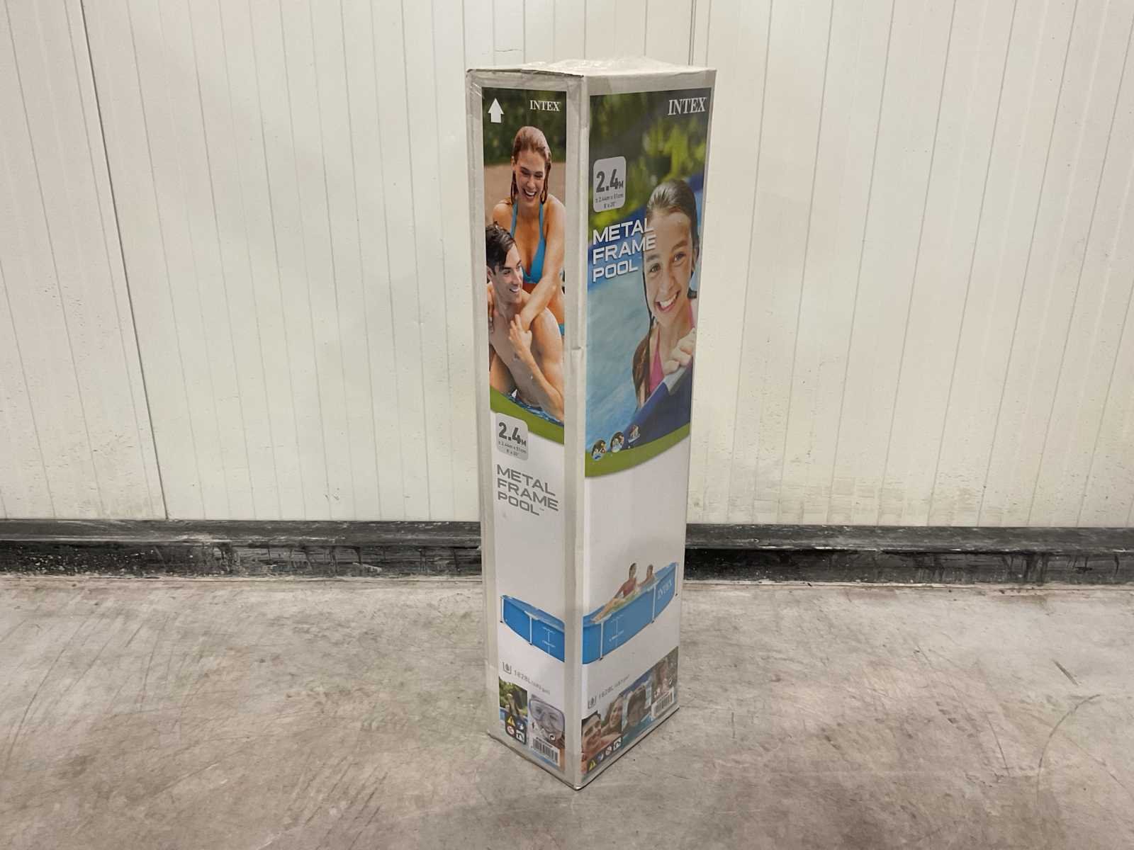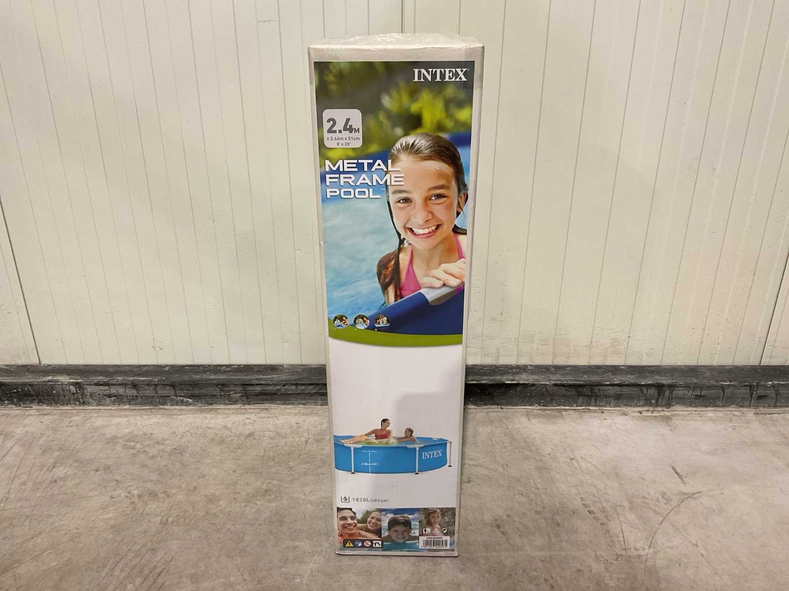 Voorzien van Opzetzwembad; 3-laags PVC met gerasterde polyester tussenlaag; Frame gepoedercoat staal; Vorm: Rond; Inhoud 1828 liter; Aanbevolen waterdiepte (cm) 38; Pompaansluiting (mm) 32; Buitenafmeting Diameter x Hoogte (cm) 244 x 51; Dikte liner wand (mm) 0,50; Dikte liner bodem (mm) 0,265; Reparatieset; Ongebruikt in doos Merk: INTEX Model: 28205NP Product type: 2,4m Kleur: Blauw Gewicht: 9.25kg Lengte: 25.4cm Breedte: 17.5cm Hoogte: 94.6cm Materiaal: Dubbelwandig PVC folie met gerasterde binnenlaag