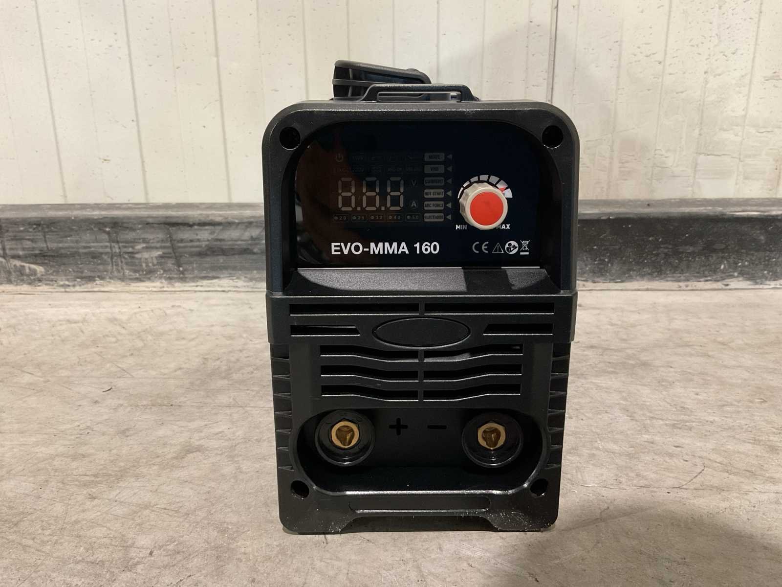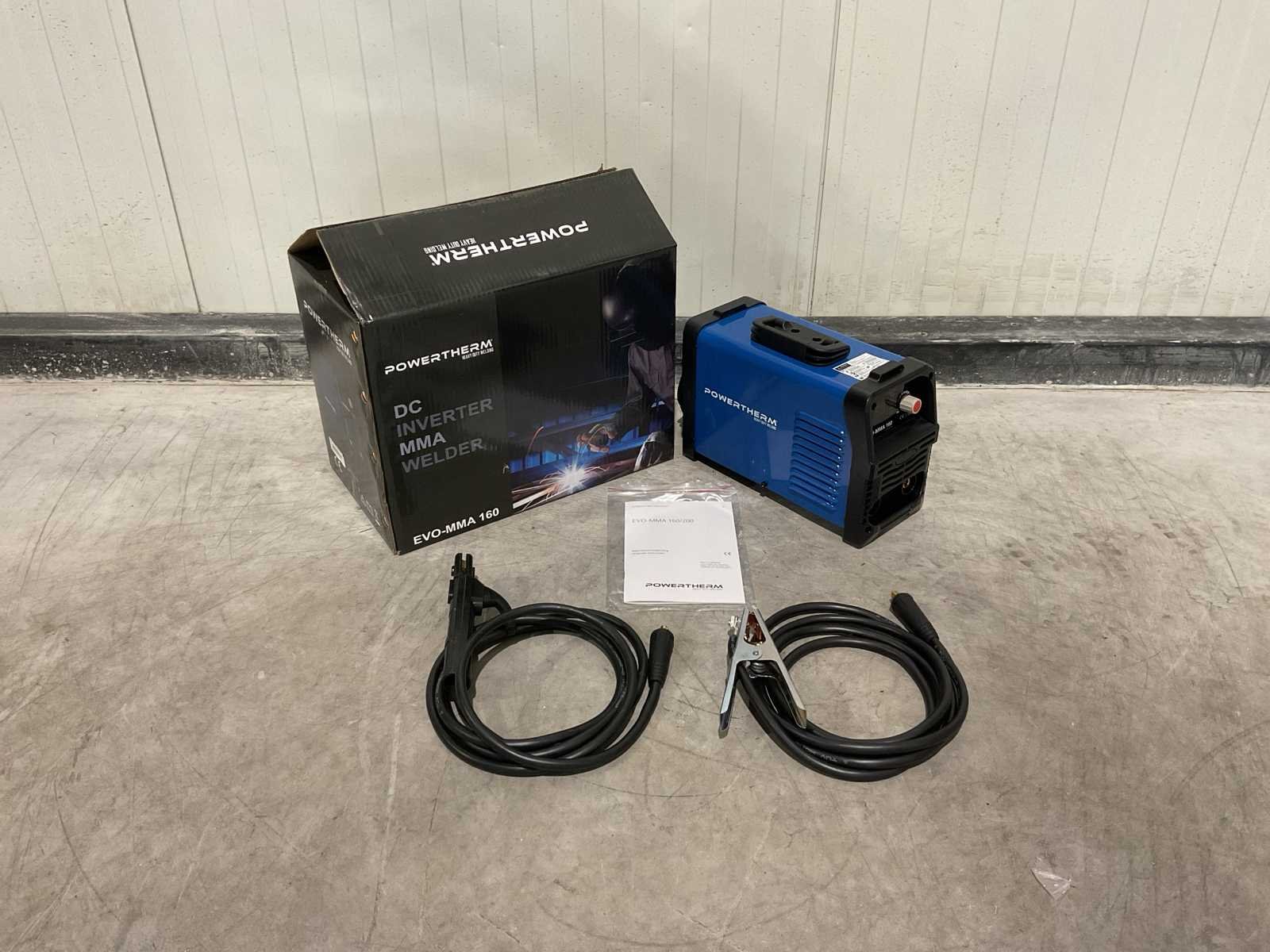 Voorzien van Elektrodehouder met 2m kabel; Aardingsklem 1,5 m; Snoerlengte 1.50 m; hakhamer; staalborstel; Traploze regelaar lasstroom 10-160 Ampere; Werkingscyclus 10 minuten; Inschakelduur 35% 160A-uitvoer; Product afmeting 400x200x300mm (lxbxh); Product gewicht 2 kg; Vermogen 160 W; Ongebruikt in doos (Verpakking afmeting 500x300x400 mm (lxbxh), gewicht 6 kg) Merk: Powertherm Type: EVO-MMA 160 Bouwjaar: 2025 Amperage: 24.3A Ampère belasting: 160A Aansluiting: 230V Machinegewicht: 6kg Afmeting l: 400mm Afmeting b: 200mm Afmeting h: 300mm