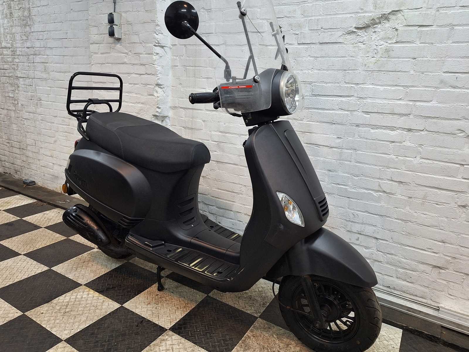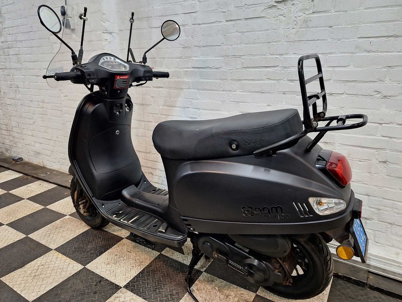 1 sleutel aanwezig voor scooter. Accessoire: hoog windscherm. Merk: Agm Model: 25 km snorscooter 4takt Type: VX50 Snelheid: 25km/h Kenteken: DLN64Z Datum eerste toelating: 12-08-2017 Bouwjaar: 2017 Kleur: mat grijs Afgelezen kilometerstand: 4717km