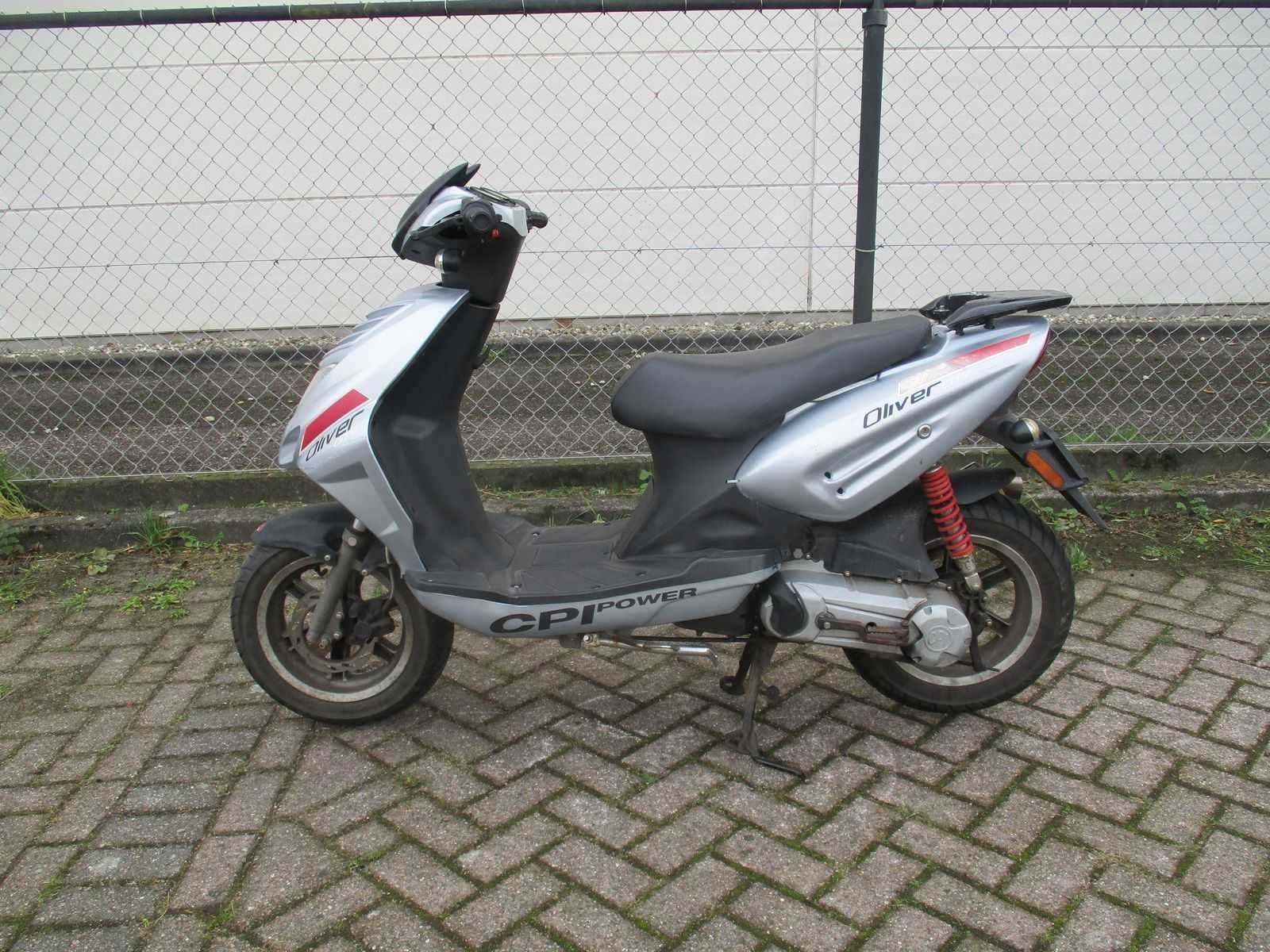 Bromscooter met 1 sleutel. Motor loopt, scooter met gebruikers sporen, staat van onderhoud onbekend. Merk: CPI Model: Bromscooter Type: Oliver City 2 Takt! Handelsbenaming: JR Snelheid: 45km/h Kenteken: 04-FVZ-7 Datum eerste toelating: 2006-07-21 Bouwjaar: 21-07-2006 Transmissie: automaat Brandstof: benzine Kleur: niet van toepassing Afgelezen kilometerstand: 15169km