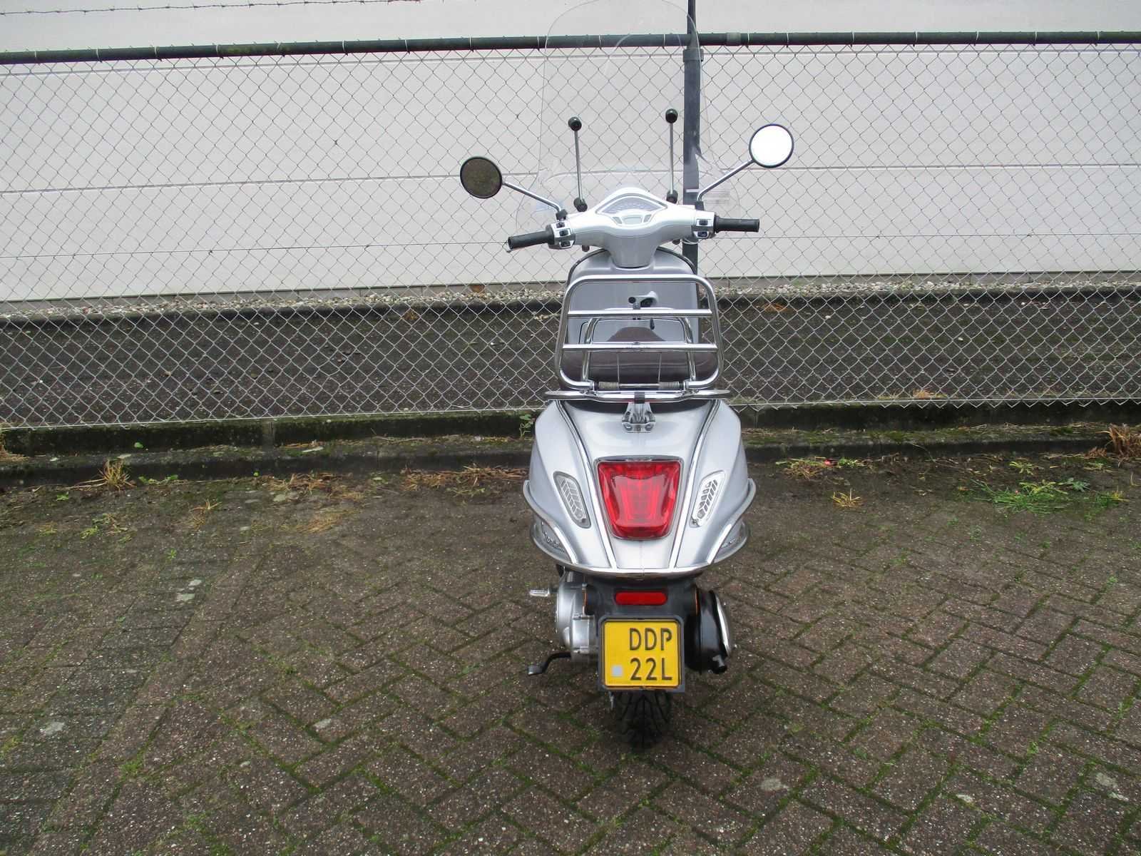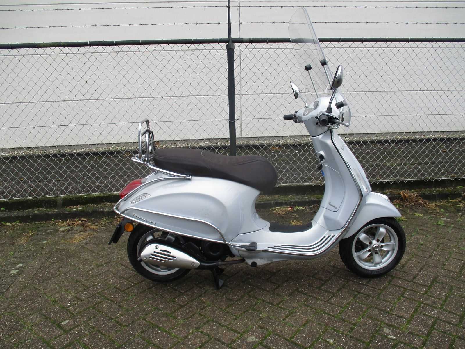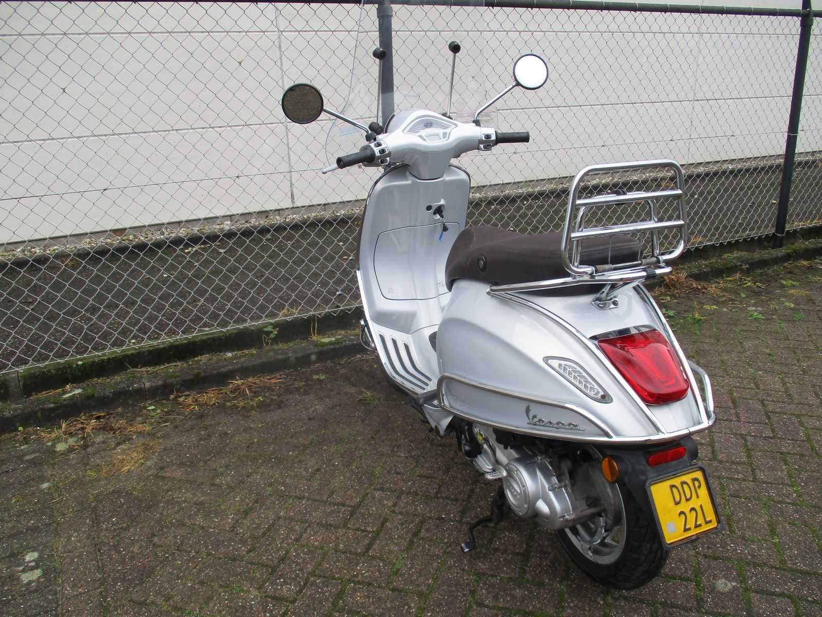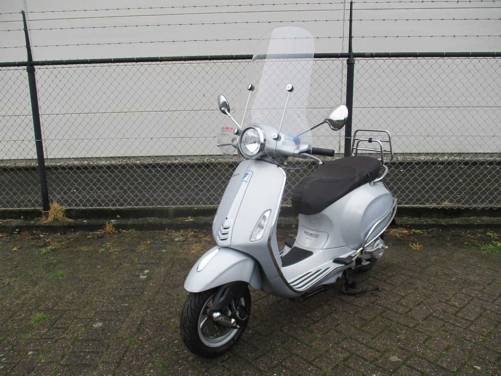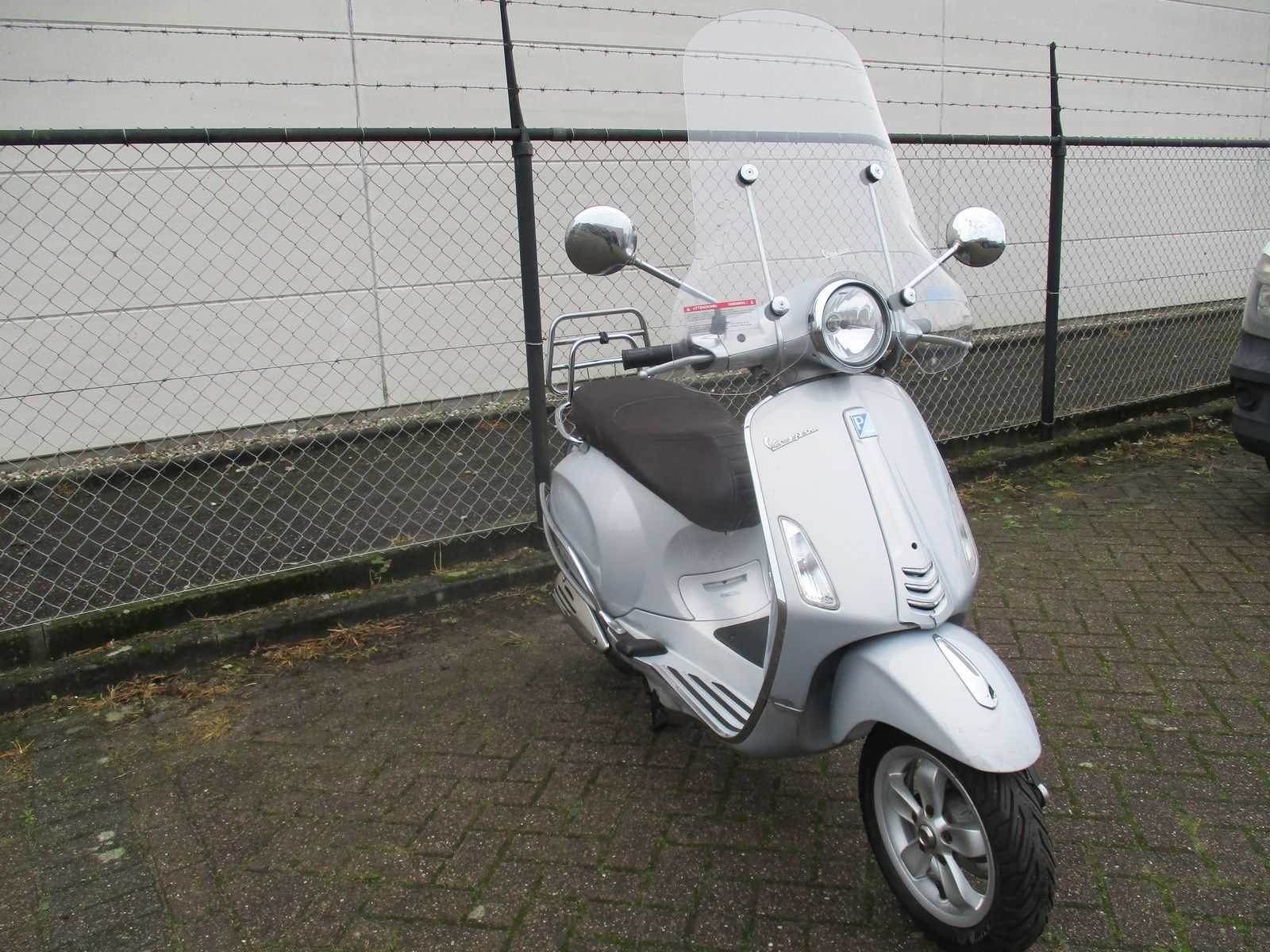 Bromscooter met 2 sleutels inclusief hoog windscherm, achter klaprek en achter zijbeugelset. Motor loopt, zadel sluiting defect. Verdere staat van onderhoud onbekend. Merk: Vespa Model: Bromscooter Type: Primavera Touring 4T Handelsbenaming: VESPA PRIMAVERA Snelheid: 45km/h Kenteken: DDP-22-L Datum eerste toelating: 2015-08-14 Bouwjaar: 14-08-2015 Transmissie: automaat Brandstof: benzine Kleur: silver Afgelezen kilometerstand: 26498km