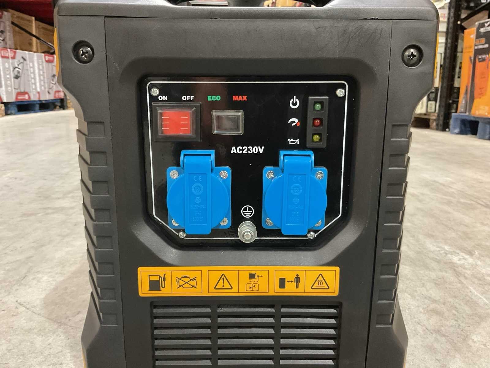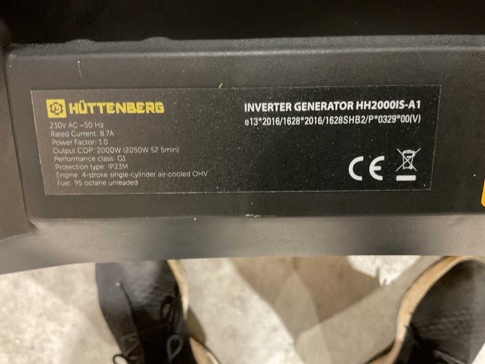 Voorzien van weerbestendige draagbare stille omvormer benzinegenerator; bescherming klasse IP23M; S1 2000W; S2 2050W; nominale spanning 230V; Nominale stroom 8.7A; Frequentie 50Hz; motortype 4 takt luchtgekoeld; cilinderinhoud 79,8cm³; Maximaal motorvermogen 2,4 kW/3,27 pk; Brandstof Benzine; Inhoud brandstoftank 4L; Motorolie 15W-40; Brandstofverbruik bij ⅔ belasting 1L/U; Geluidsvermogensniveau 95dB Merk: Huttenberg Type: Inverter HH2000IS-A1 Bouwjaar: 2025 Benzine: true Machinegewicht: 20kg Totale afmeting L: 480mm Totale afmeting Breedte: 340mm Totale afmeting Hoogte: 480mm