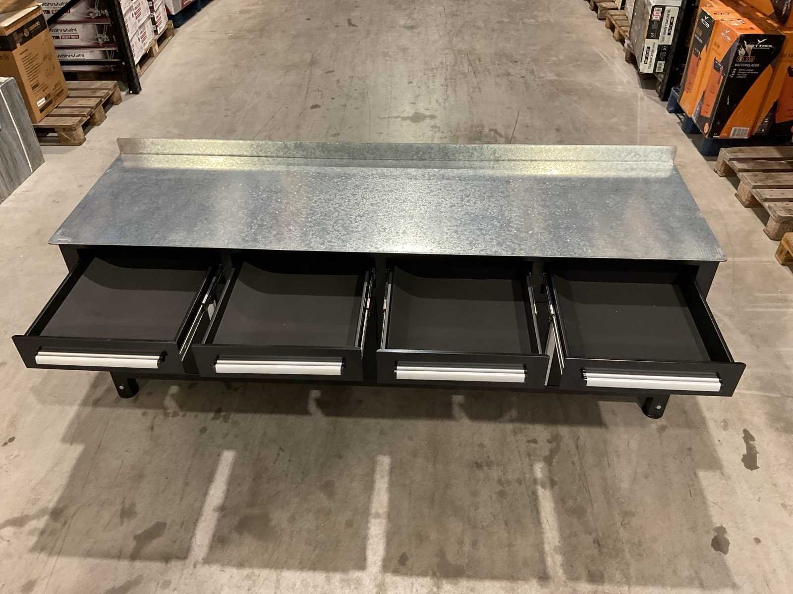 Merk: Stahlworks Model: 4 laden, 4 kastdeuren / In hoogte verstelbaar Product type: Zwarte Breedte: 655mm Lengte: 2210mm Hoogte: 855mm