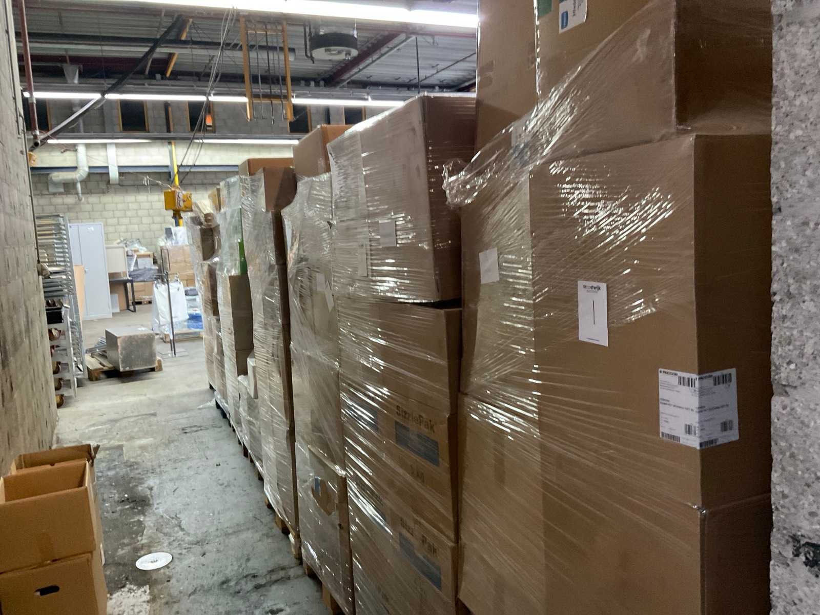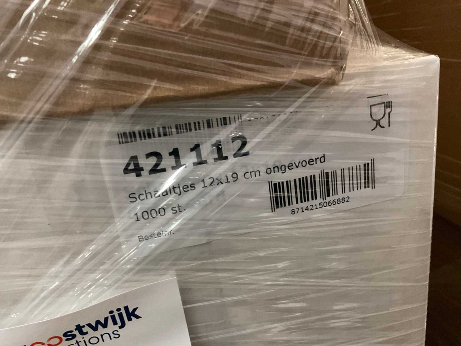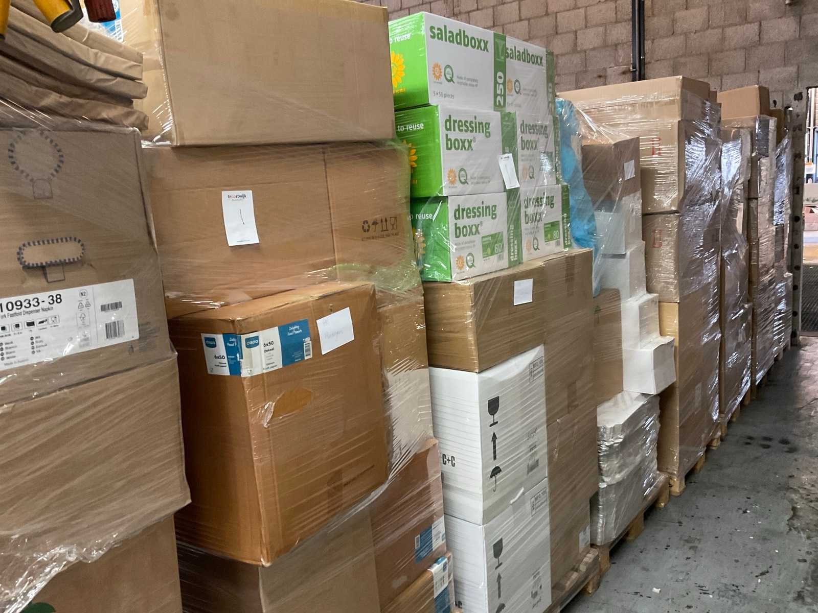 Inhoud op 12 pallets bestaande uit diverse verpakkingsmaterialen, o.a. saladeboxen, schaaltjes en bekers.