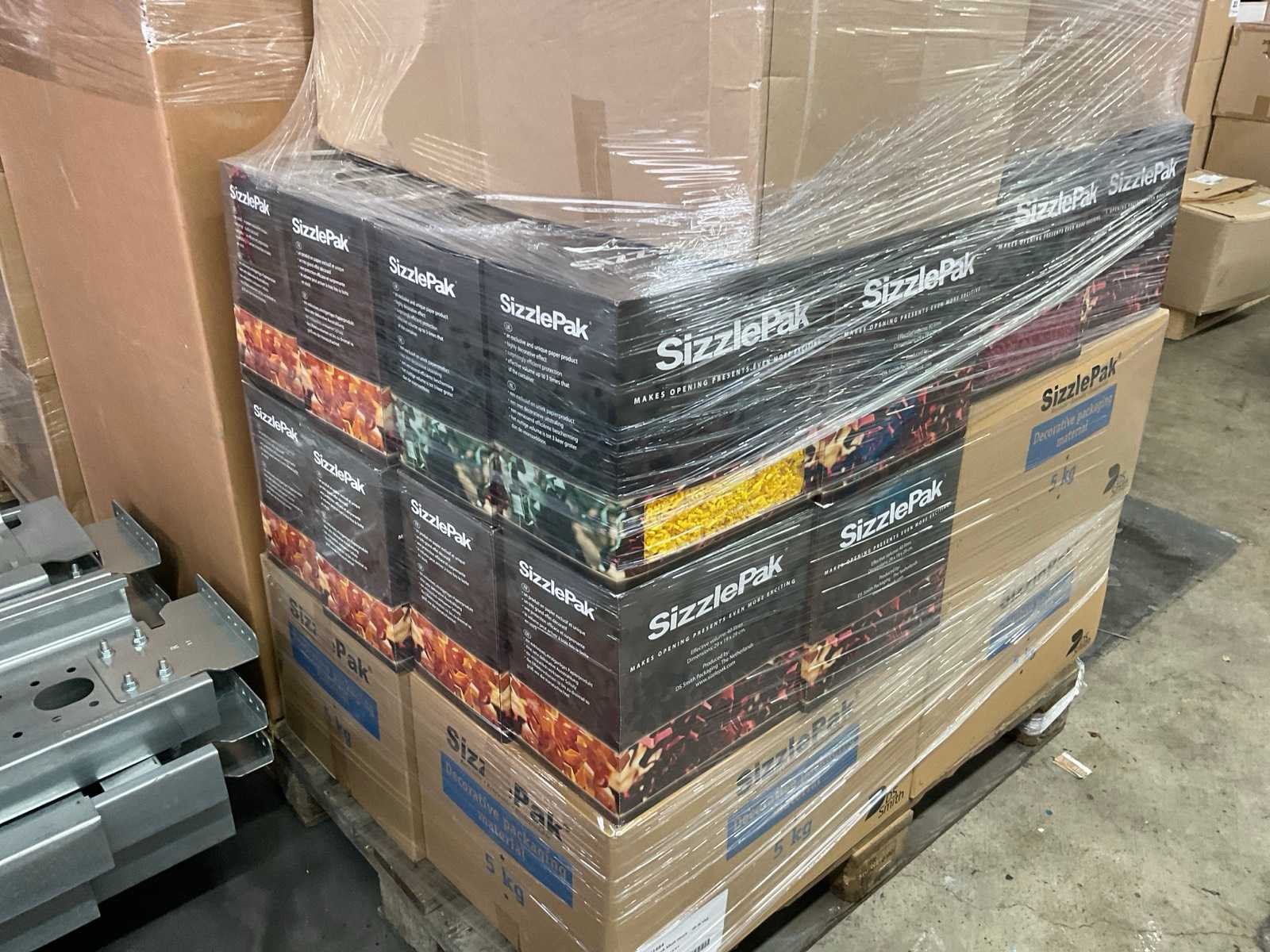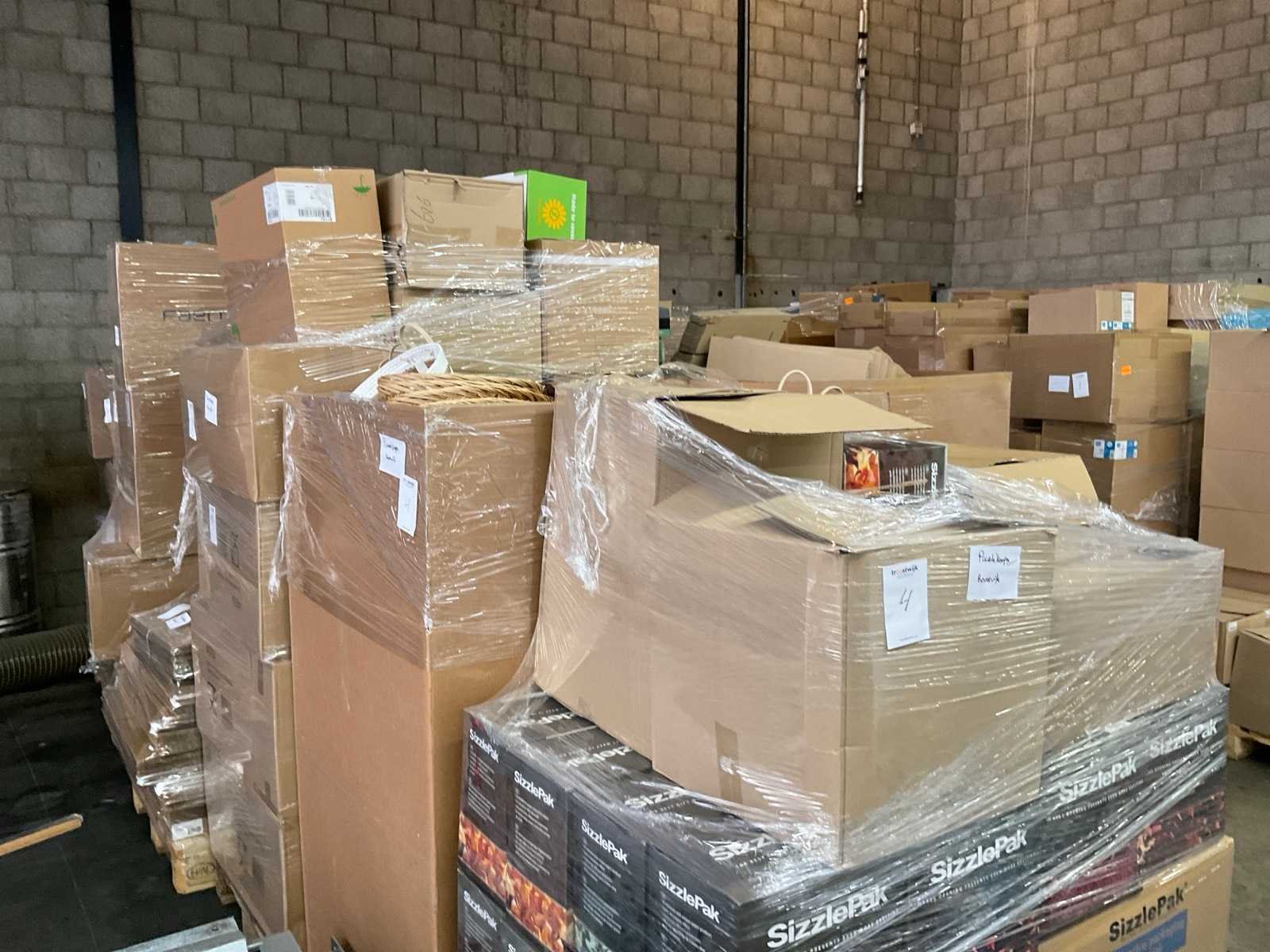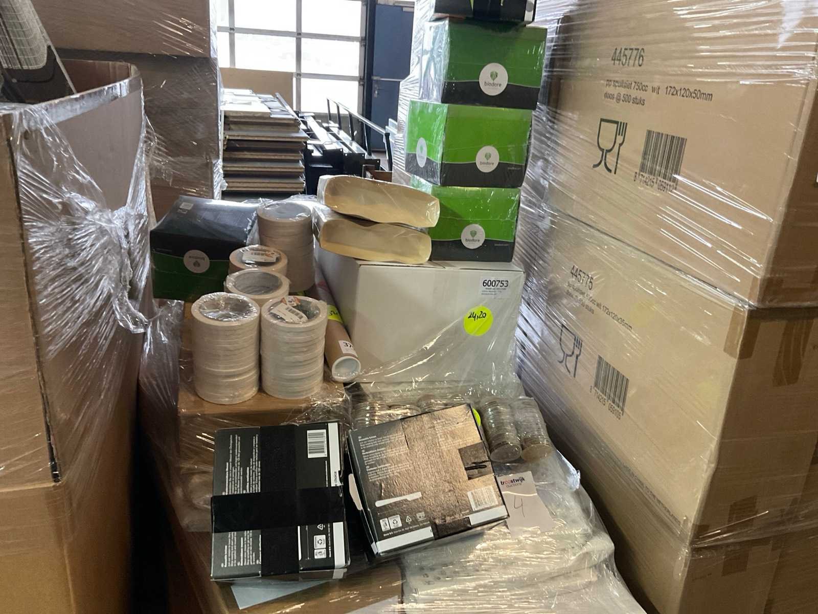 Inhoud op 10 pallets bestaande uit diverse verpakkingsmaterialen, o.a.geschenkverpakkingen, sizzlepack, schaaltjes en dozen.