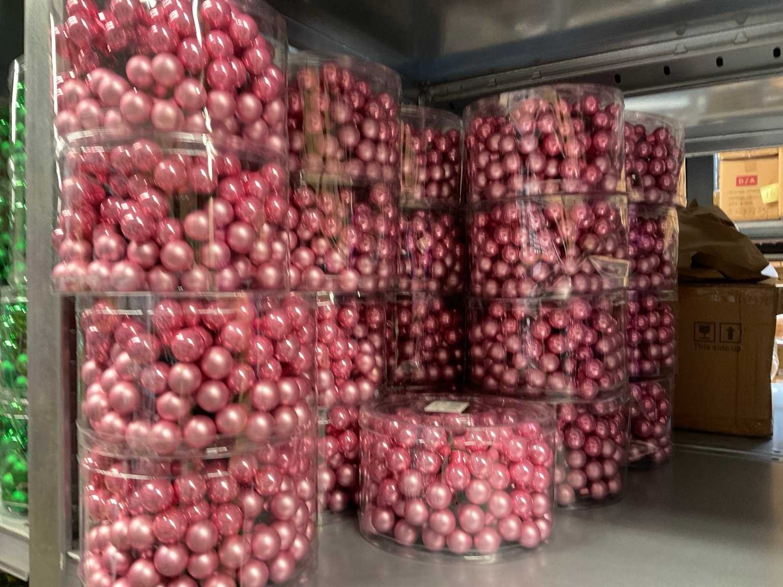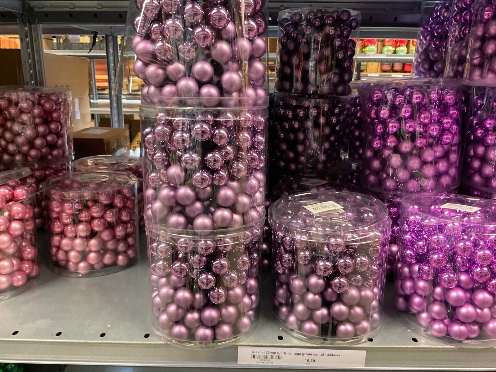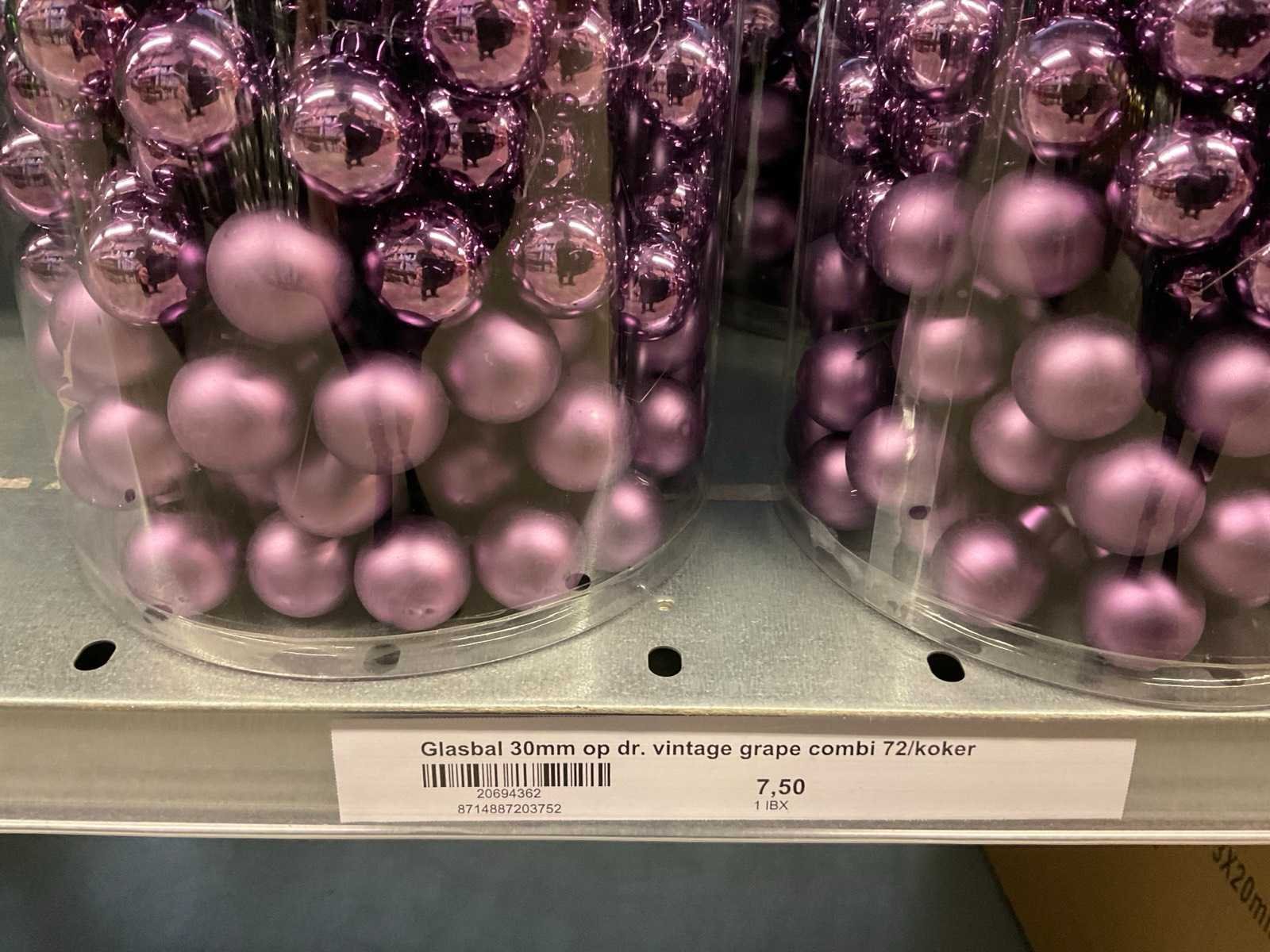 Bestaande uit glazen ballen in dr vintage grape, alles ingepakt op 1 pallet.