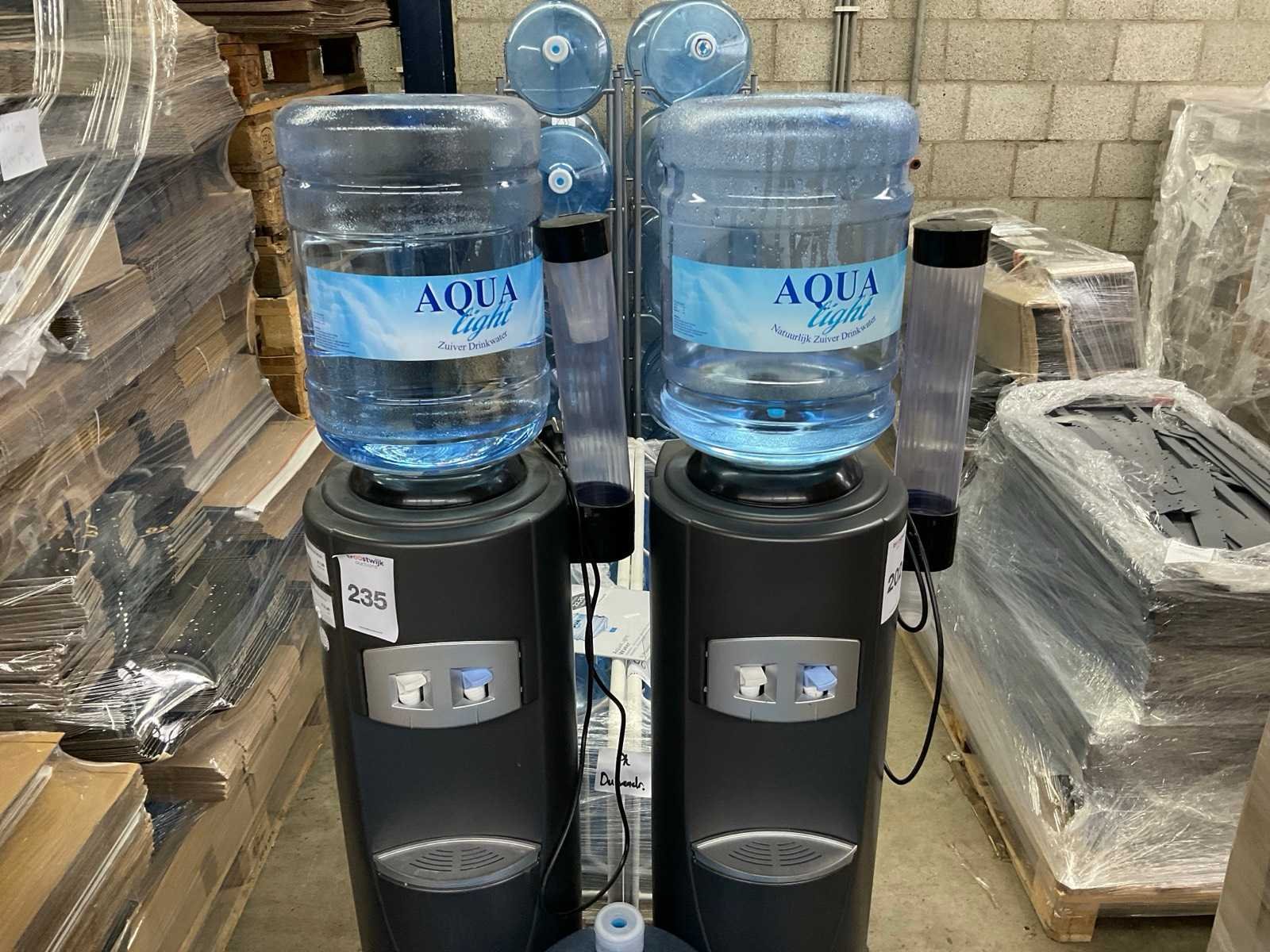 2 x dispenser met 3 vollen en 34 lege vaten Merk: Aqua