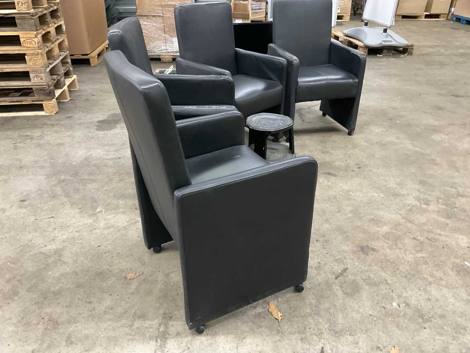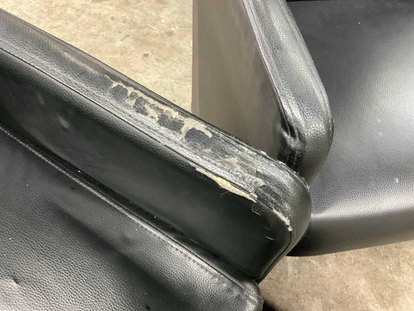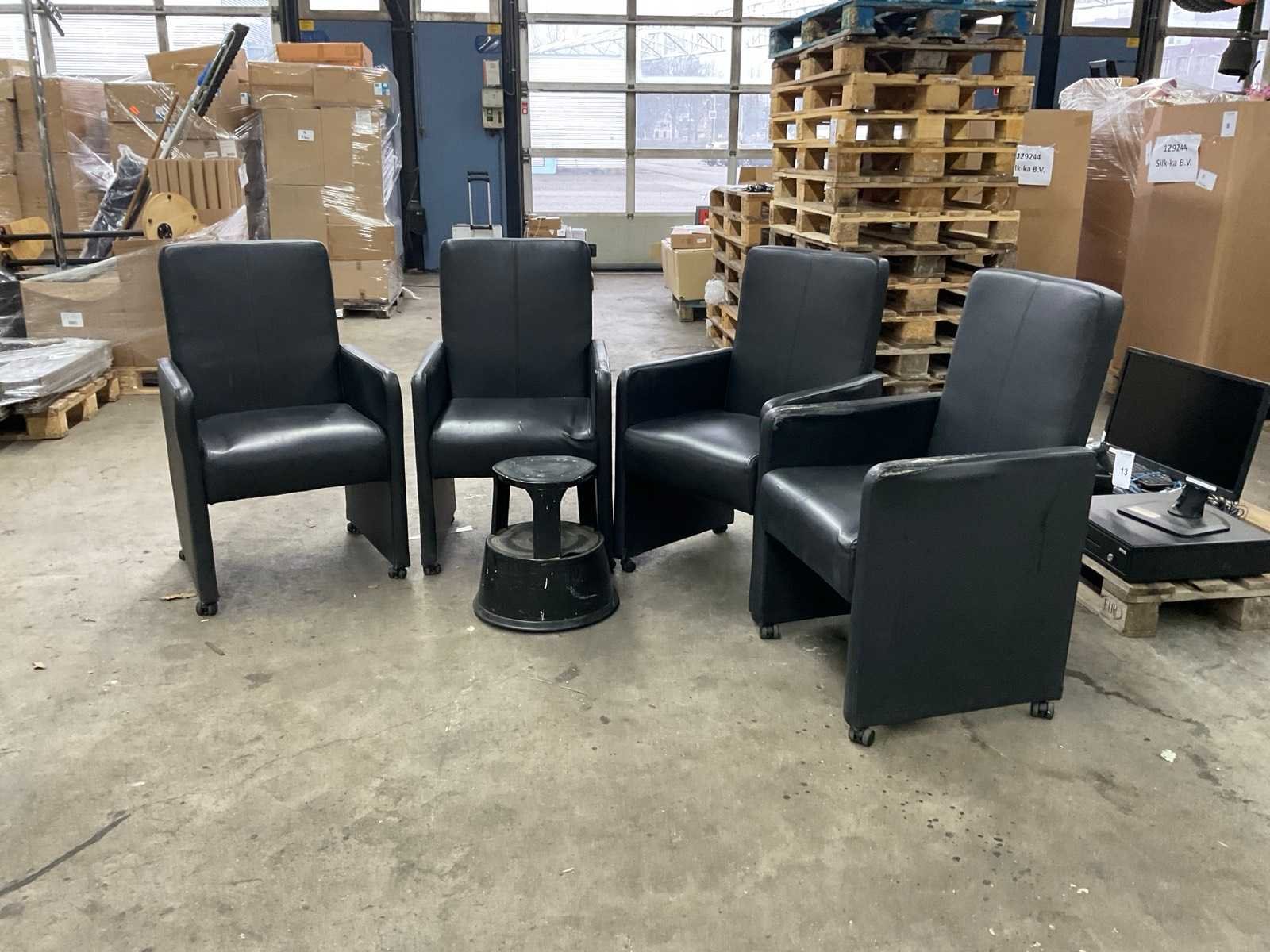 Zwart lederen eetkamerstoelen, bekleding is beschadigd. Met olifantenpoot.