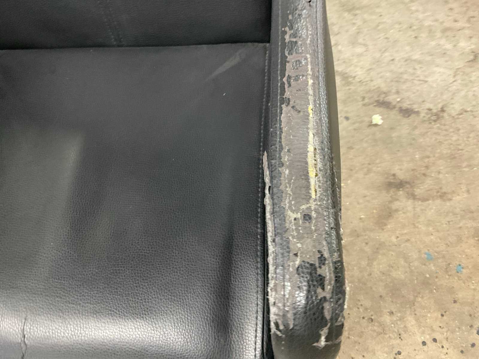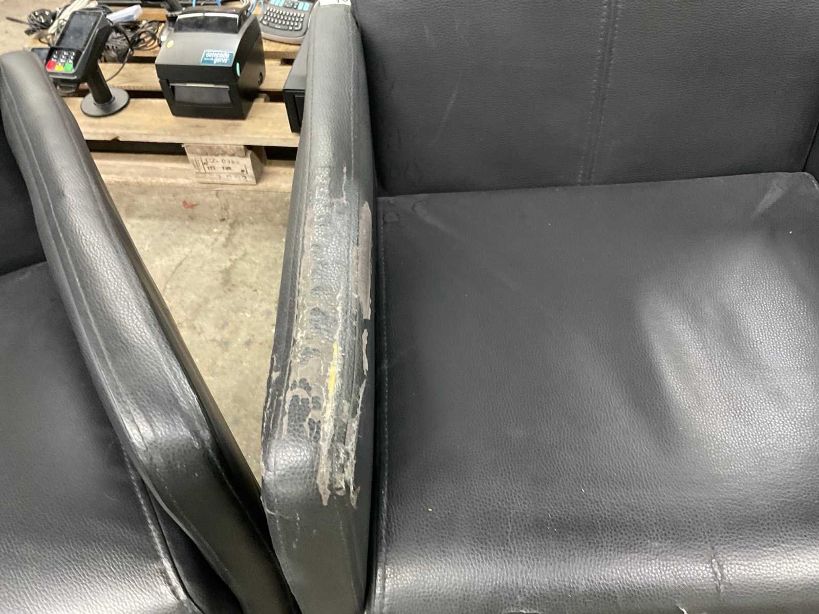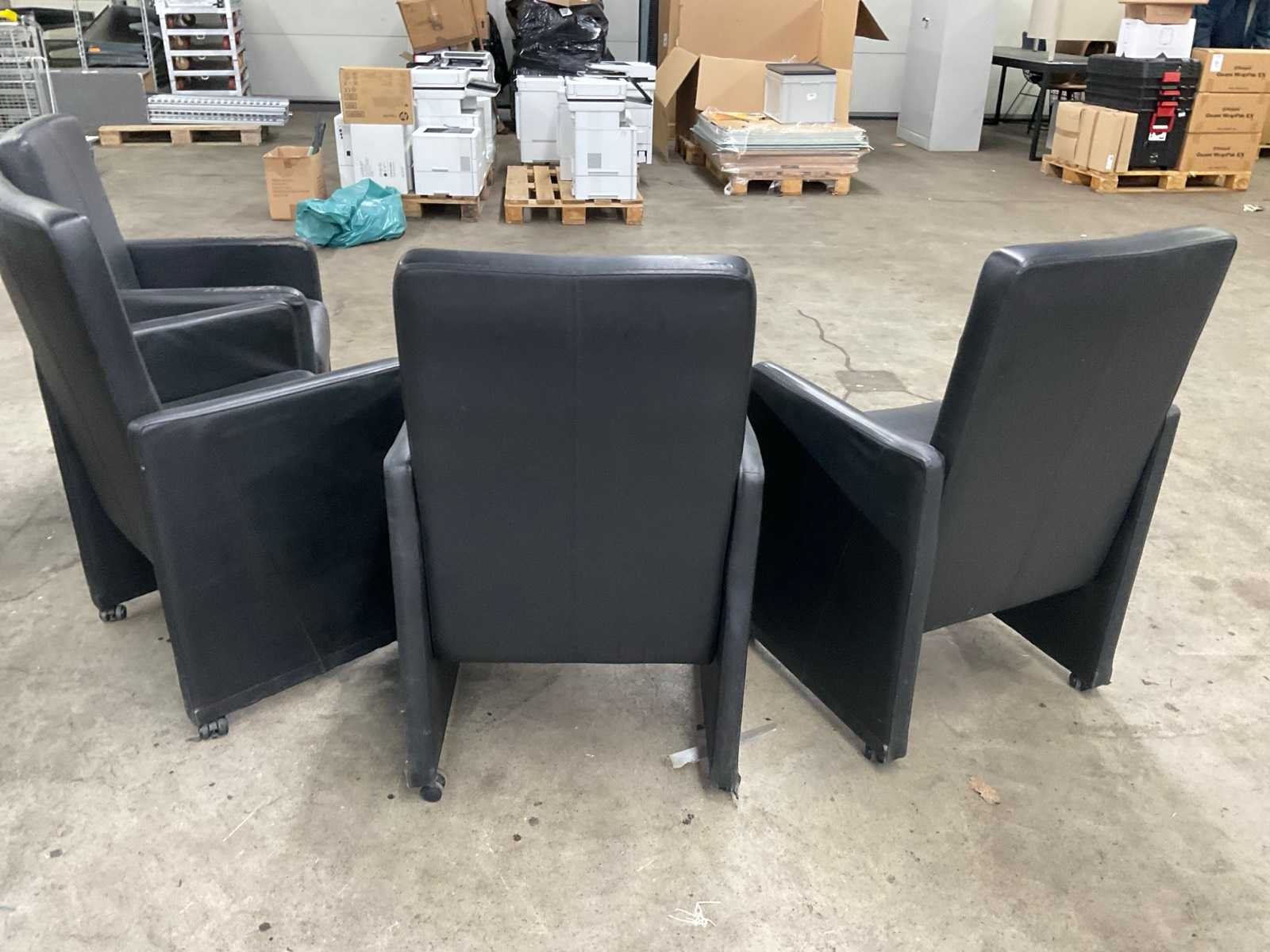 Zwart lederen eetkamerstoelen, bekleding is beschadigd. Met olifantenpoot.