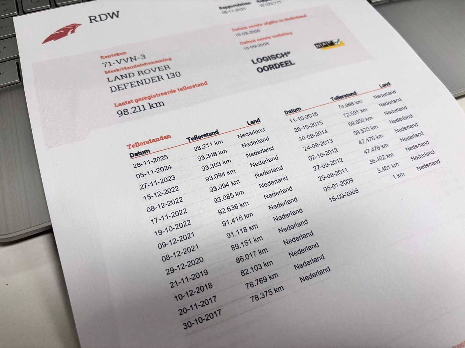 Kenteken: 71-VVN-3 Merk: Land Rover Model: Defender Type: 2.4 TD 130" S Cr.Cab Bouwjaar: 2008 Afgelezen kilometerstand: 98311km Cilinderinhoud: 2402cc Vermogen (kW): 90kW Brandstof: Diesel Laadvermogen: 1510kg NAP status: Logisch Datum eerste toelating: 2008-09-16 Datum eerste toelating (NL): 2008-09-16 APK vervaldatum: 2025-12-29 Vermogen (pk): 122hp Aandrijving: AWD Aantal zitplaatsen: 5 Kleur: zwart Transmissie: Handgeschakeld Emissieklasse: 4 Aantal deuren: 4 Ledig gewicht: 1990kg Bruto BPM (NL): 15352€ Aantal cilinders: 4 Carrosserie: pick-up truck Nationaliteit documenten: NL Carfax Link: https://was.carfax.eu/v0/api/ccdid/5100016408/svc/201/vinreg/71VVN3/checksum/eyJhbGciOiJIUzI1NiIsInR5cCI6IkpXVCJ9.eyJleHAiOjE3NzA2MzkzODJ9.Uohd1jAAK-6irQhAgU-UJVnD76NsqEI5UyY2sULbVWA
