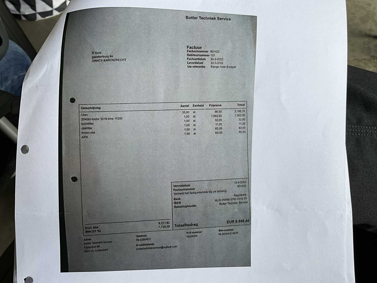 Voorzien van nieuwe motor in 2022 bij een kilometerstand van 240.000 km. Navigatie,Airconditioning, Panoramadak, Stuurbekrachtiging, Radio-Cd-speler, Electrische ramen, Electrische spiegels Centrale vergrendeling, Lederen bekleding,Lichtmetalen velgen, Elektrische stoelverstelling met memory (links en rechts) Kenteken: JF-948-S Merk: Land Rover Model: Range Rover Evoque Afgelezen kilometerstand: 293712km Cilinderinhoud: 1999cc Vermogen (kW): 110kW Brandstof: diesel Chassisnummer: SALVB2DN9GH127402 NAP status: Logisch Datum eerste toelating: 2016-04-05 Datum eerste toelating (NL): 2016-04-05 APK vervaldatum: 2025-05-10 Vermogen (pk): 150hp Aantal zitplaatsen: 5 Maximaal trekgewicht ongeremd: 750kg Maximaal trekgewicht geremd: 1500kg Kleur: wit Transmissie: Handgeschakeld Emissieklasse: 6 Aantal deuren: 5 Aantal sleutels: 1 Ledig gewicht: 1670kg Bruto BPM (NL): 7355€ Rest BPM: 1673€ Aantal cilinders: 4 Carrosserie: stationwagen Carfax Link: https://was.carfax.eu/v0/api/ccdid/5100016408/svc/201/vinreg/JF948S/checksum/eyJhbGciOiJIUzI1NiIsInR5cCI6IkpXVCJ9.eyJleHAiOjE3MjI4NjM1NTZ9.Kx4C15siw1U2YtrynXSLvul8acSz1_nBx1AOZwAUhW8 Self drive export possible : true Navigatie: true Leder bekleed: true