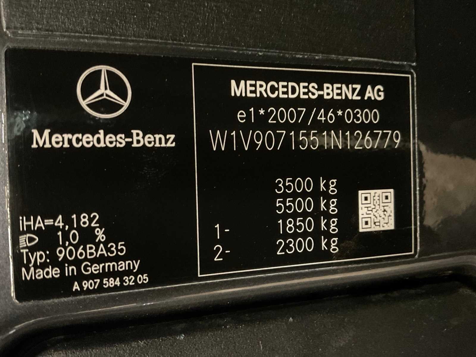 Voorzien van onder andere: elektrische ramen en spiegels, automatische verlichting, radio met usb aansluiting, start stop systeem, automatische airco, chassislengte voor montage bak circa 415 cm. Kenteken: VJB-16-G Merk: Mercedes-Benz Model: Sprinter chassis Bouwjaar: 2021 Chassisnummer: W1V9071551N126779 Cilinderinhoud: 2143cc Vermogen (kW): 105kW Brandstof: Diesel Datum eerste toelating: 2021-01-13 Datum eerste toelating (NL): 2021-01-13 APK vervaldatum: 2024-01-13 Transmissie: Automaat Aantal zitplaatsen: 2 Kleur: Grijs Nationaliteit documenten: NL Bruto BPM (NL): 14404 Rest BPM: 3997 Aantal deuren: 2 Aantal sleutels: 1 Ledig gewicht: 2912kg Laadvermogen: 588kg Vermogen (pk): 143 Aantal cilinders: 4 Velgmaat: 16 inch Carrosserie: gesloten opbouw Emissieklasse: 6 Startinformatie: Niet Maximaal trekgewicht ongeremd: 750 No self drive export!: true