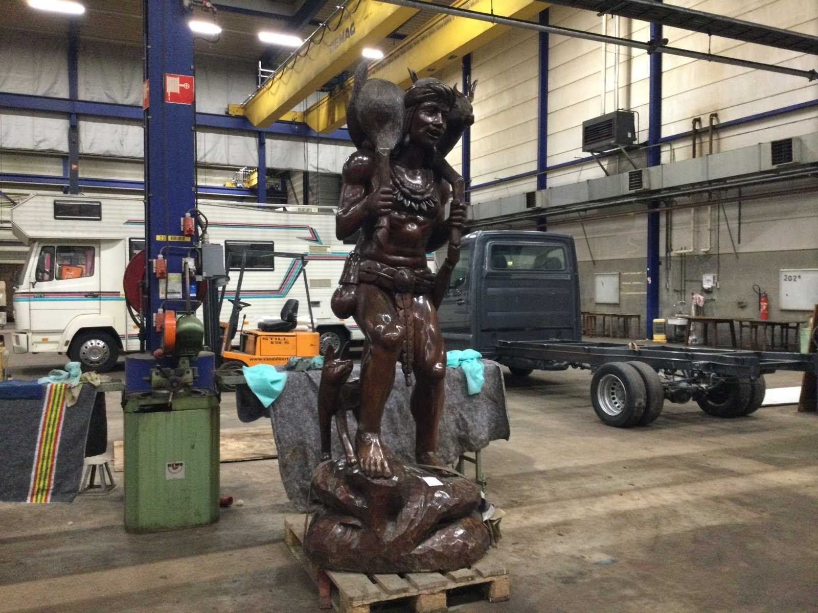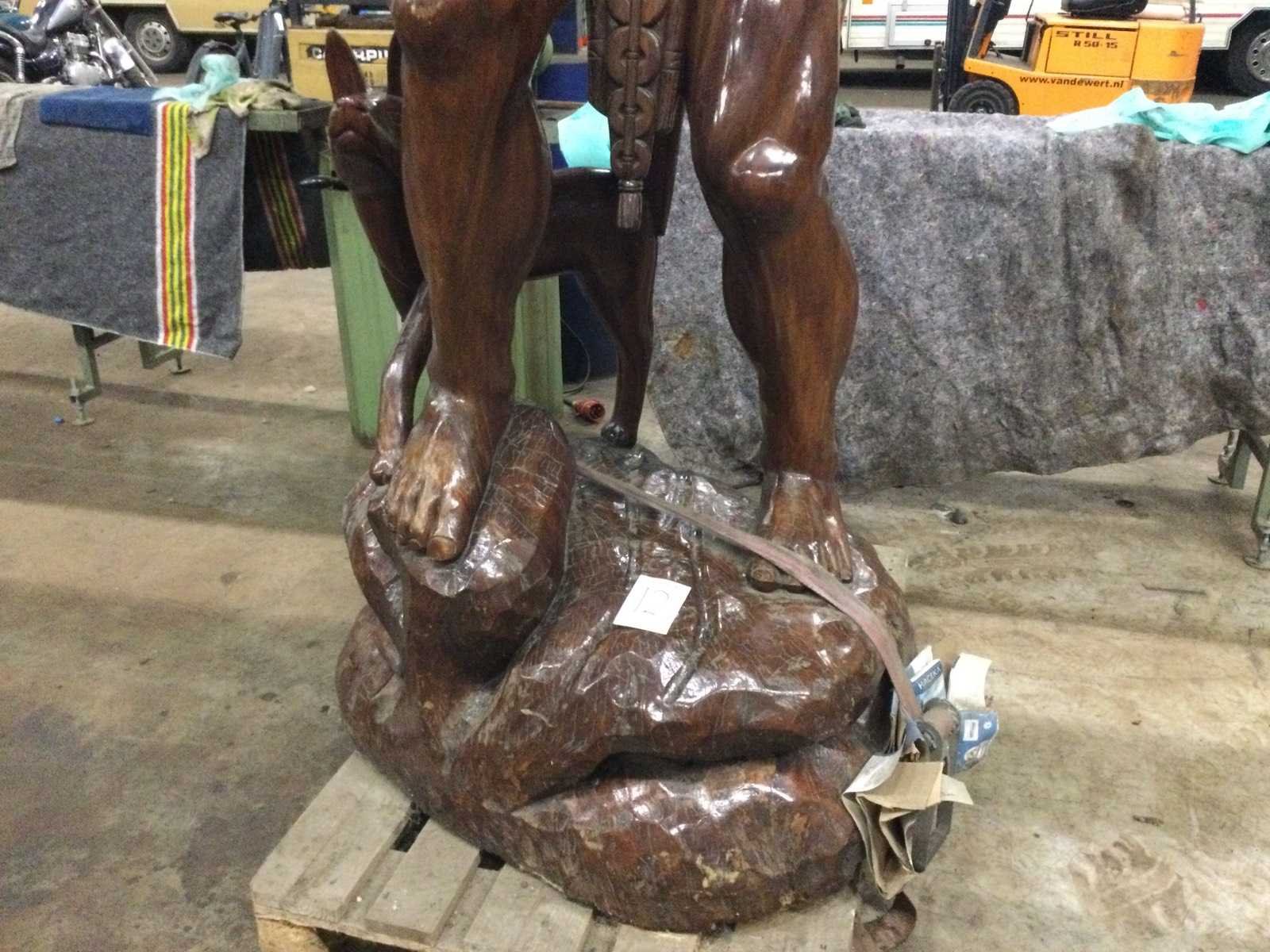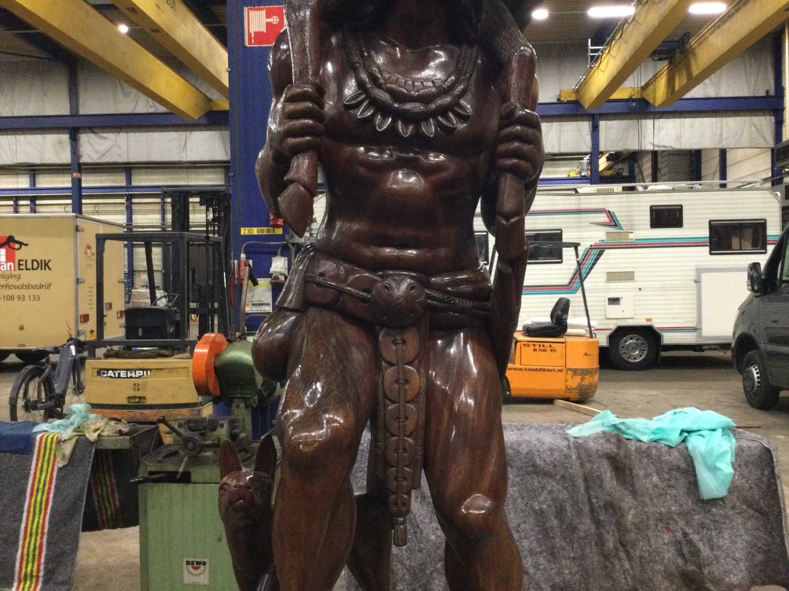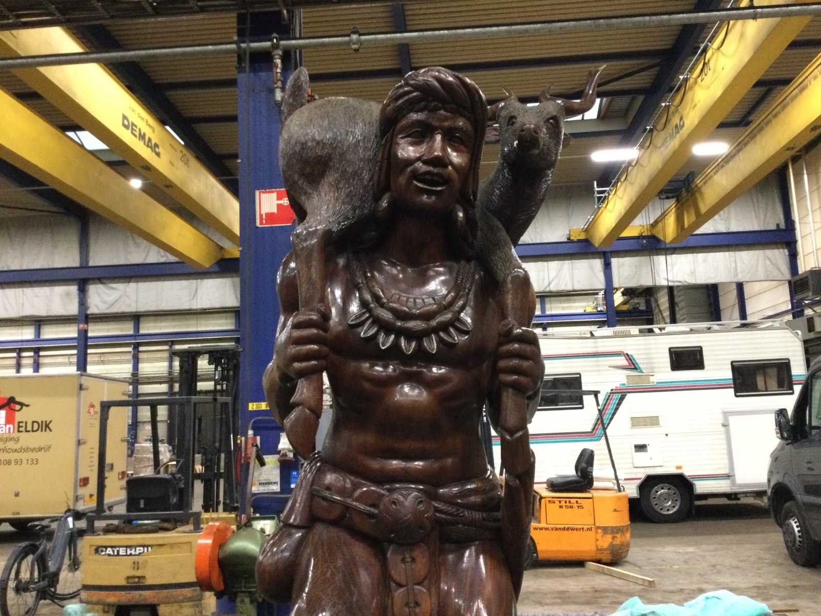 Gedetailleerd, massief hout, let op is zwaar ! Lengte: 80 Breedte: 100 Hoogte: 255 Materiaal: Hout