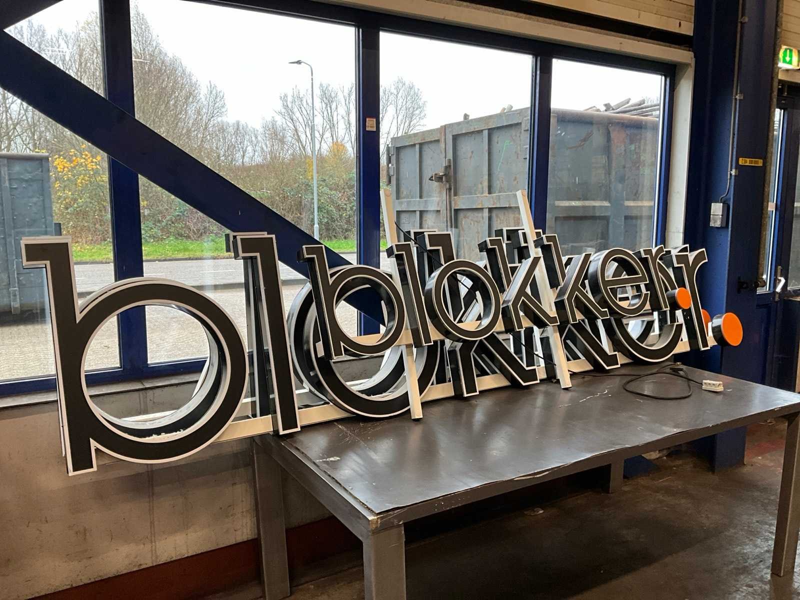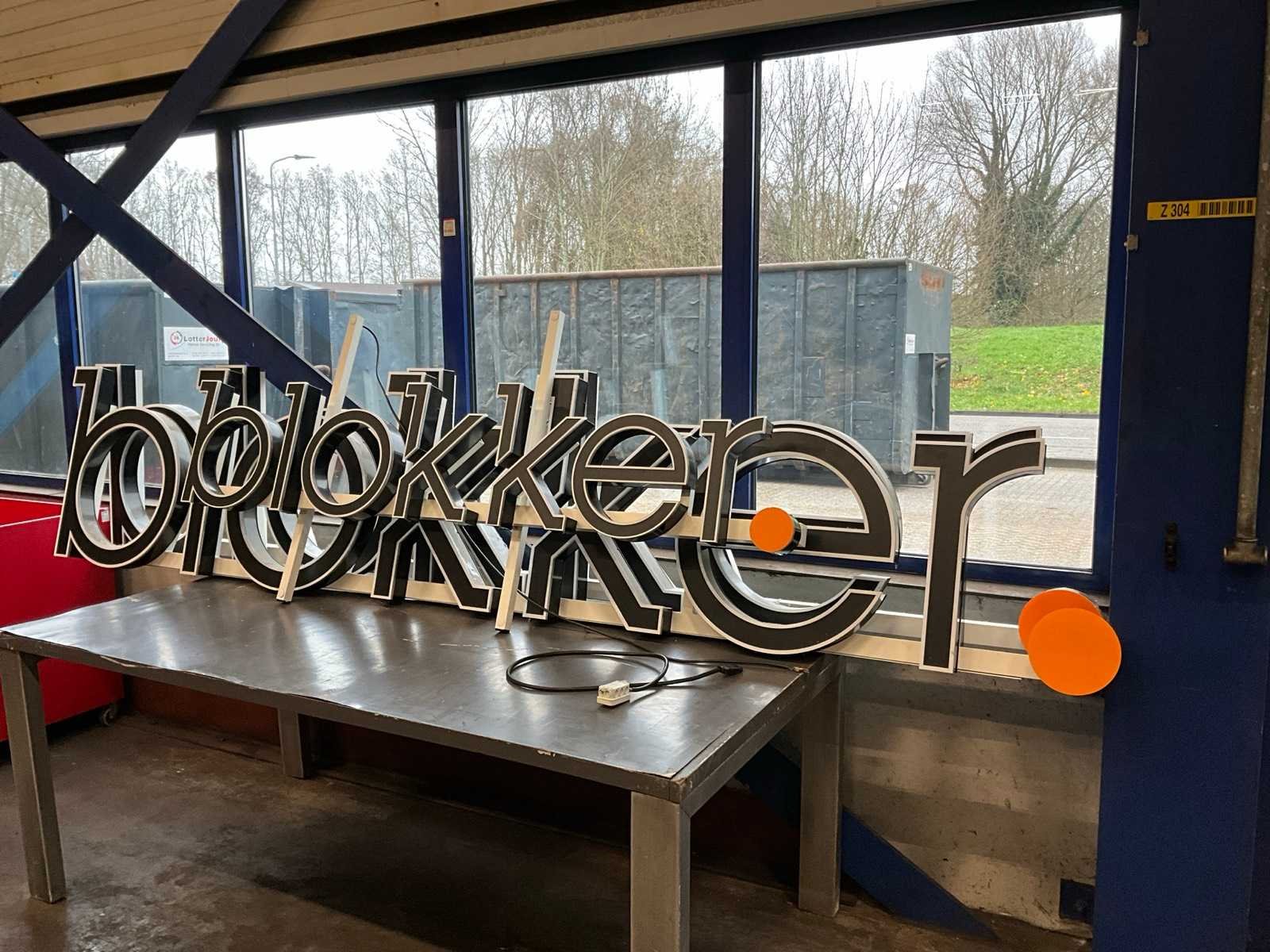 Opschift “blokker”; waarvan 2x afmeting 3450x700 mm; waarvan 1x afmeting 1950x400 mm;