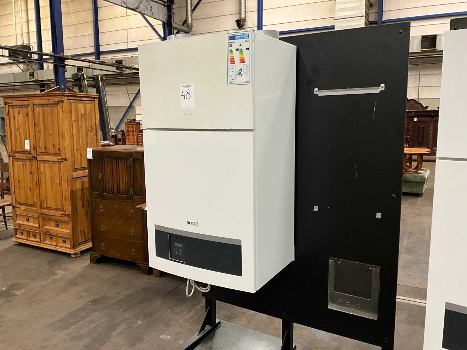 Gemonteerd aan verrijdbare wand; totaal afmeting 1200x800x1950 mm, dit betreft een nieuw demo apparaat met lichte transport beschadiging Merk: Nefit Product type: VA/W 1.4C