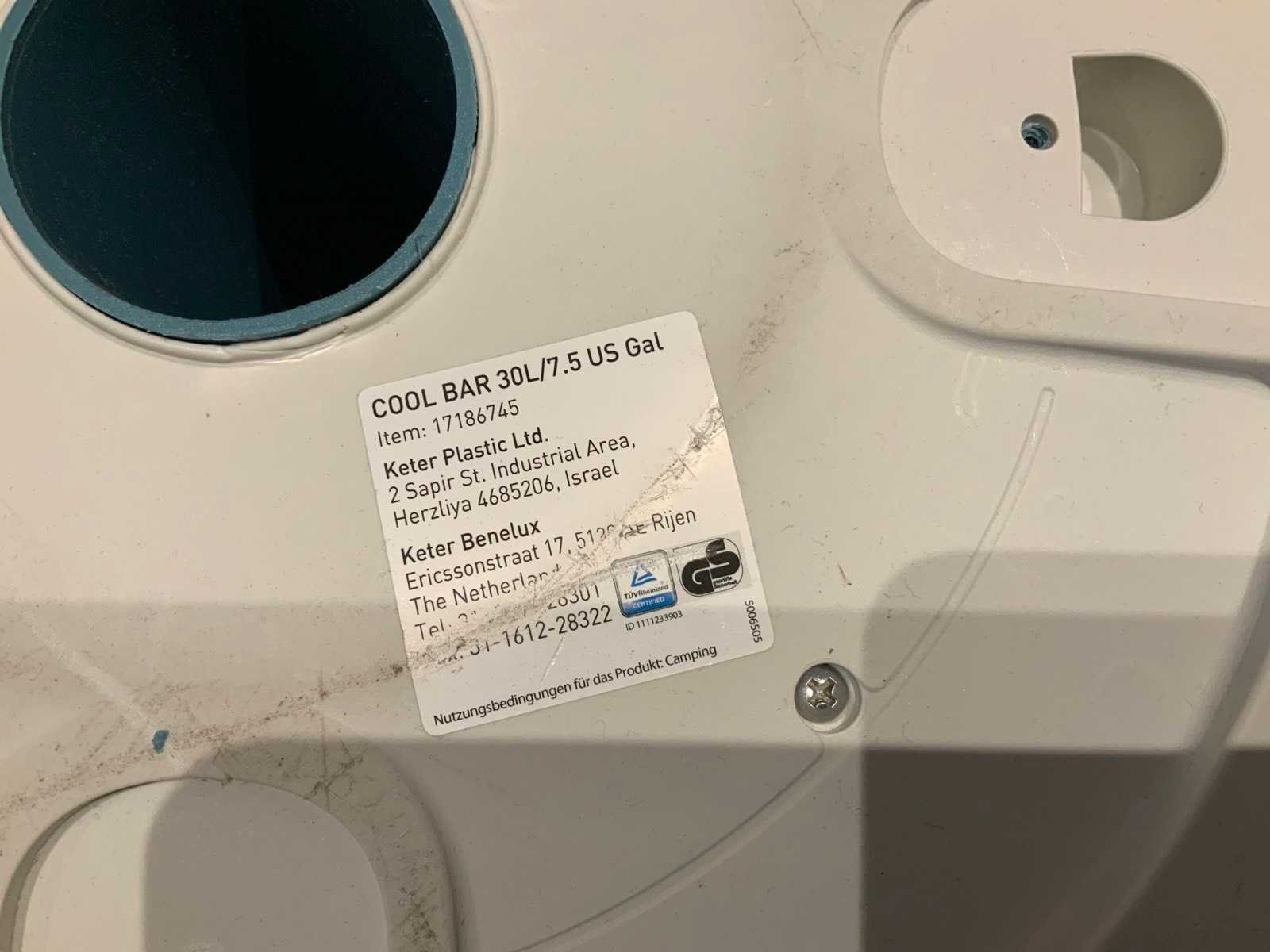 Multifunctionele coolbar 30 liter; Merk: Keter Kleur: Wit Lengte: 50cm Breedte: 50cm Hoogte: 67.5cm