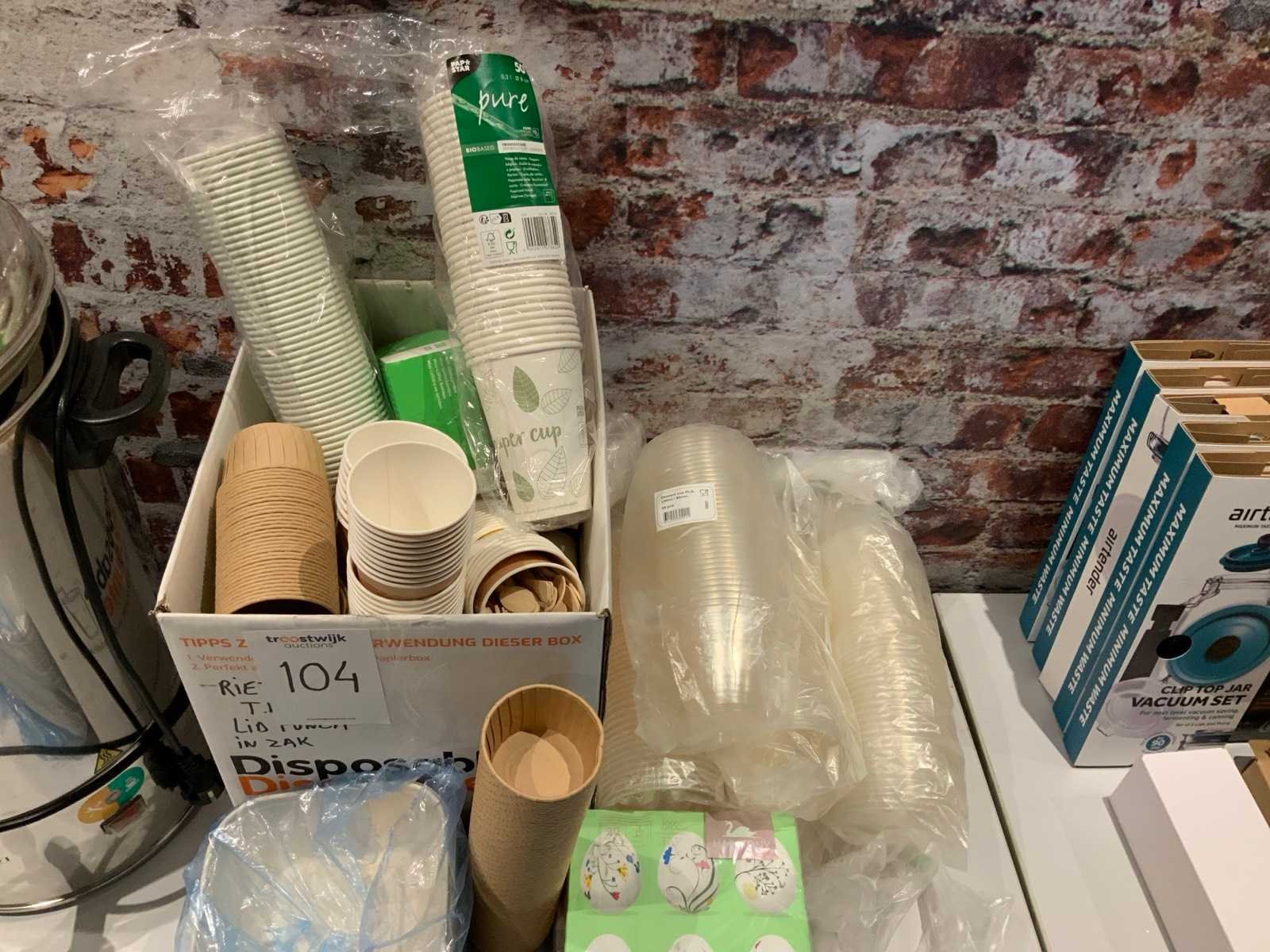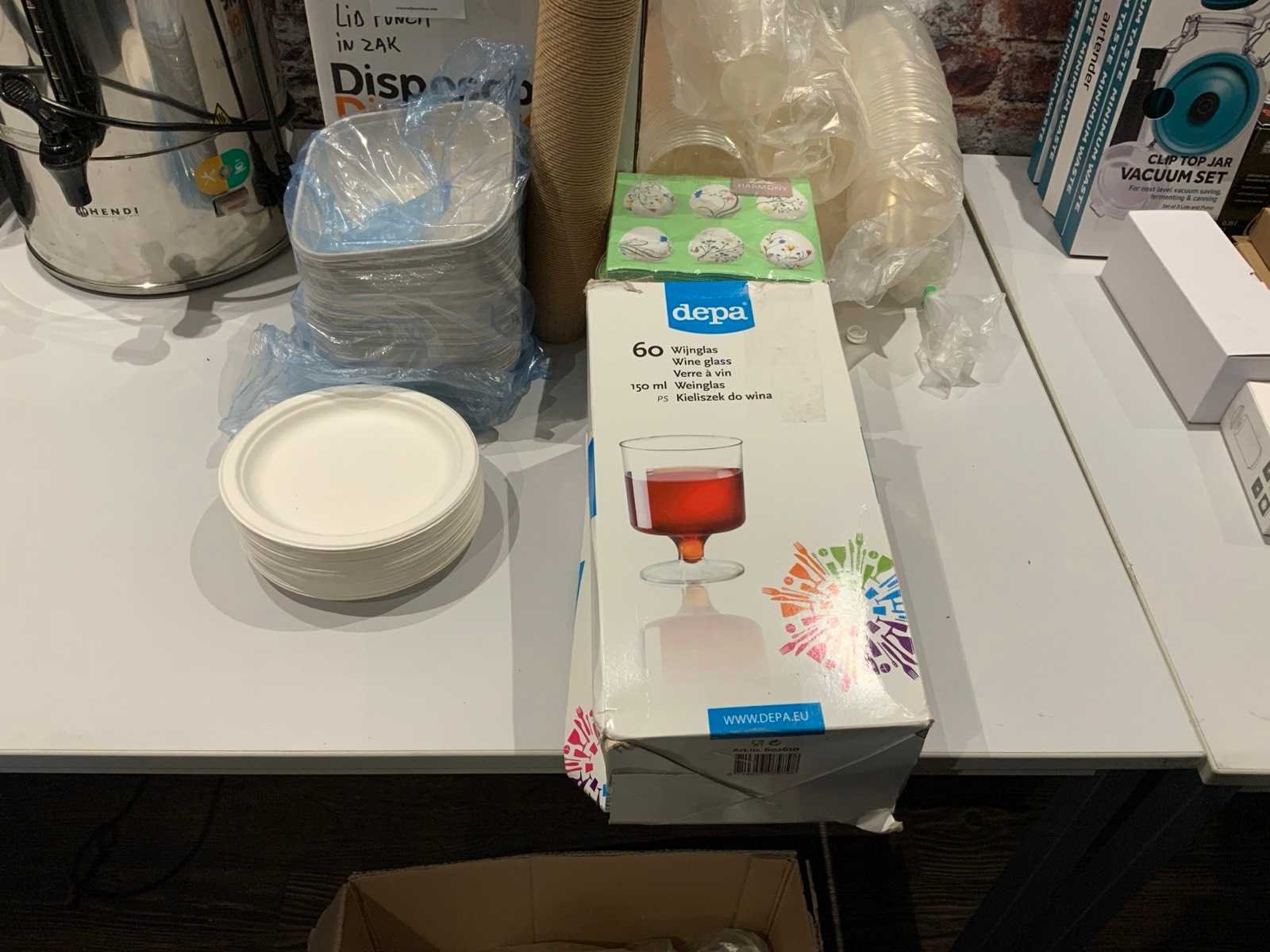 Bevat o.a. Bekers, bordjes, wijnglazen, dessert bakjes.