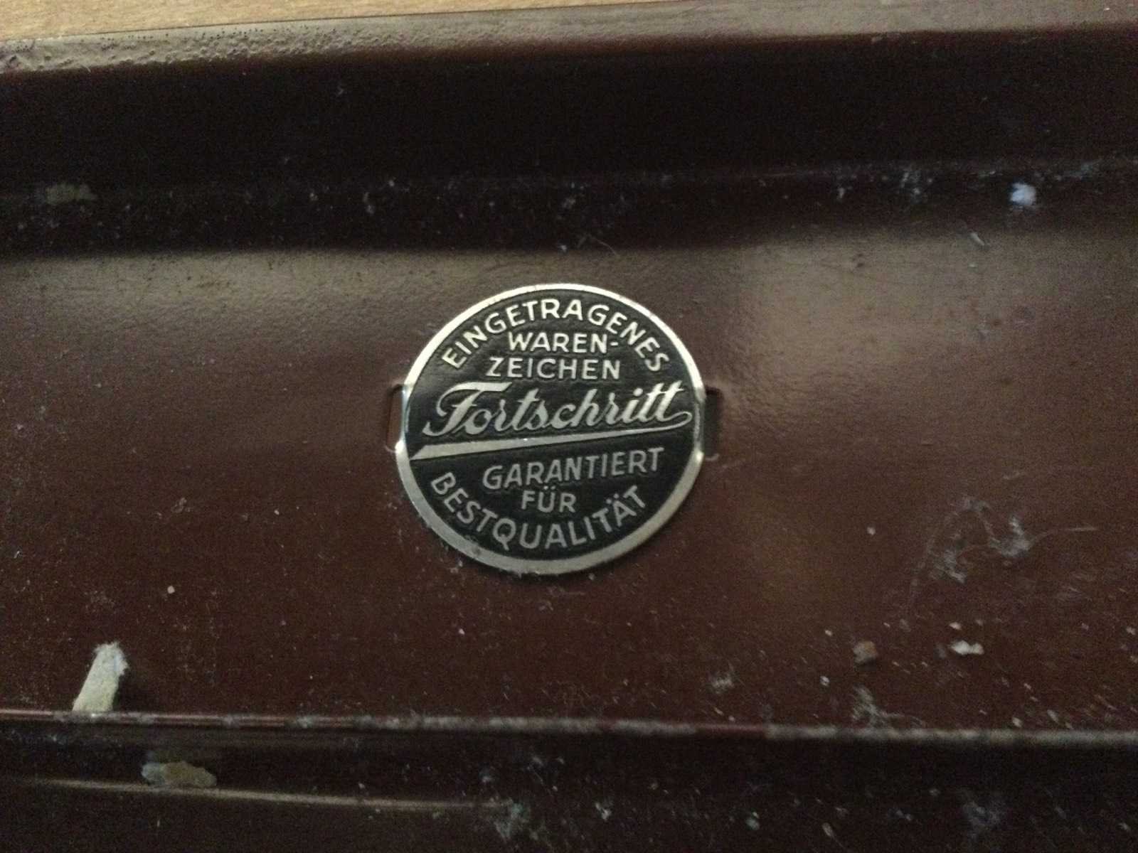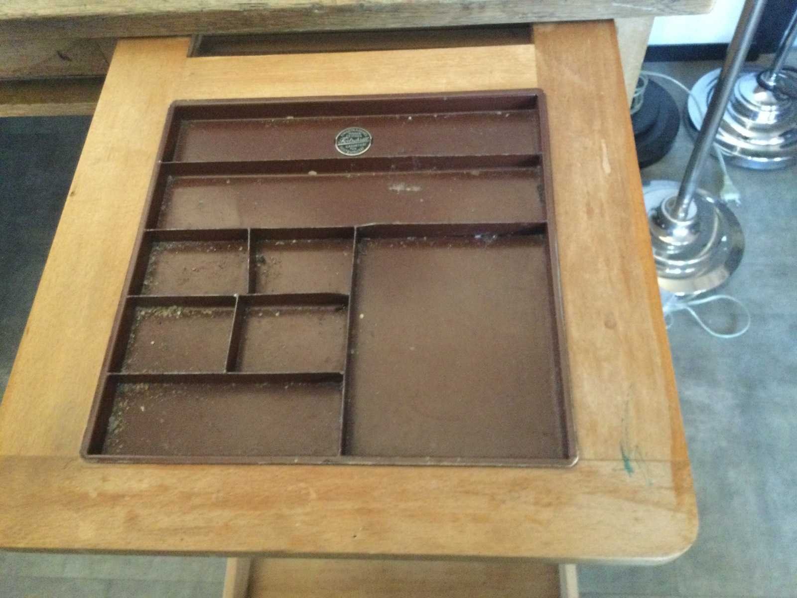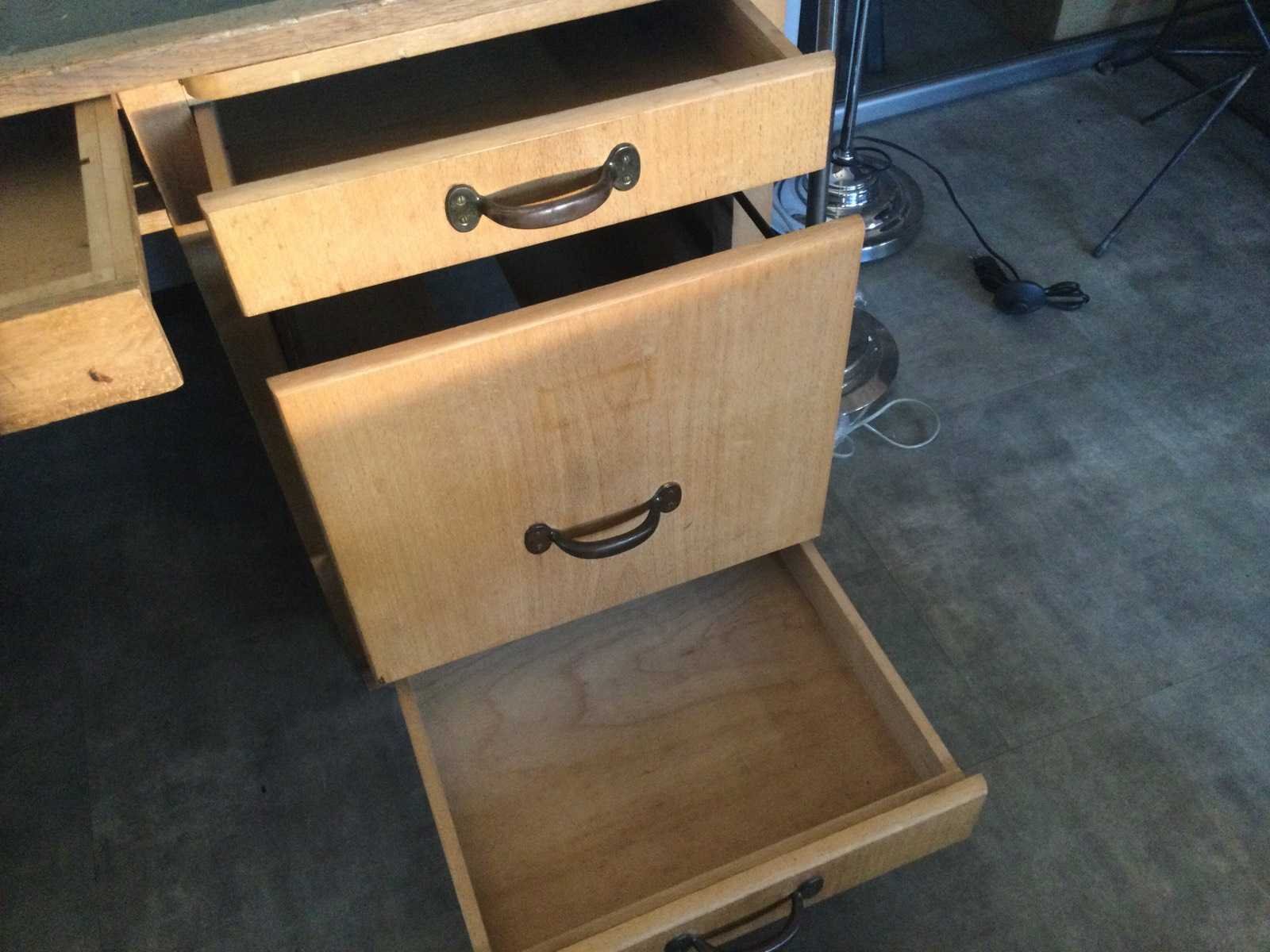 Komt uit kantoor concentratiekamp Duitsland, 2e Wereldoorlog, 6 laden, 1 opberglade, 1 schrijflade Merk: Fortschritt Lengte: 156cm Breedte: 78cm Hoogte: 78cm Materiaal: Hout