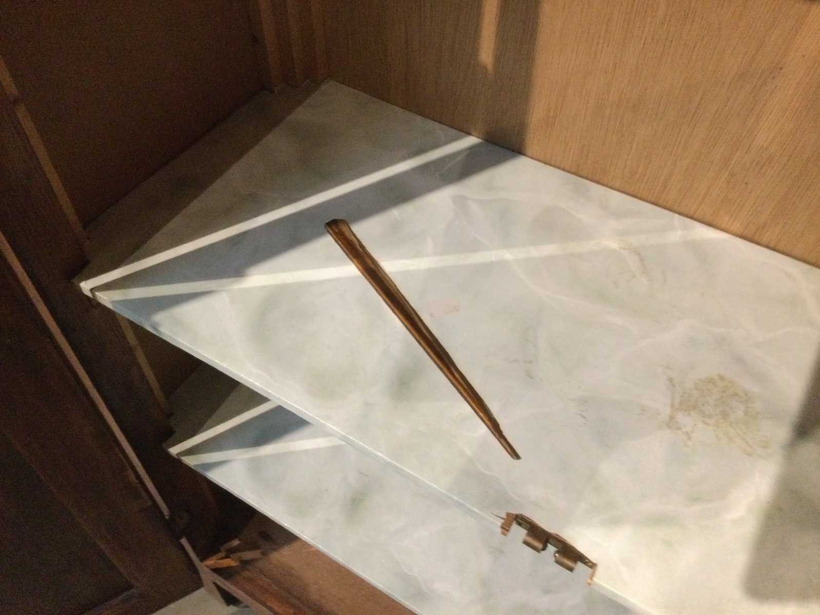 Beschadigd onder, onderdeel zit erbij Materiaal: Hout Lengte: 82cm Breedte: 35cm Hoogte: 125cm