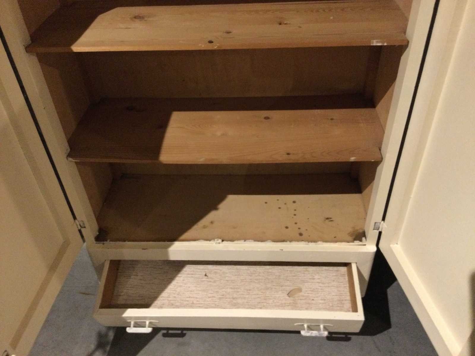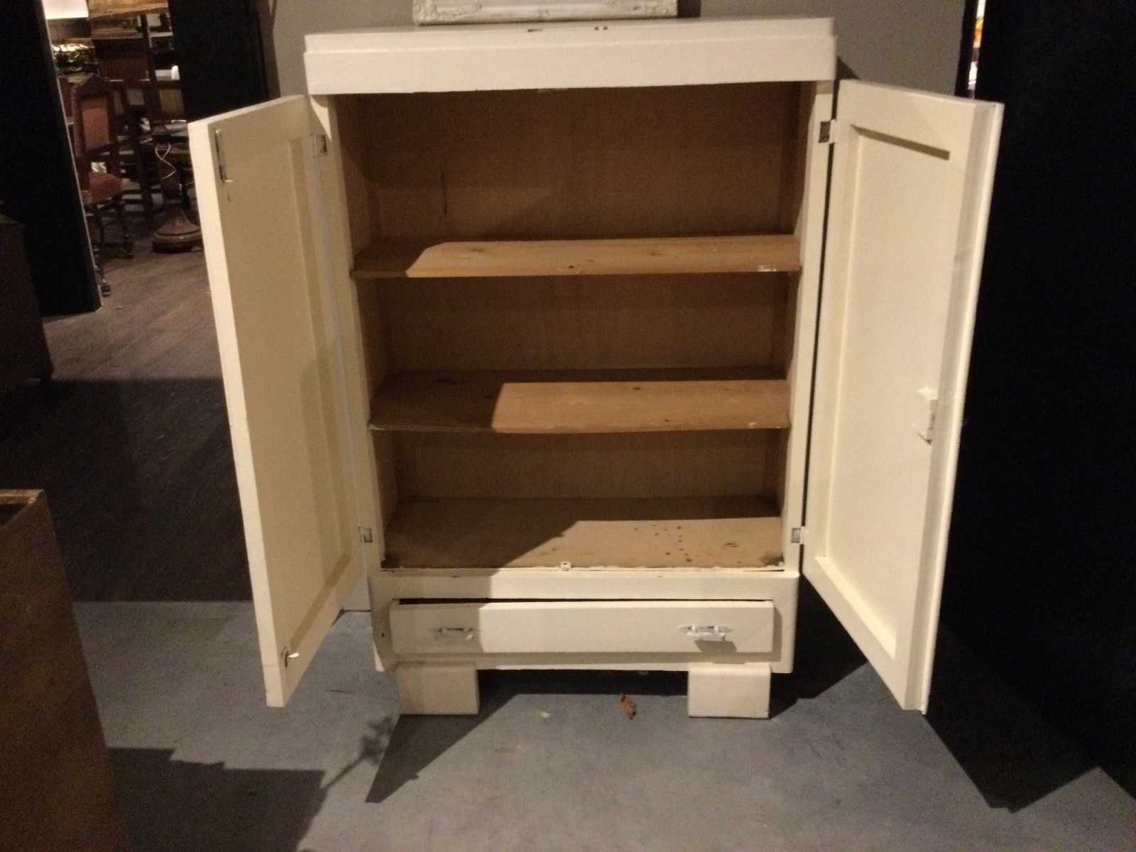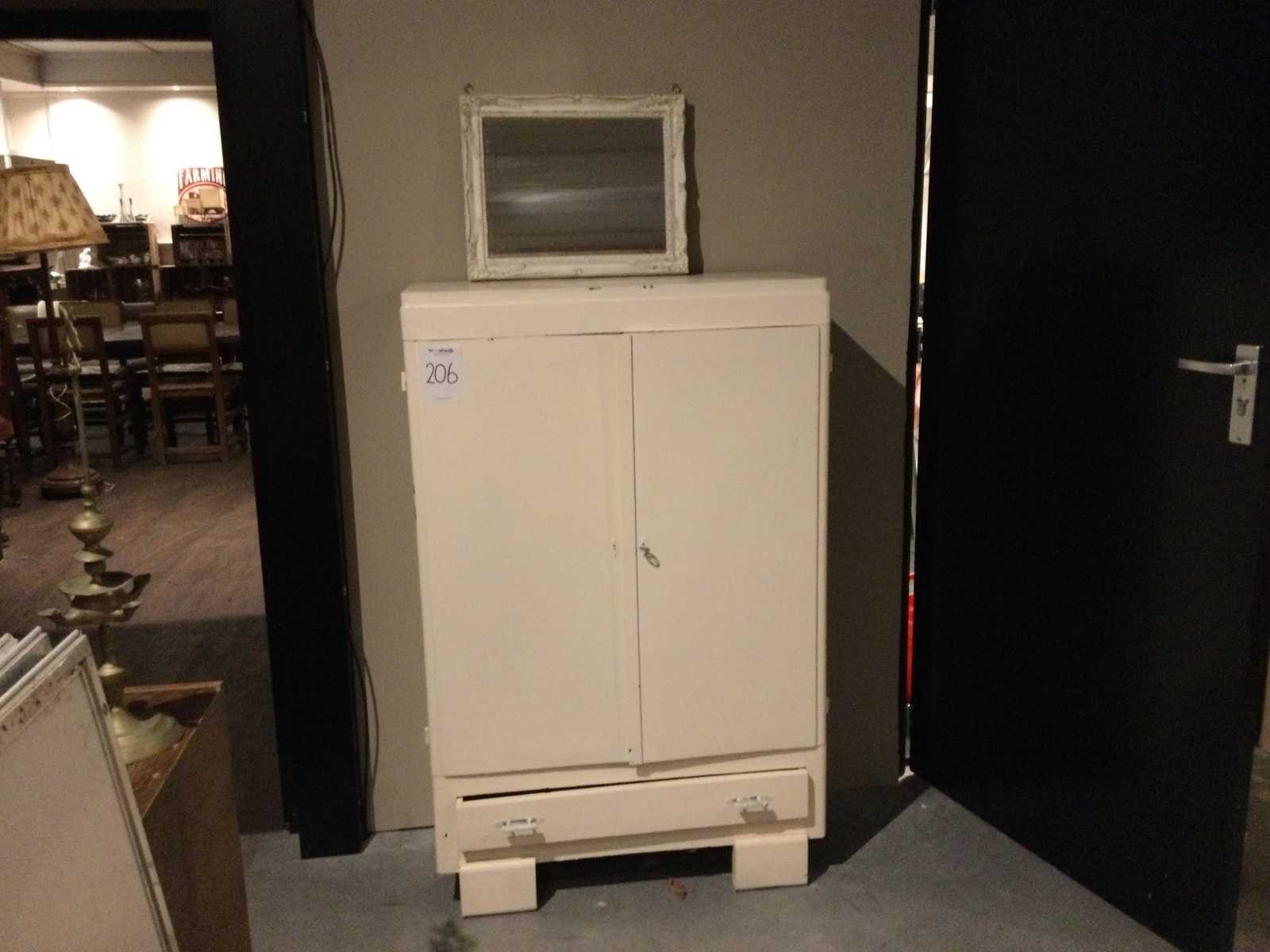2-Deursen, met lade, 1 brocant spiegeltje Lengte: 34cm Breedte: 81cm Hoogte: 126cm