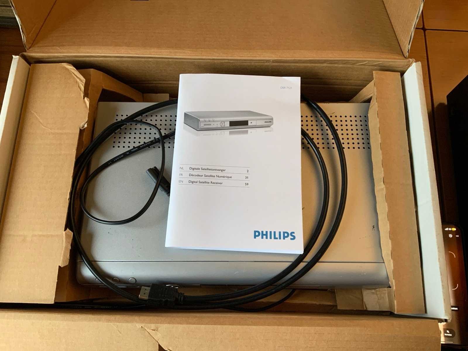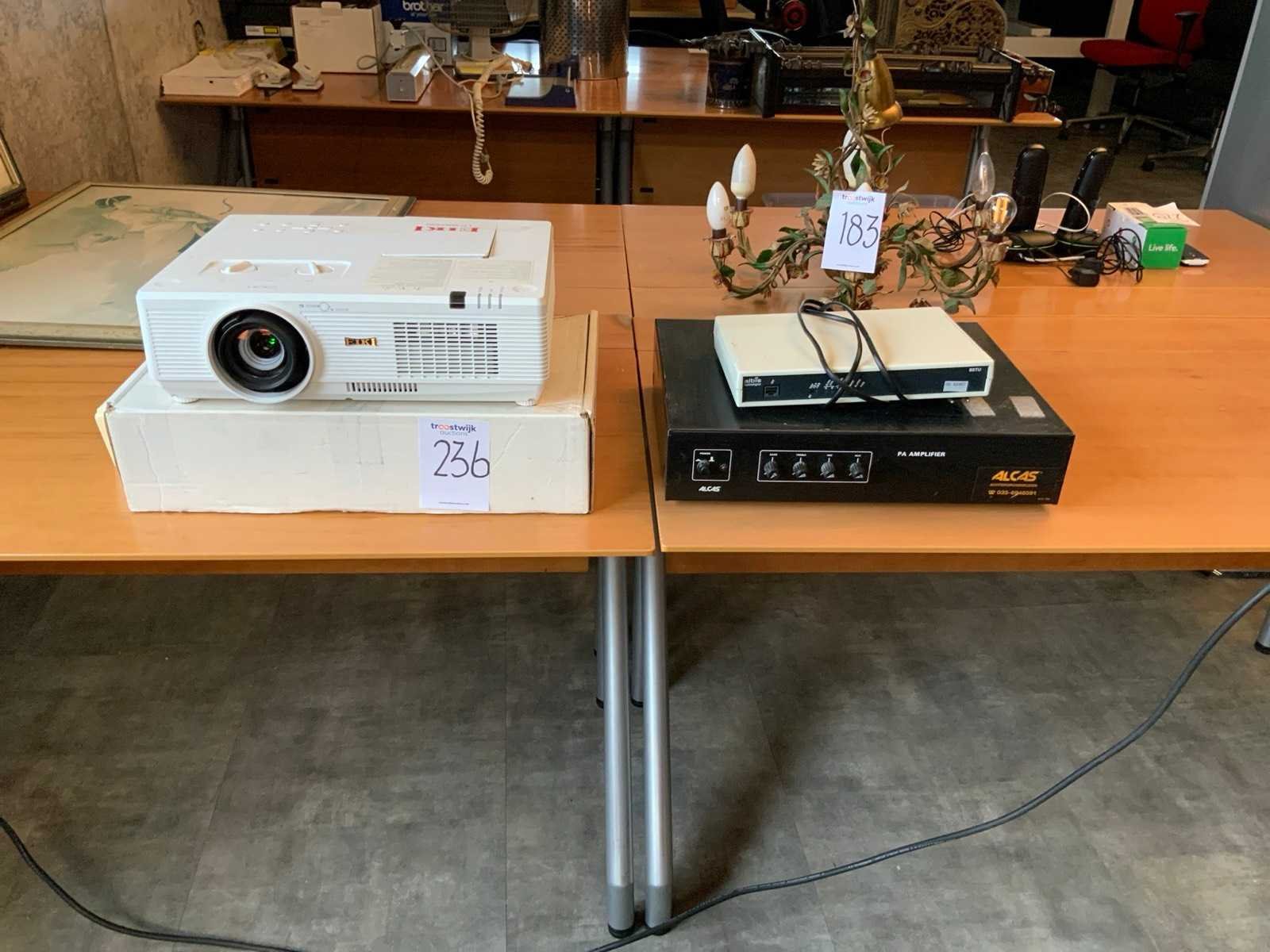 Bevat een Eiki beamer, Philips satellietontvanger, wifi router en versterker.