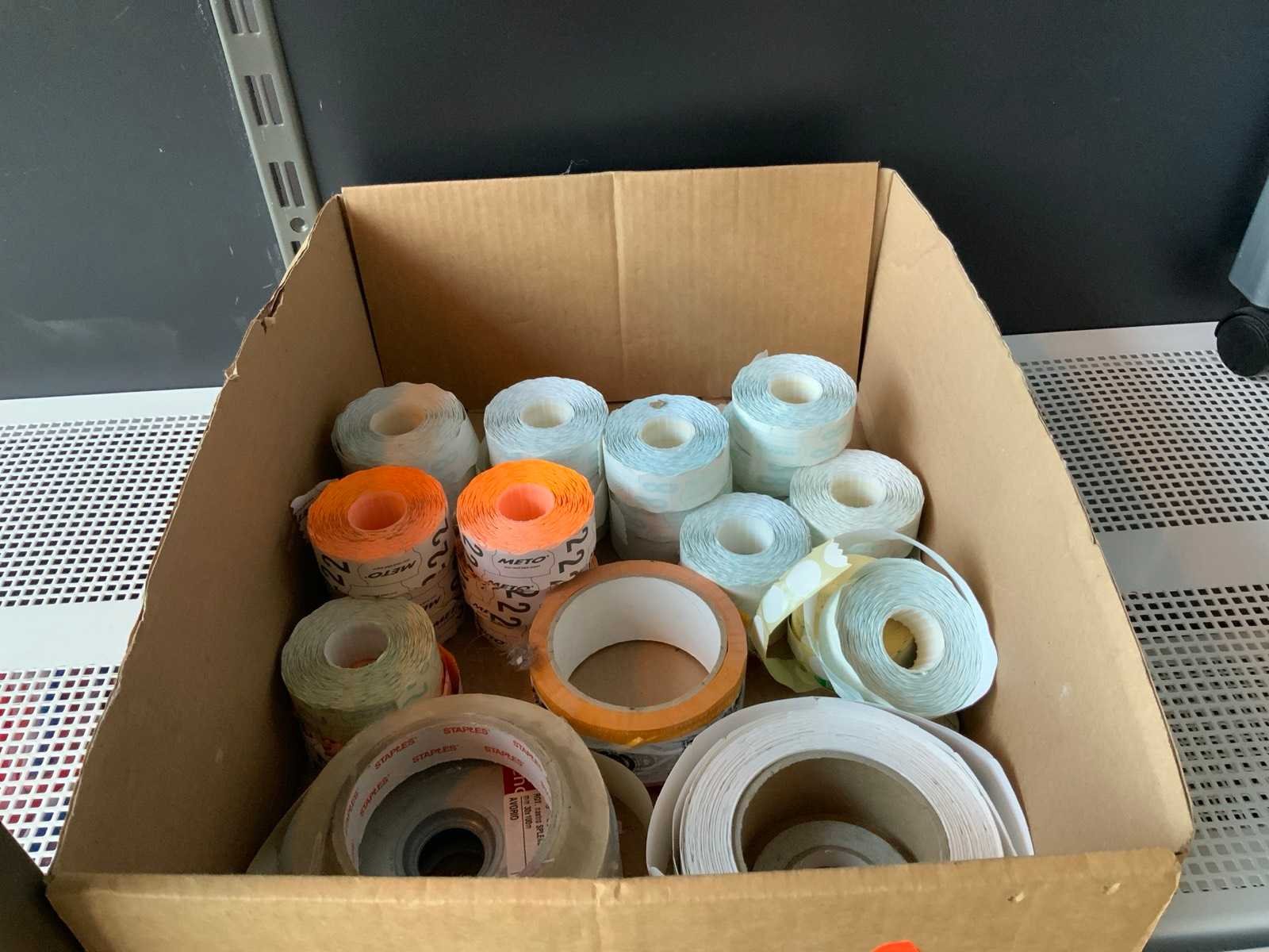 1e: Prijstangen (12x) 2e: Tape dispensers (x5) 3e: Prijspistool (x3) 4e: Stickers 5e: Prijsetiketten 6e: Ladekastje 7e: Displaybord (x2)