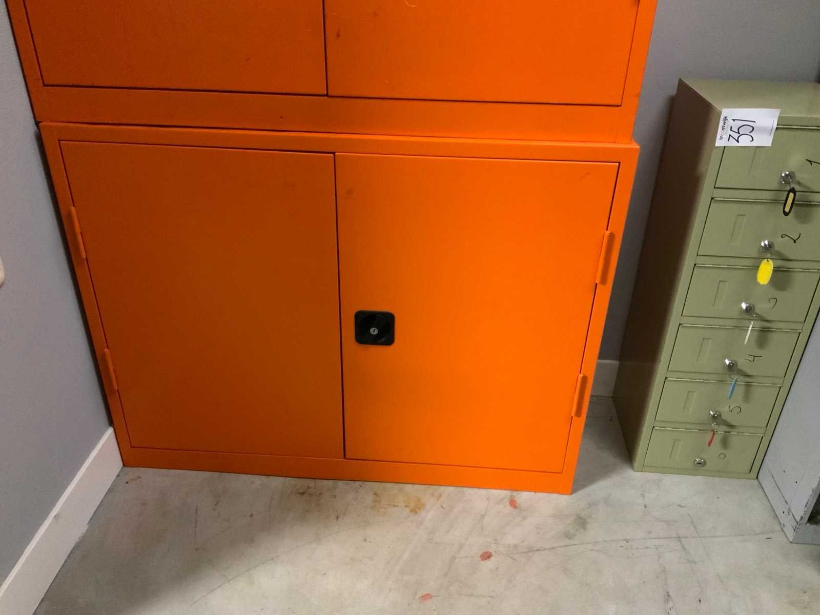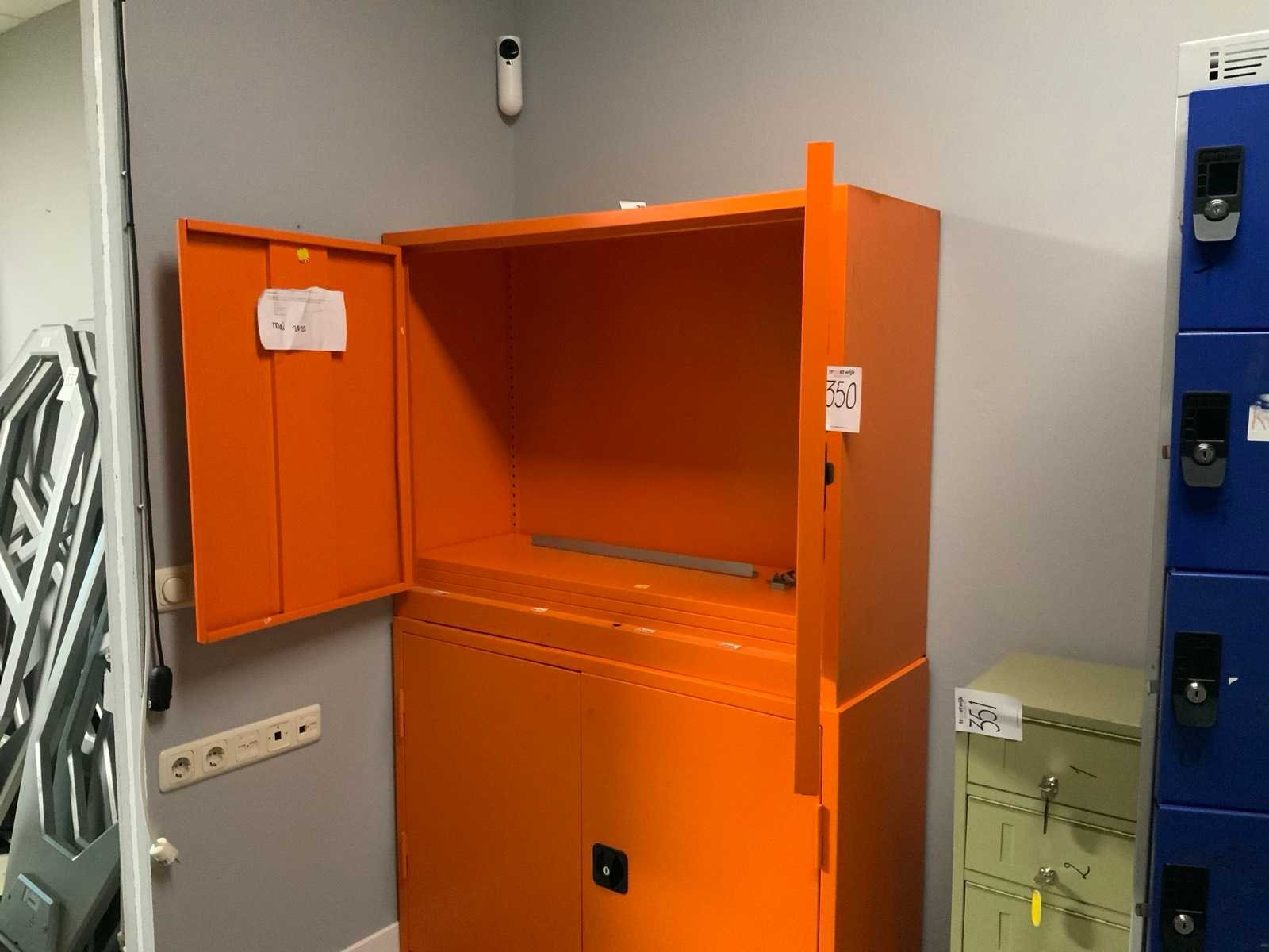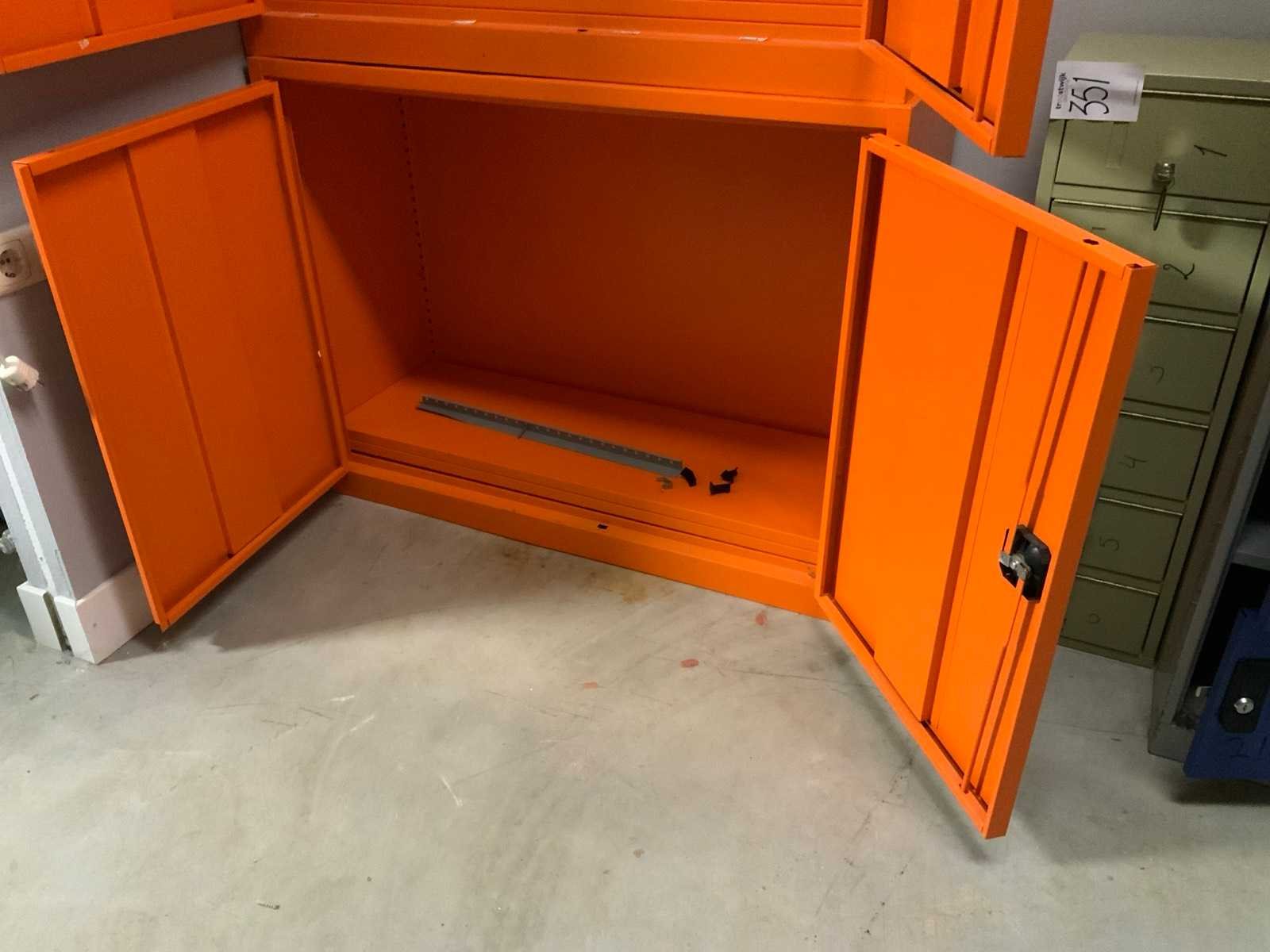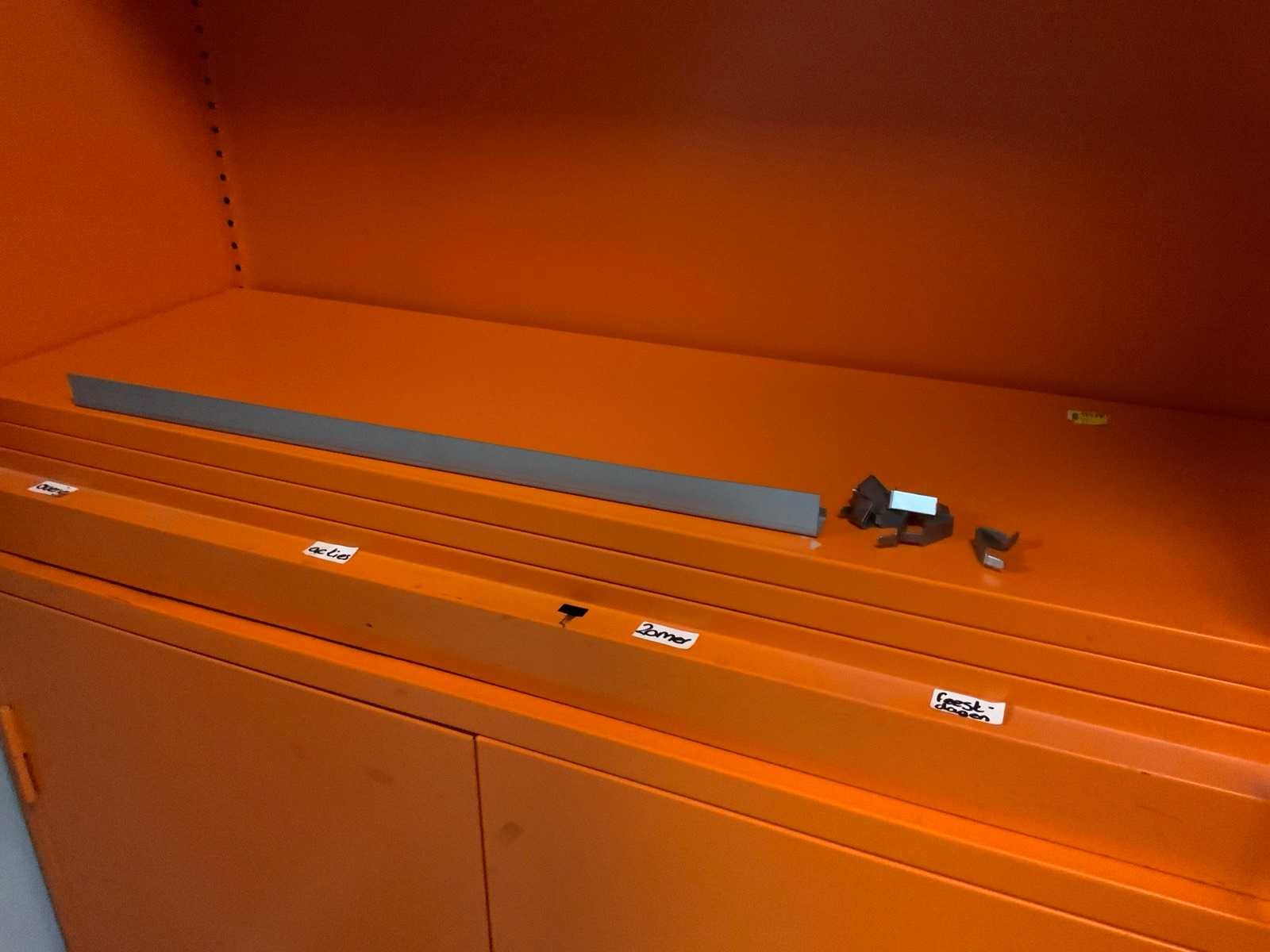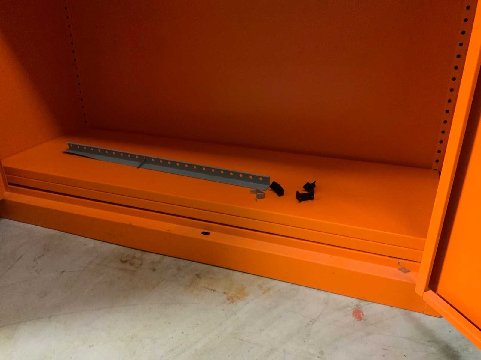 Inclusief 2 legborden, sleutels ontbreken. Kleur: Oranje Lengte: 40cm Breedte: 110cm Hoogte: 85cm